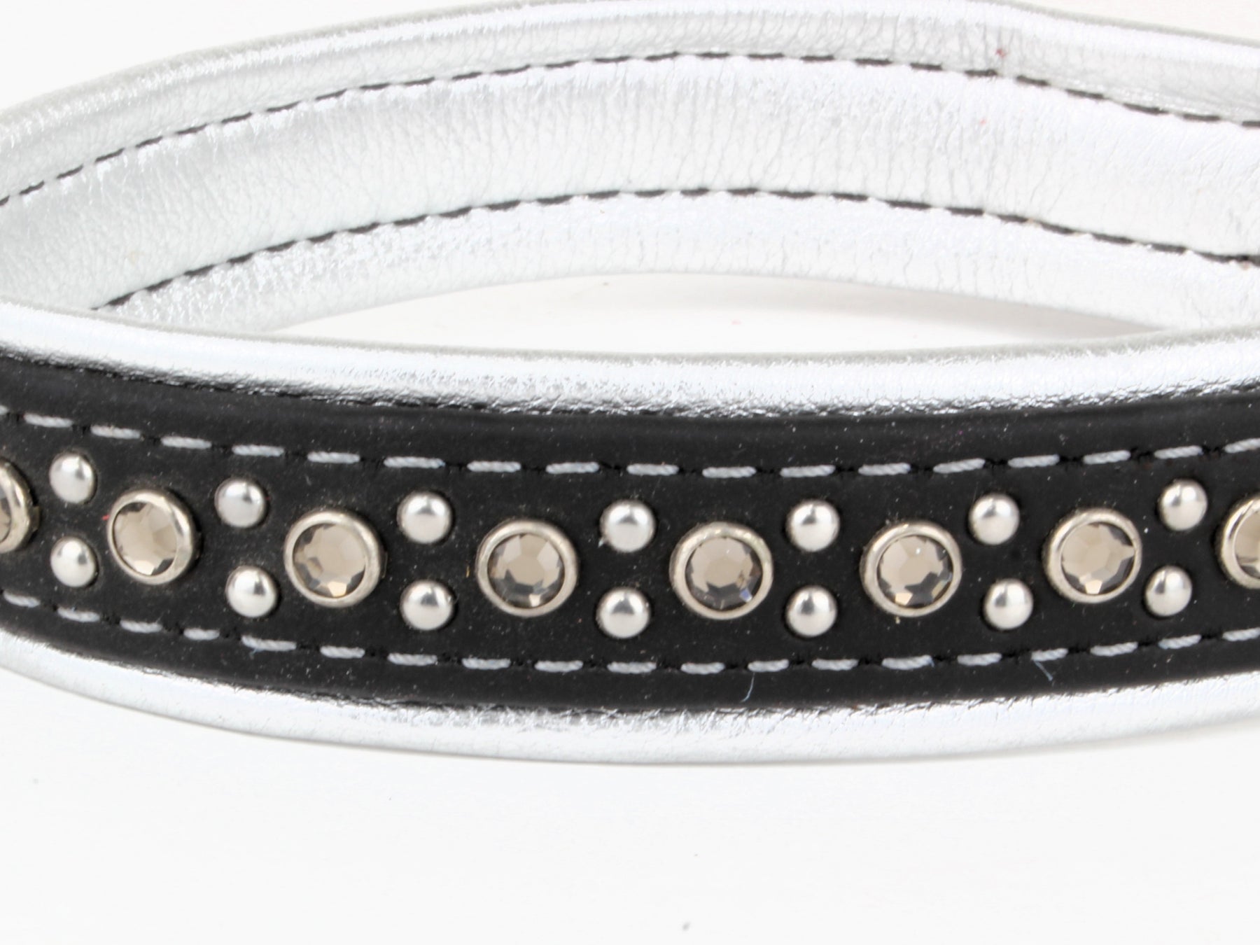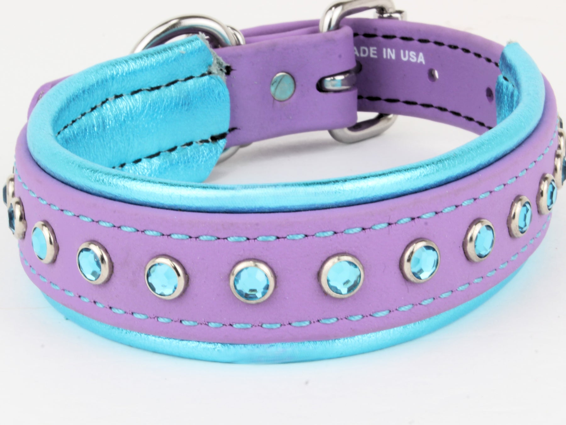 Our BioThane w/Leather Bling Collars are made from the same original BioThane as our other products, with a little sparkle!  They are easy to clean, durable and waterproof.  We use BioThane Beta 520 Super Heavy material with a soft leather backing.
