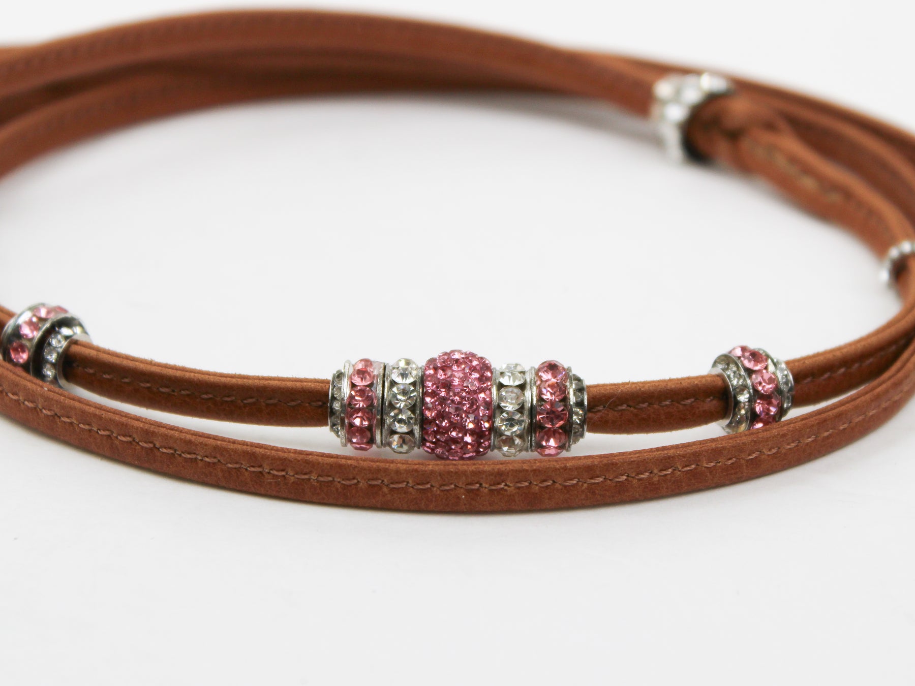 3' Deerskin Loop Show Leads with Crystals are handcrafted with durable, buttery soft deerskin leather that won't irritate even the most sensitive neck. They are made with a nylon core for added strength. Crystals add that extra "flash" in the show ring.
