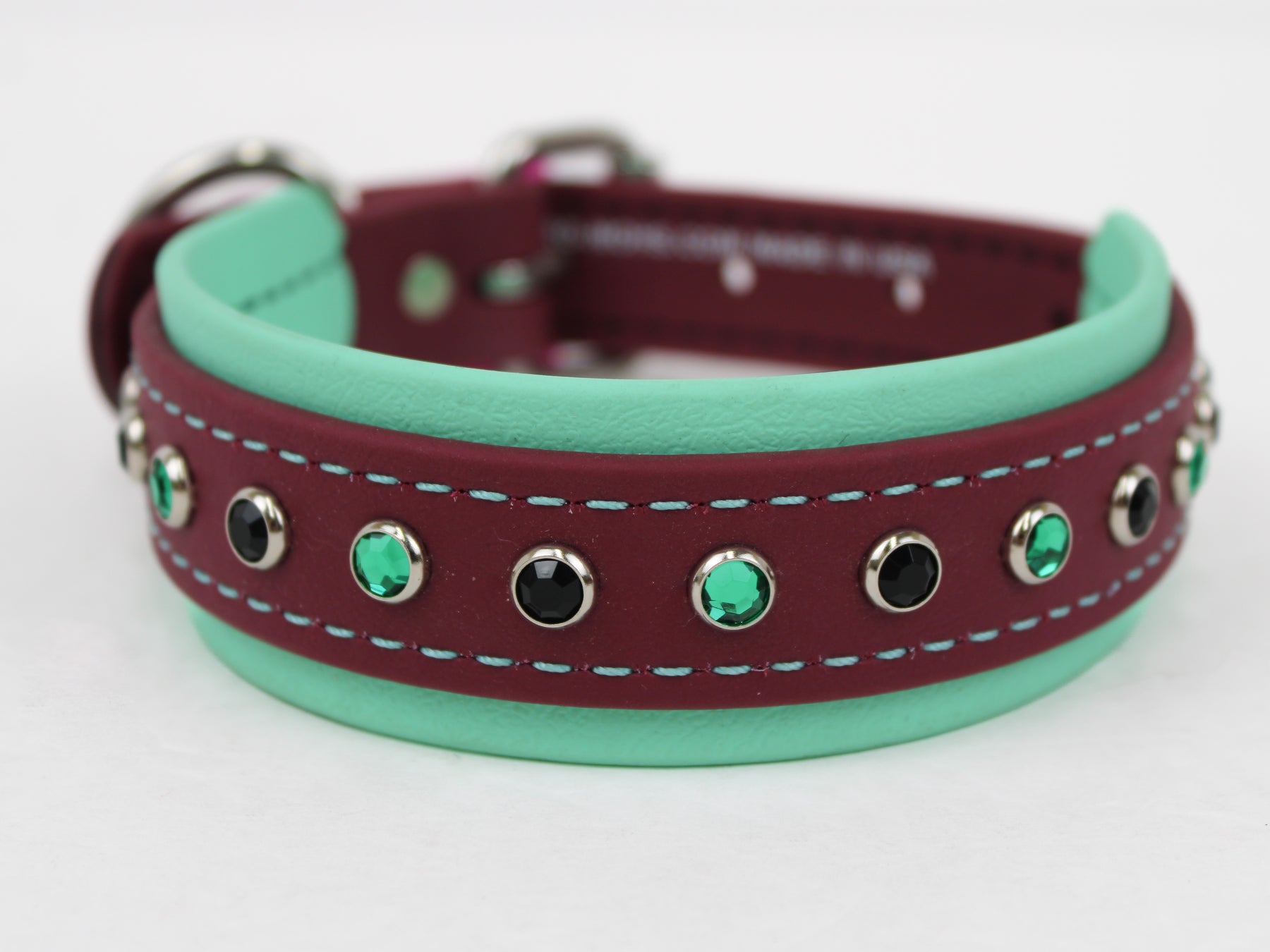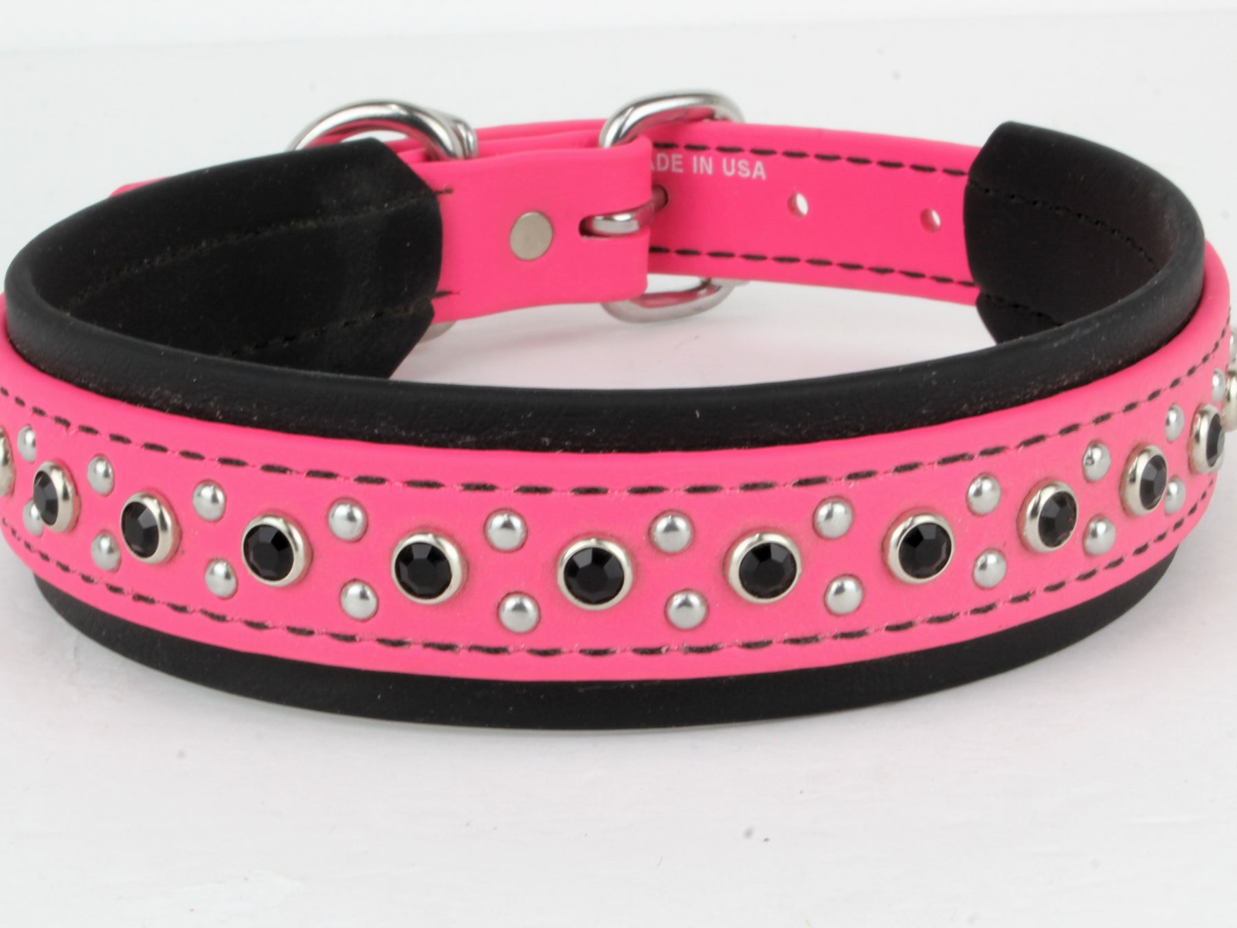 Our BioThane Bling Collars are made from the same original BioThane as our other products, with a little sparkle!  They are easy to clean, durable and waterproof.  We use BioThane Beta 520 Super Heavy material.