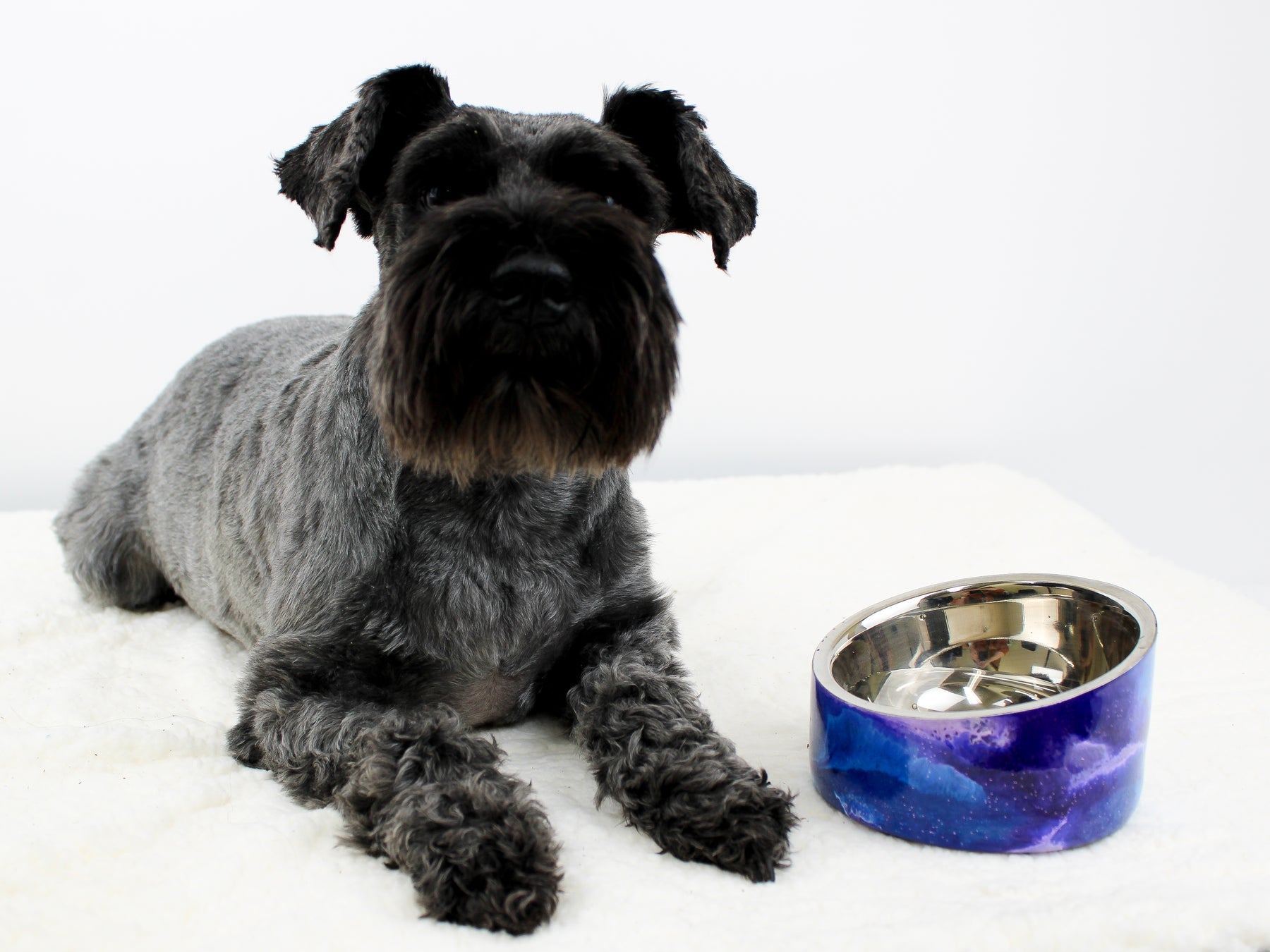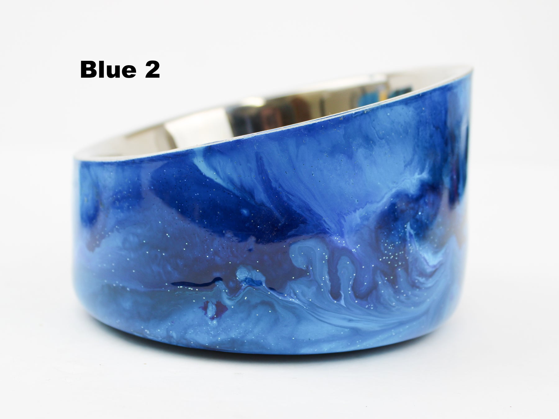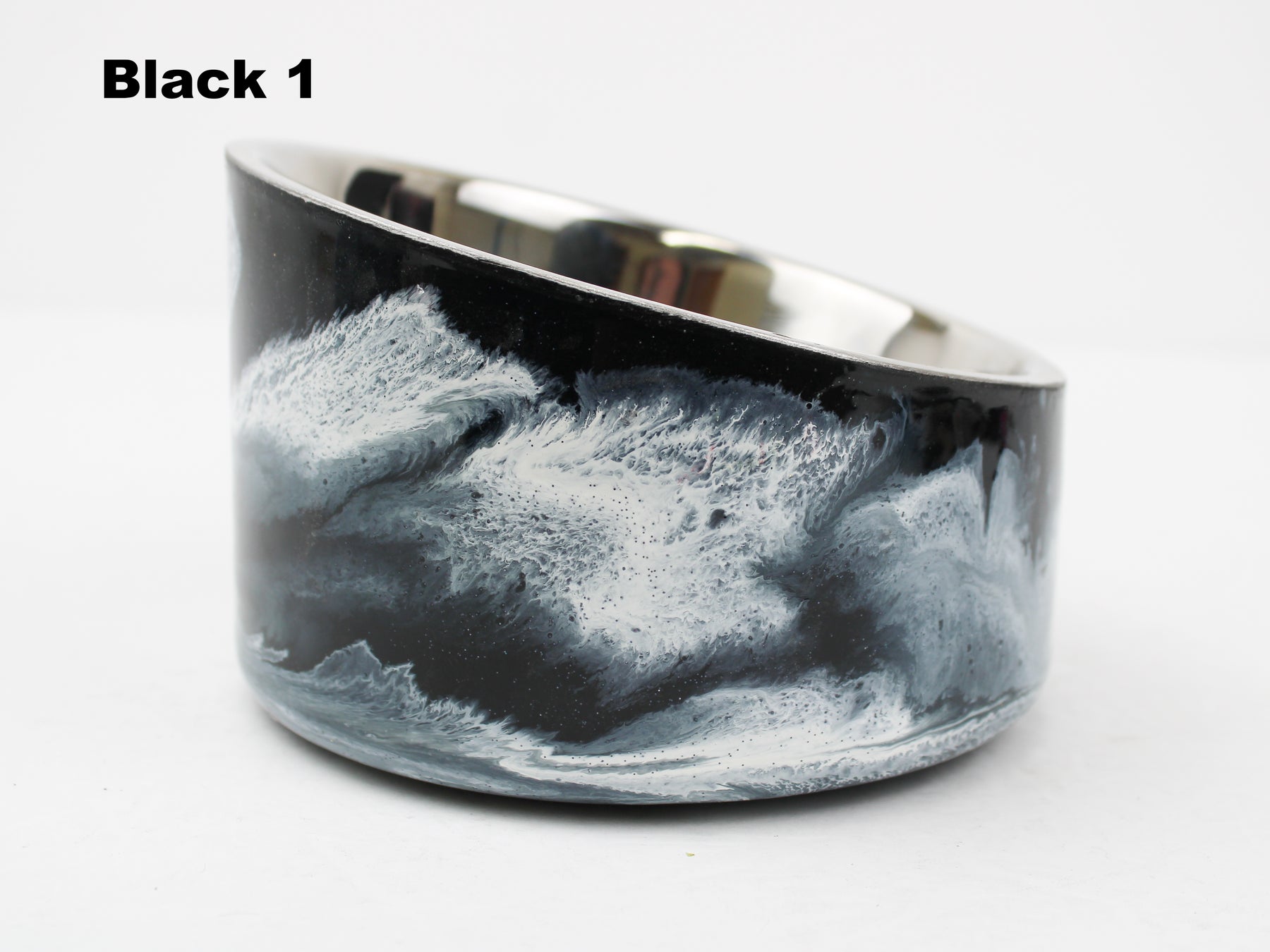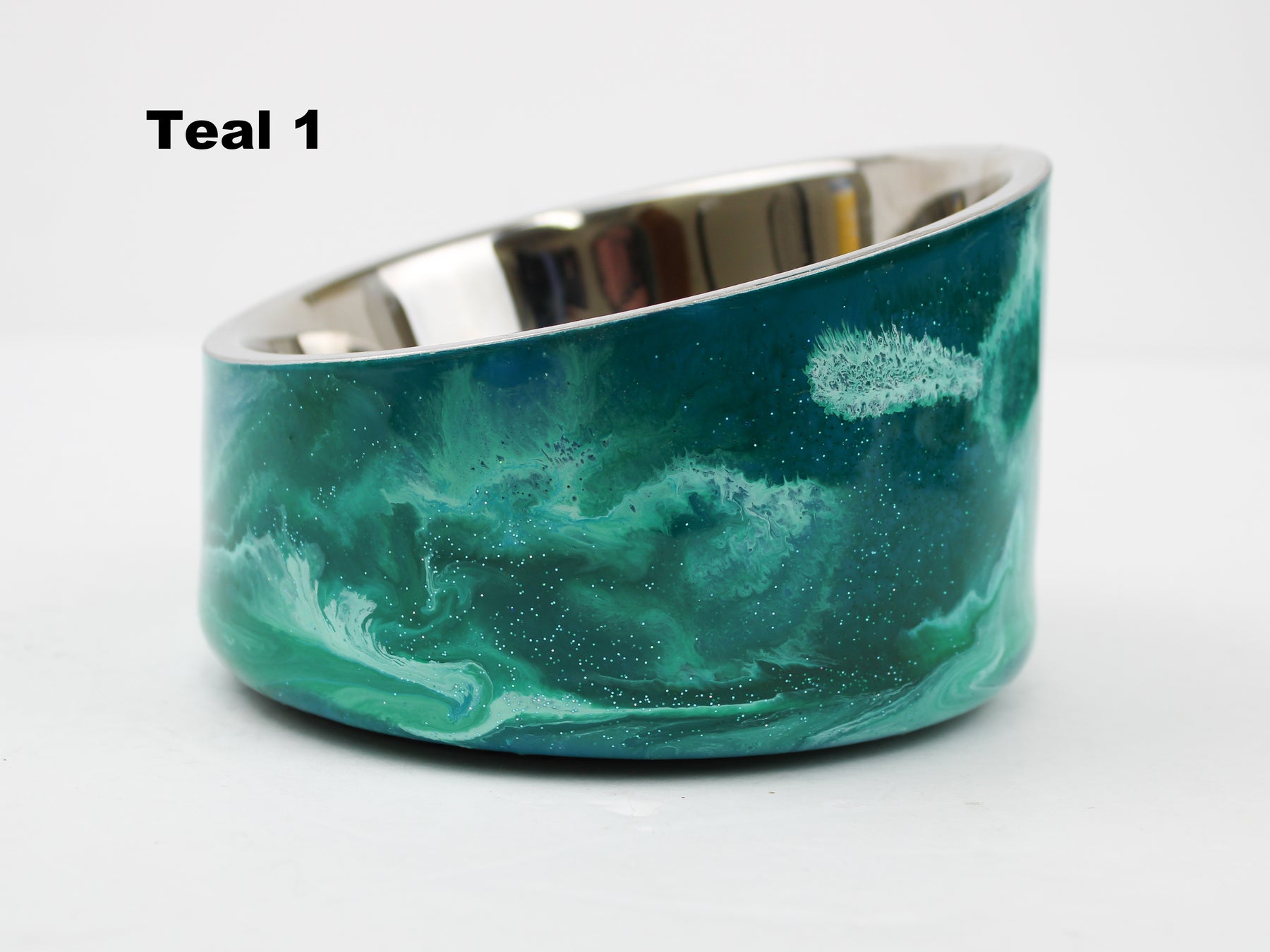 Designer Food Bowls are handmade and truly one of a kind design, crafted with a durable epoxy finish on a stainless-steel bowl that’s built to last. Created in Wisconsin by a retired veterinary technician, every item reflects skill, attention to detail, and a commitment to quality. To preserve its shine and longevity, each piece should be hand washed only.