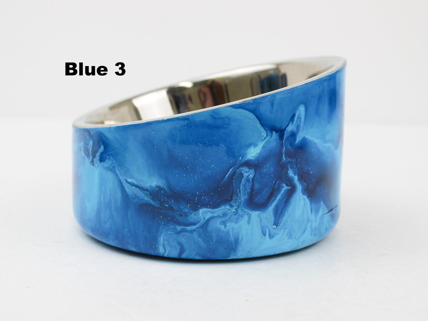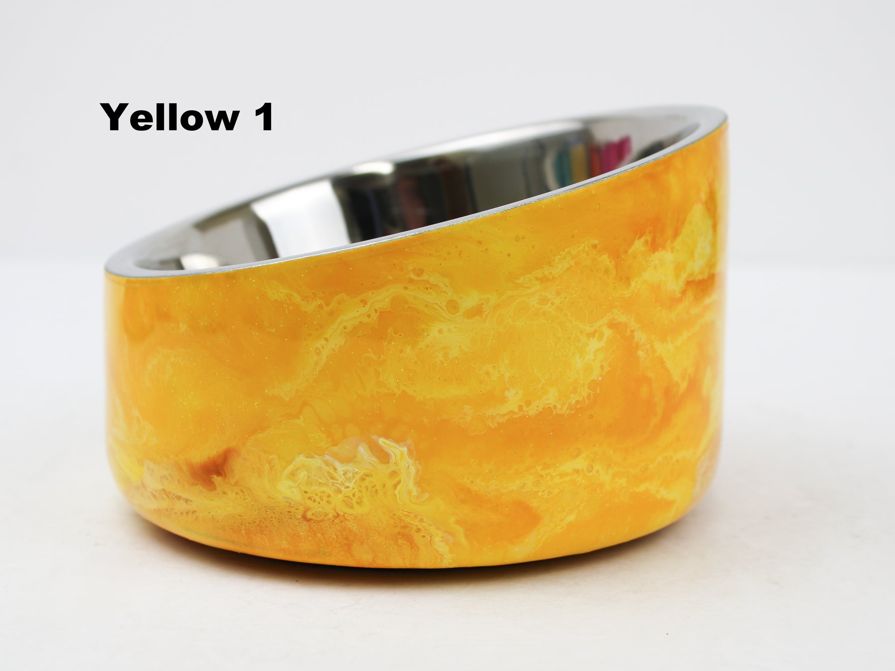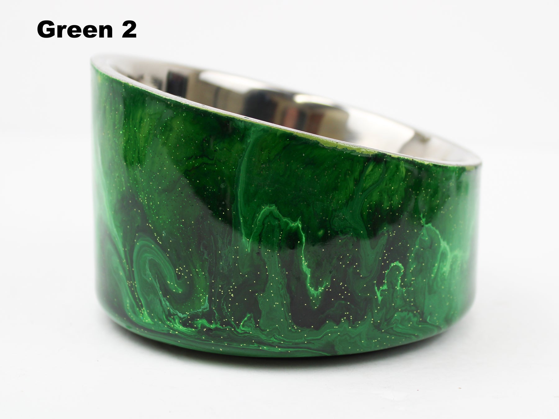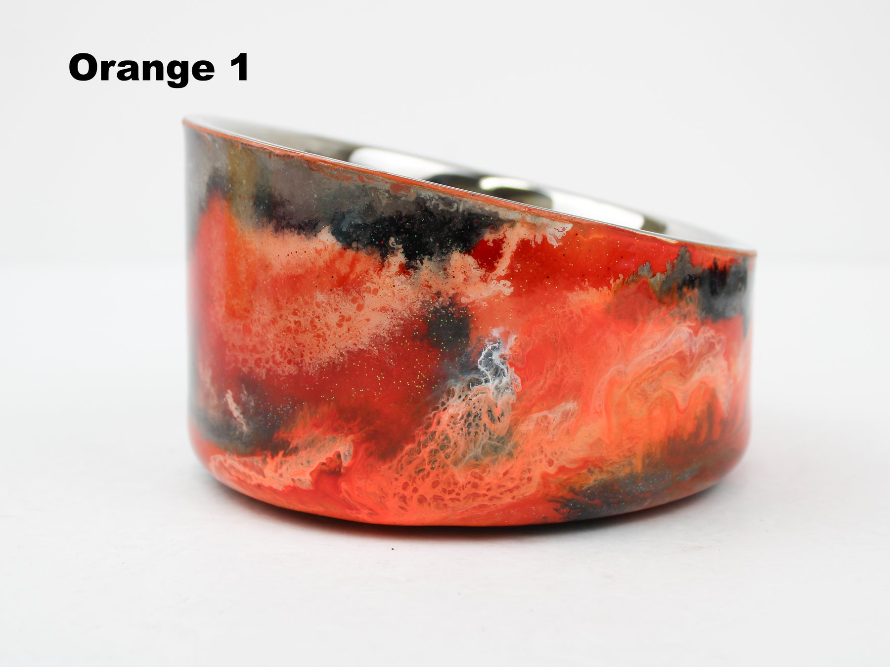 Designer Food Bowls are handmade and truly one of a kind design, crafted with a durable epoxy finish on a stainless-steel bowl that’s built to last. Created in Wisconsin by a retired veterinary technician, every item reflects skill, attention to detail, and a commitment to quality. To preserve its shine and longevity, each piece should be hand washed only.