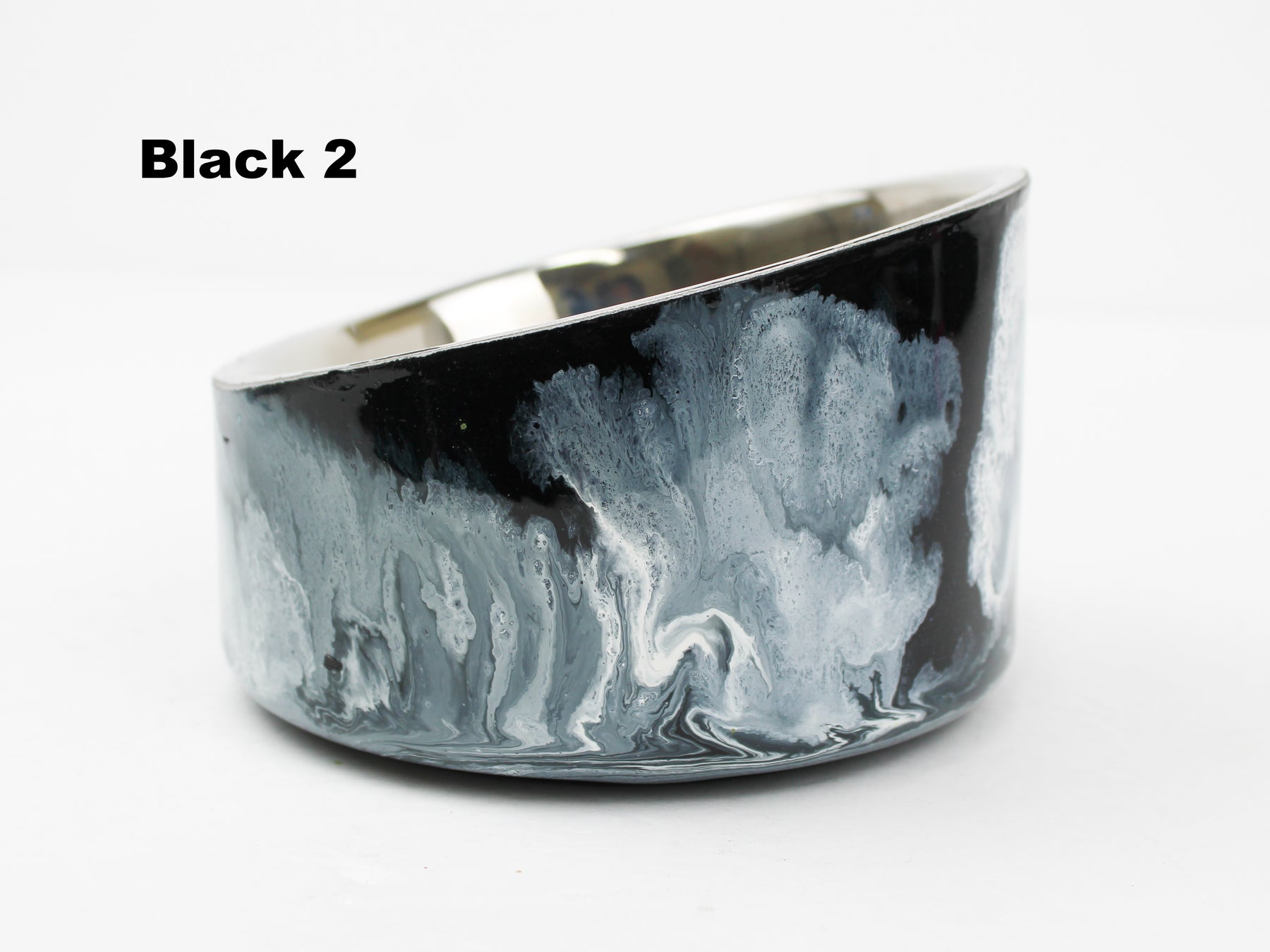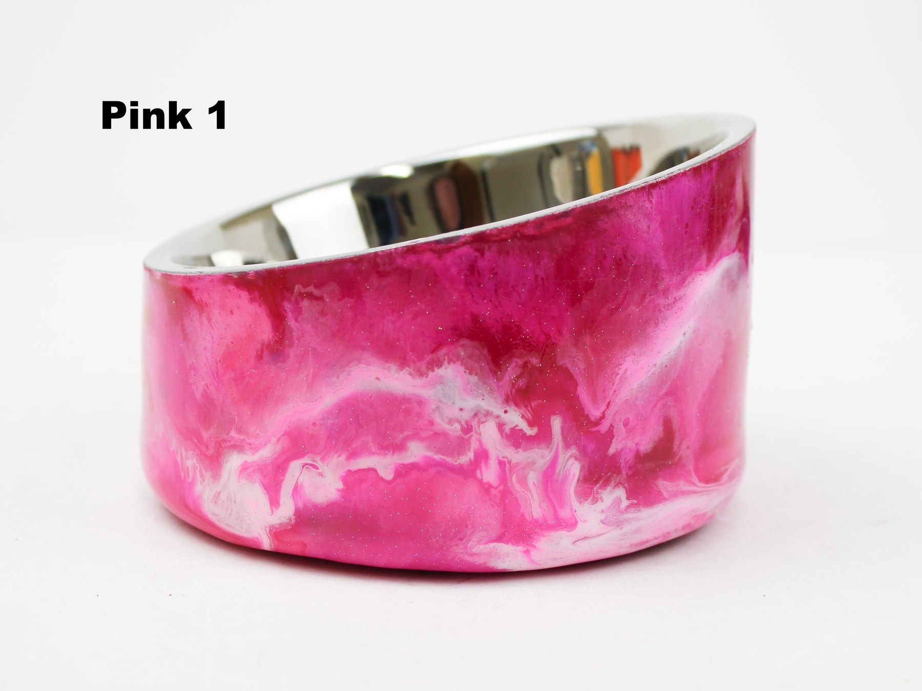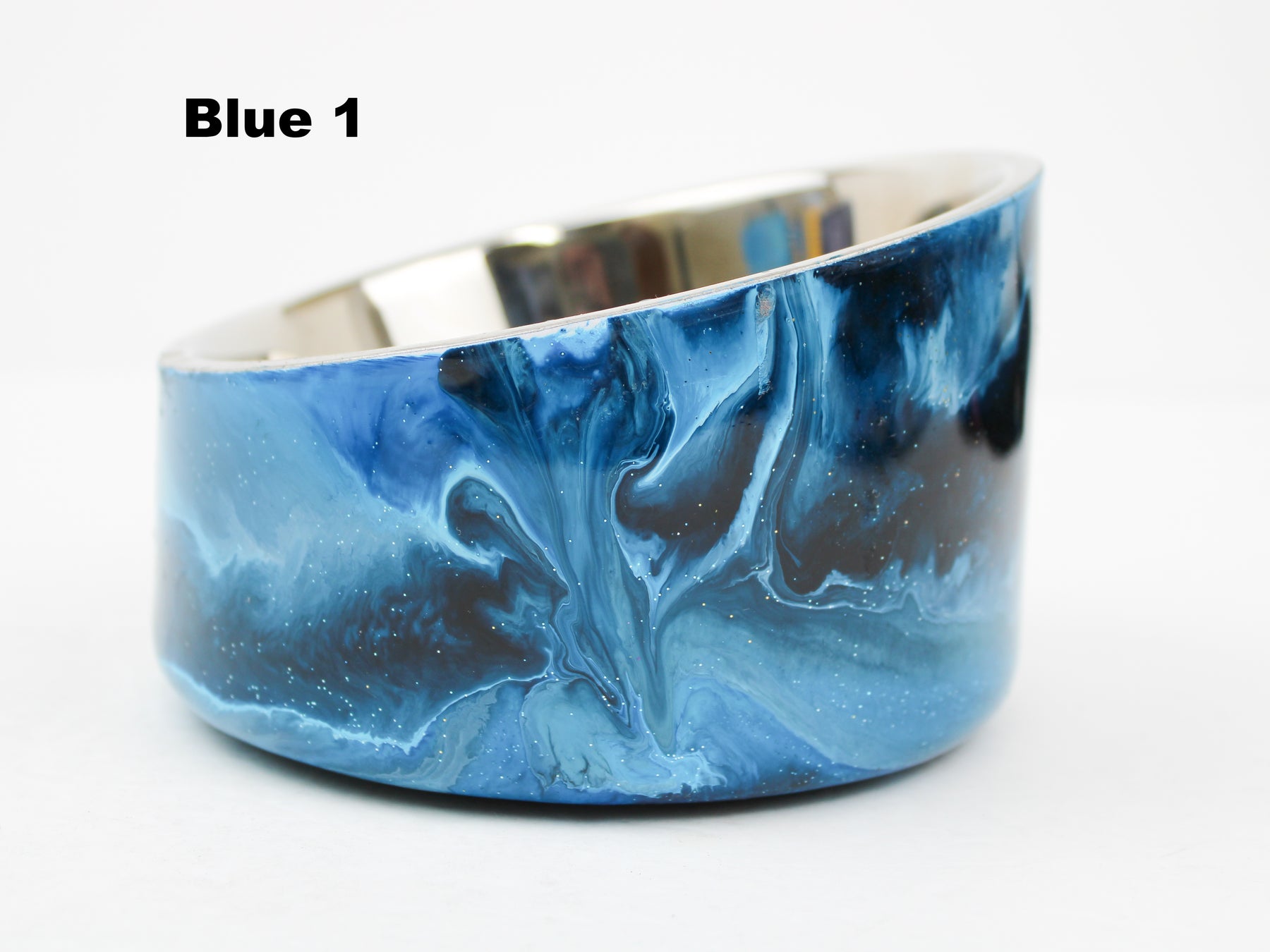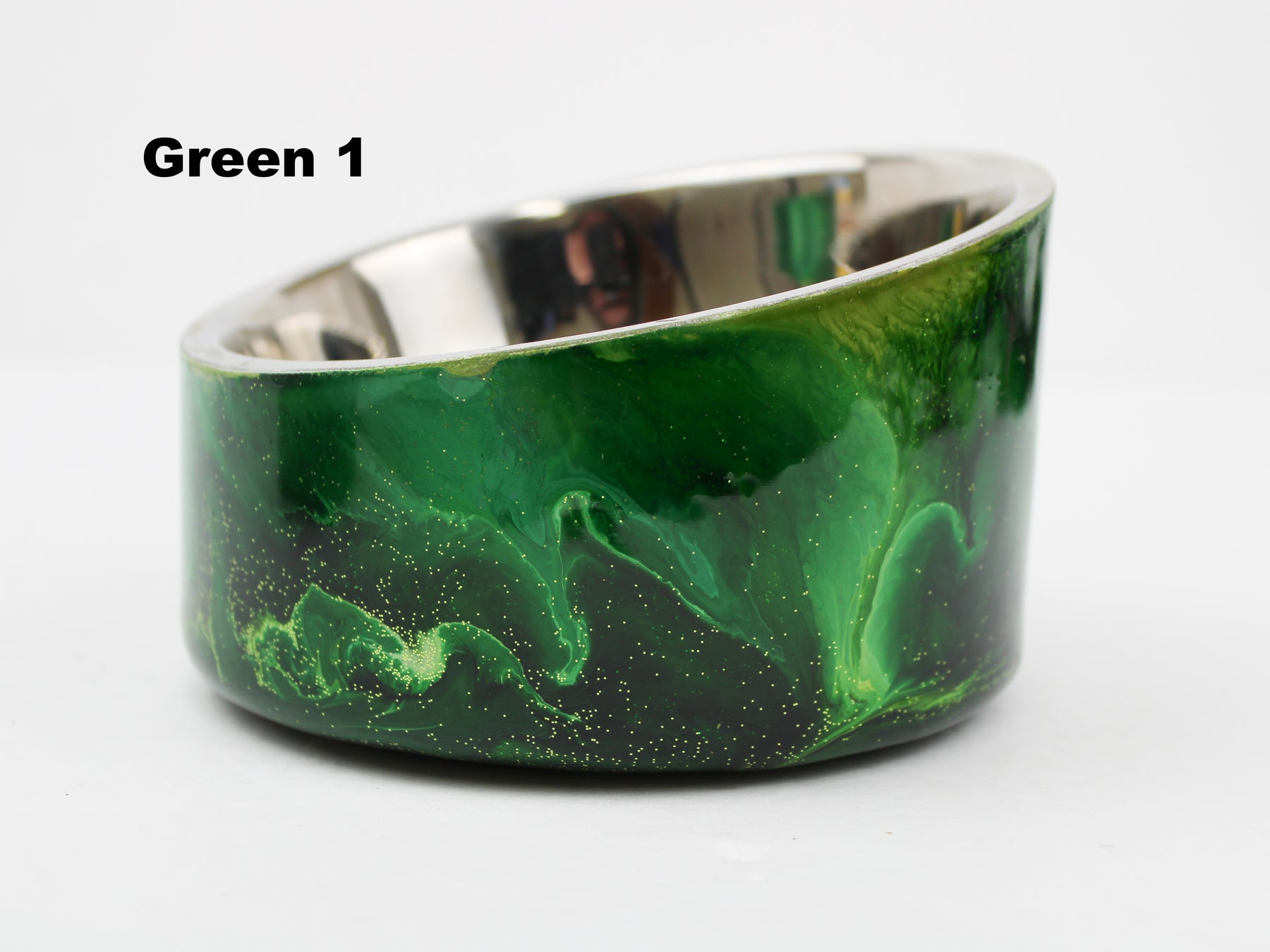 Designer Food Bowls are handmade and truly one of a kind design, crafted with a durable epoxy finish on a stainless-steel bowl that’s built to last. Created in Wisconsin by a retired veterinary technician, every item reflects skill, attention to detail, and a commitment to quality. To preserve its shine and longevity, each piece should be hand washed only.