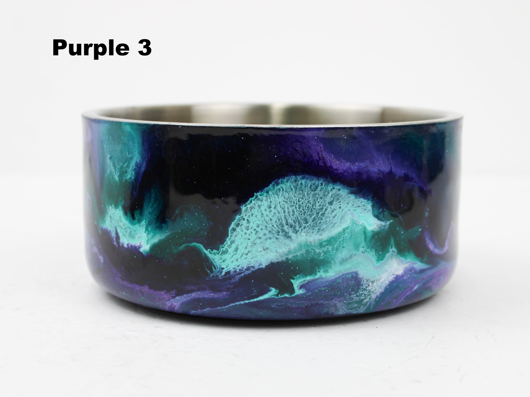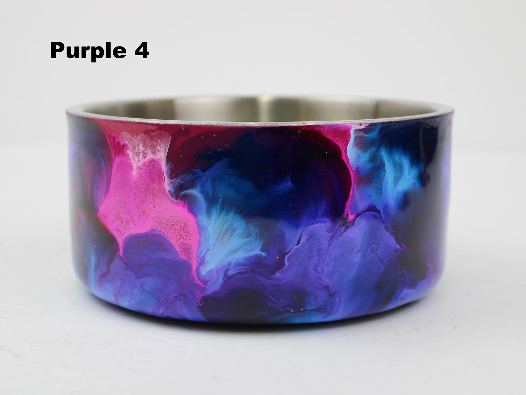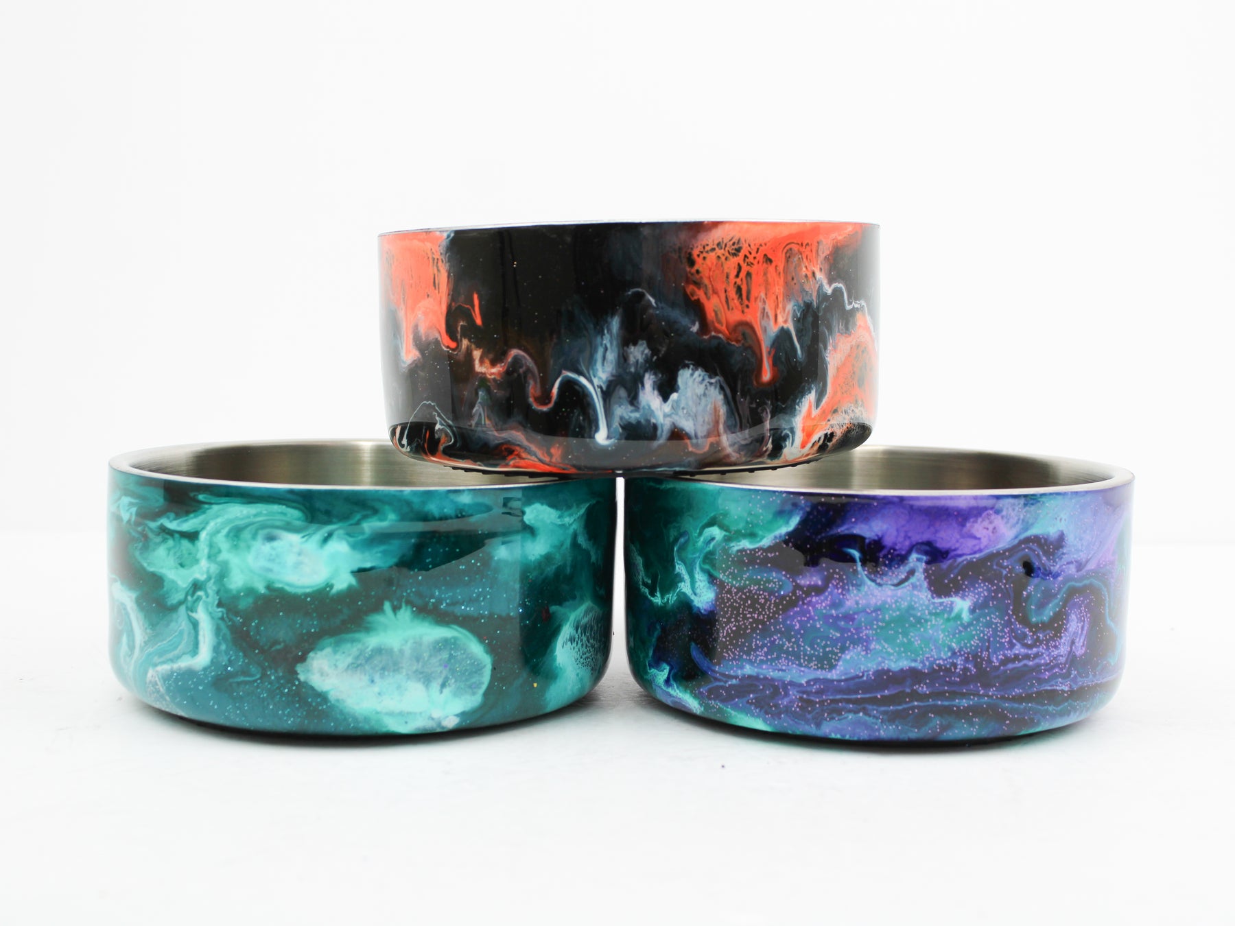 Designer Food Bowls are handmade and truly one of a kind design, Stainless-steel bowl crafted with a durable epoxy finish that’s built to last. Created in Wisconsin by a retired veterinary technician, every item reflects skill, attention to detail, and a commitment to quality. To preserve its shine and longevity, each piece should be hand washed only. These bowls feature a rubber grip on the bottom to prevent them from moving around on hard floors.