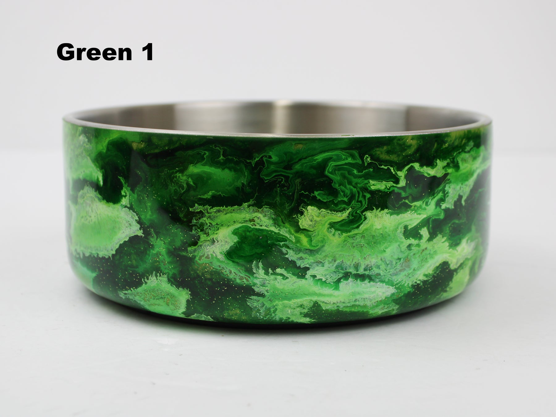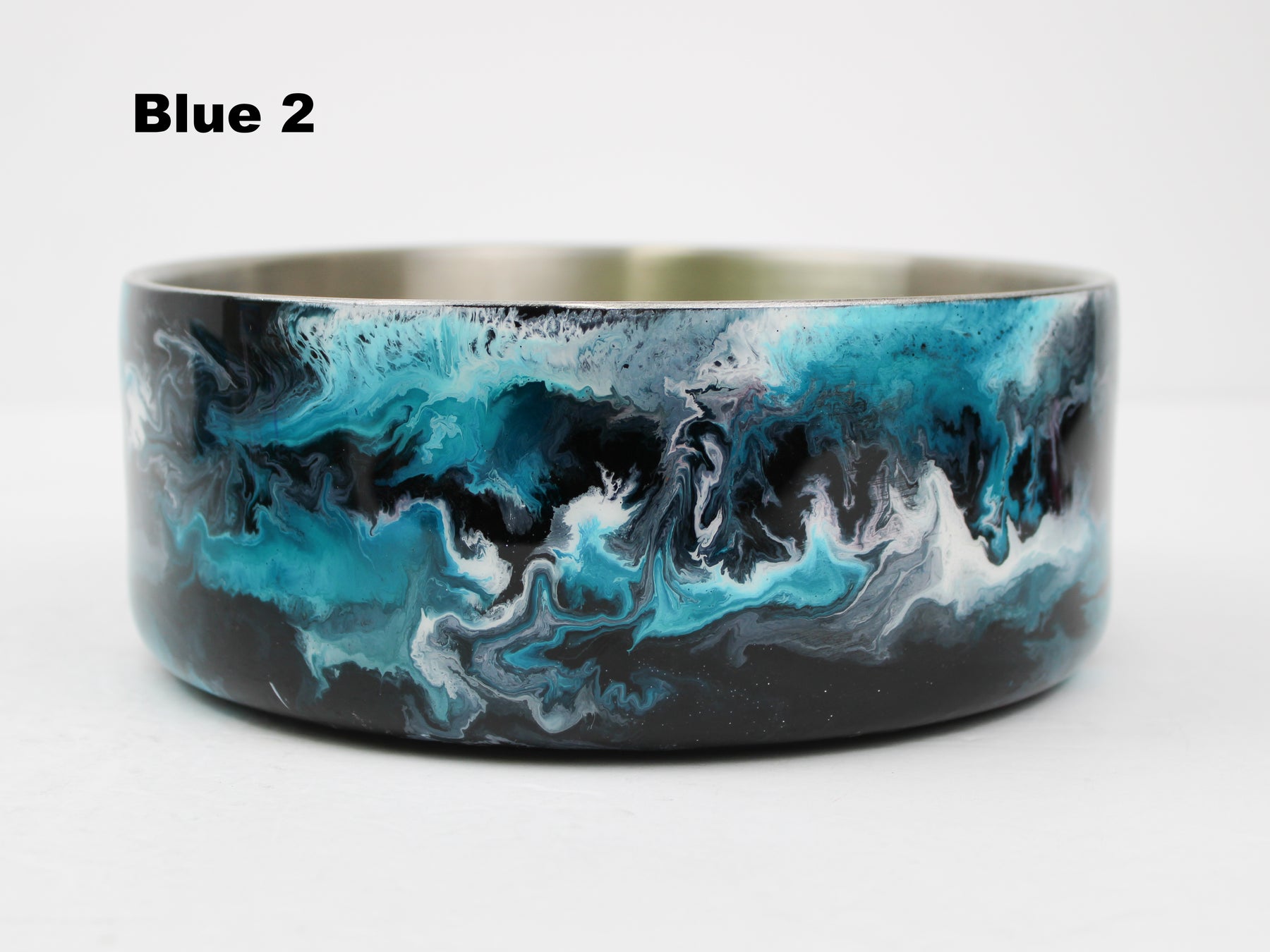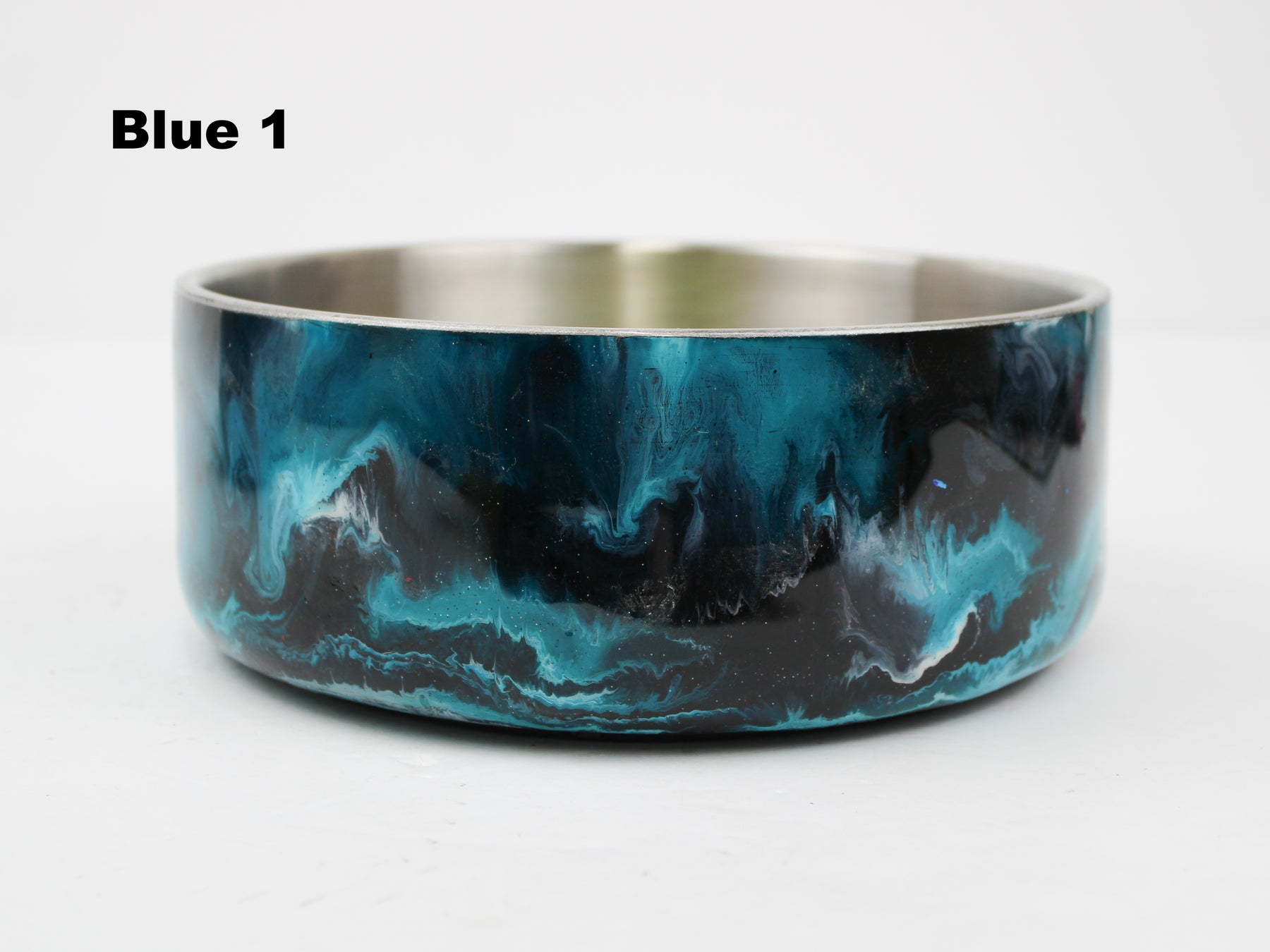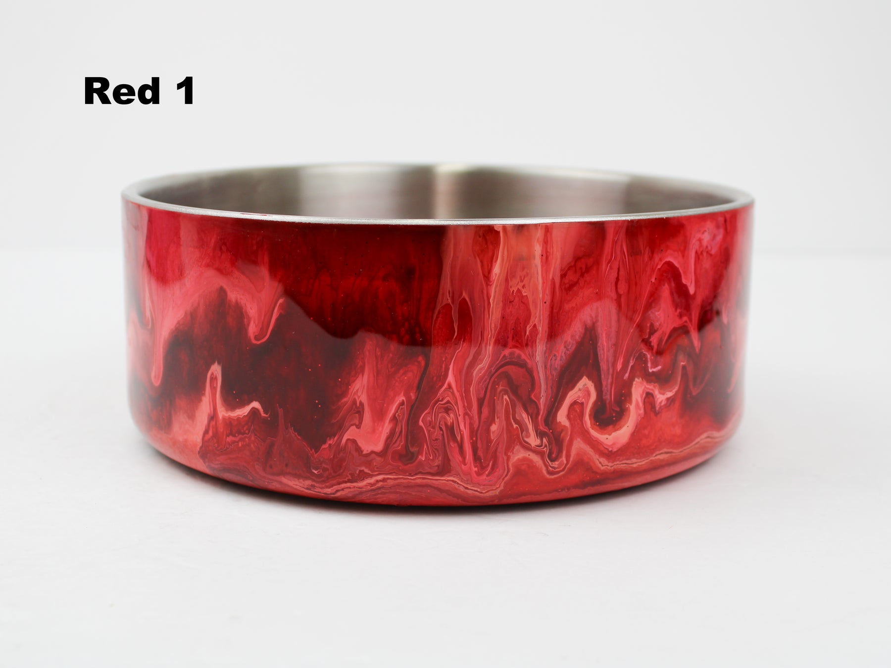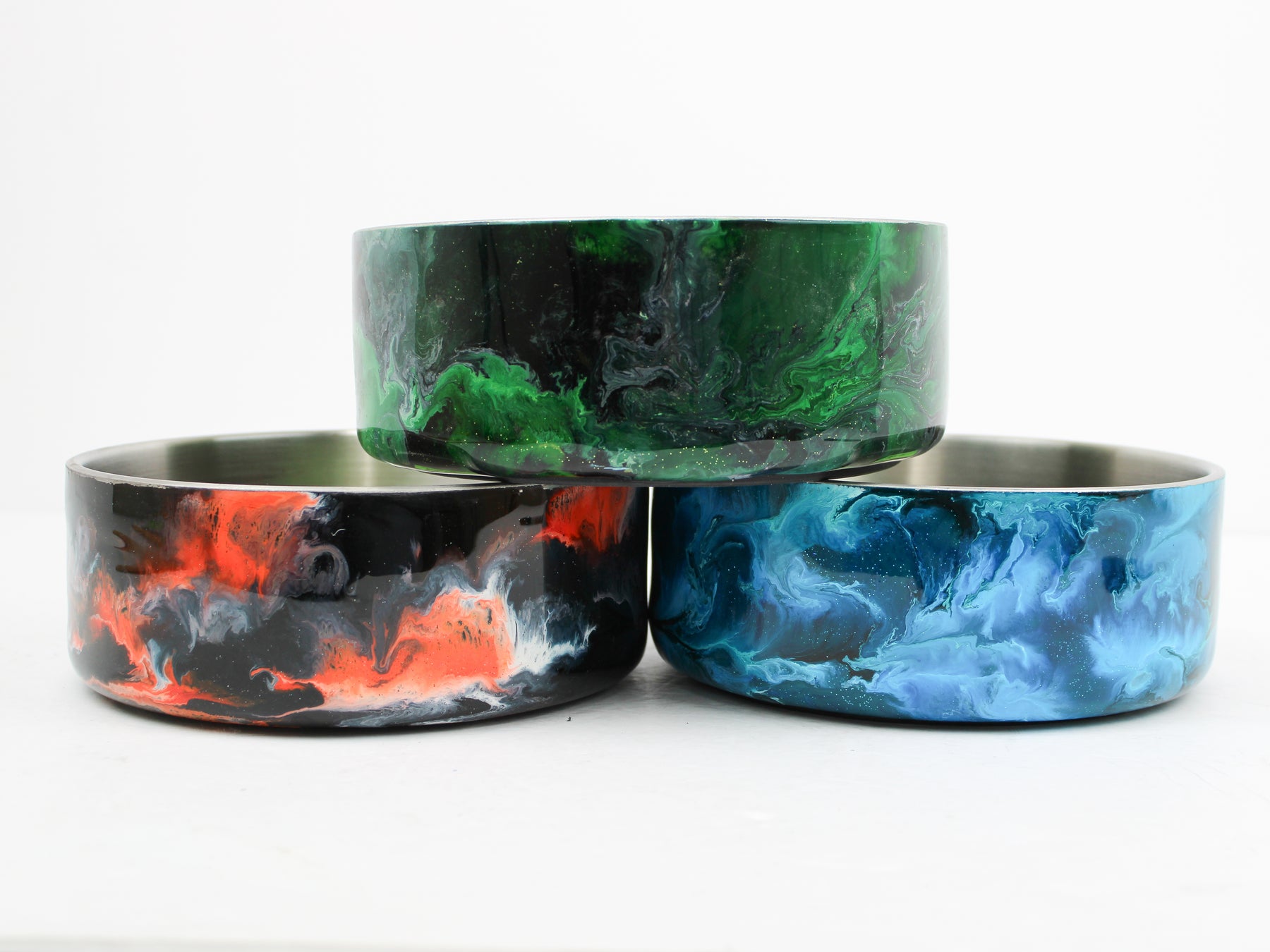 Designer Food Bowls are handmade and truly one of a kind design, Stainless-steel bowl crafted with a durable epoxy finish that’s built to last. Created in Wisconsin by a retired veterinary technician, every item reflects skill, attention to detail, and a commitment to quality. To preserve its shine and longevity, each piece should be hand washed only. These bowls feature a rubber grip on the bottom to prevent them from moving around on hard floors.