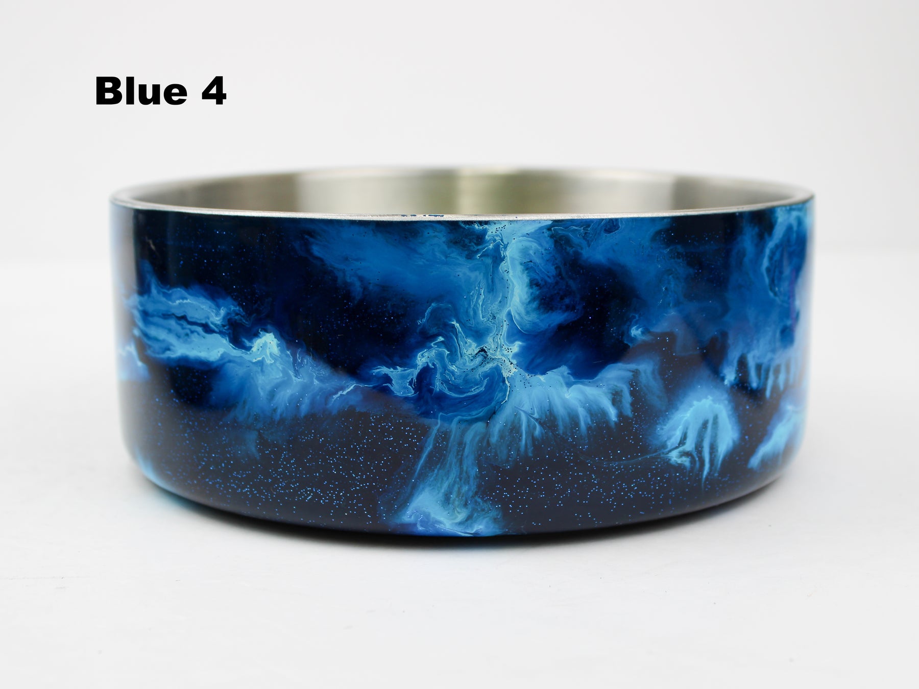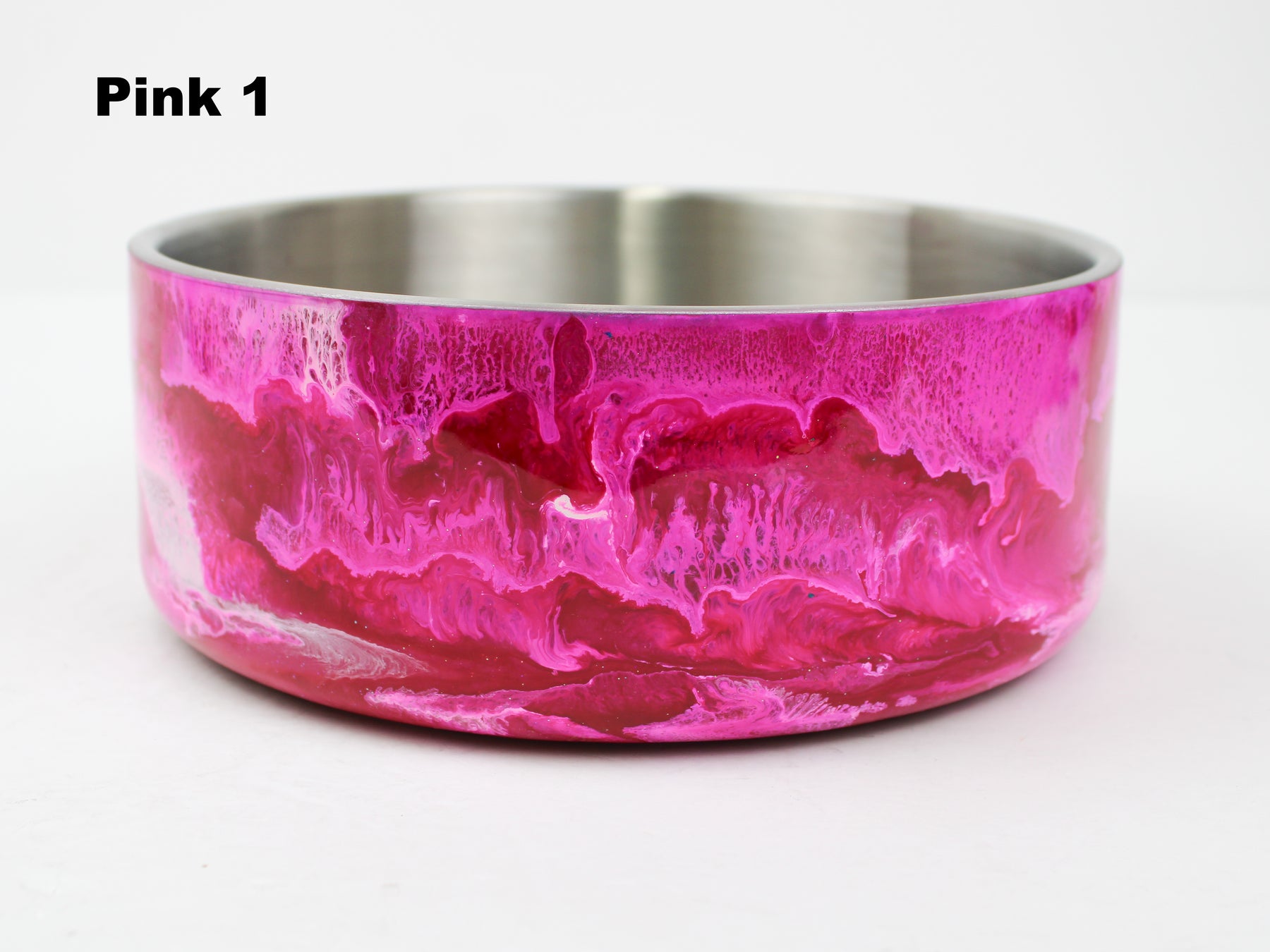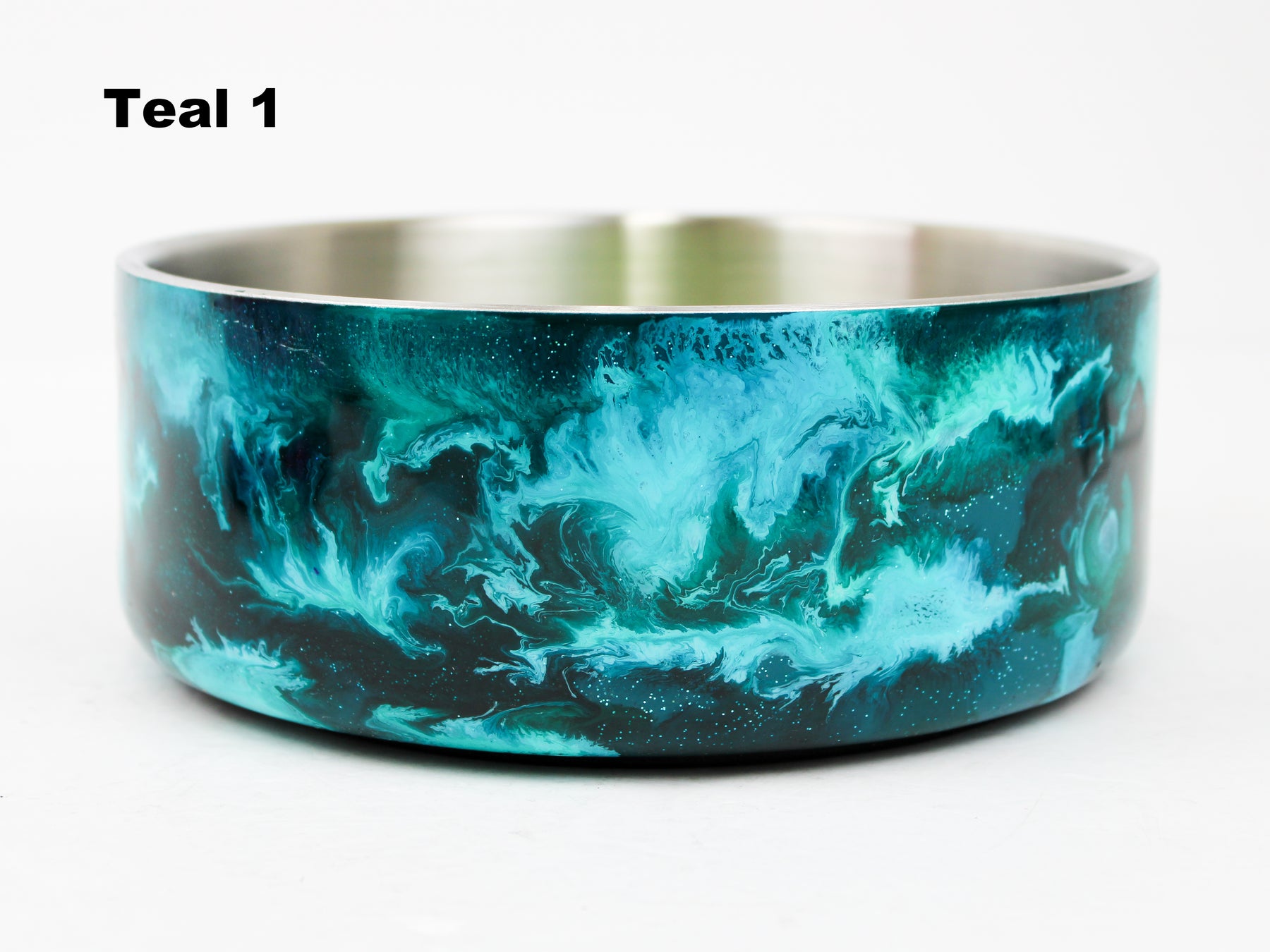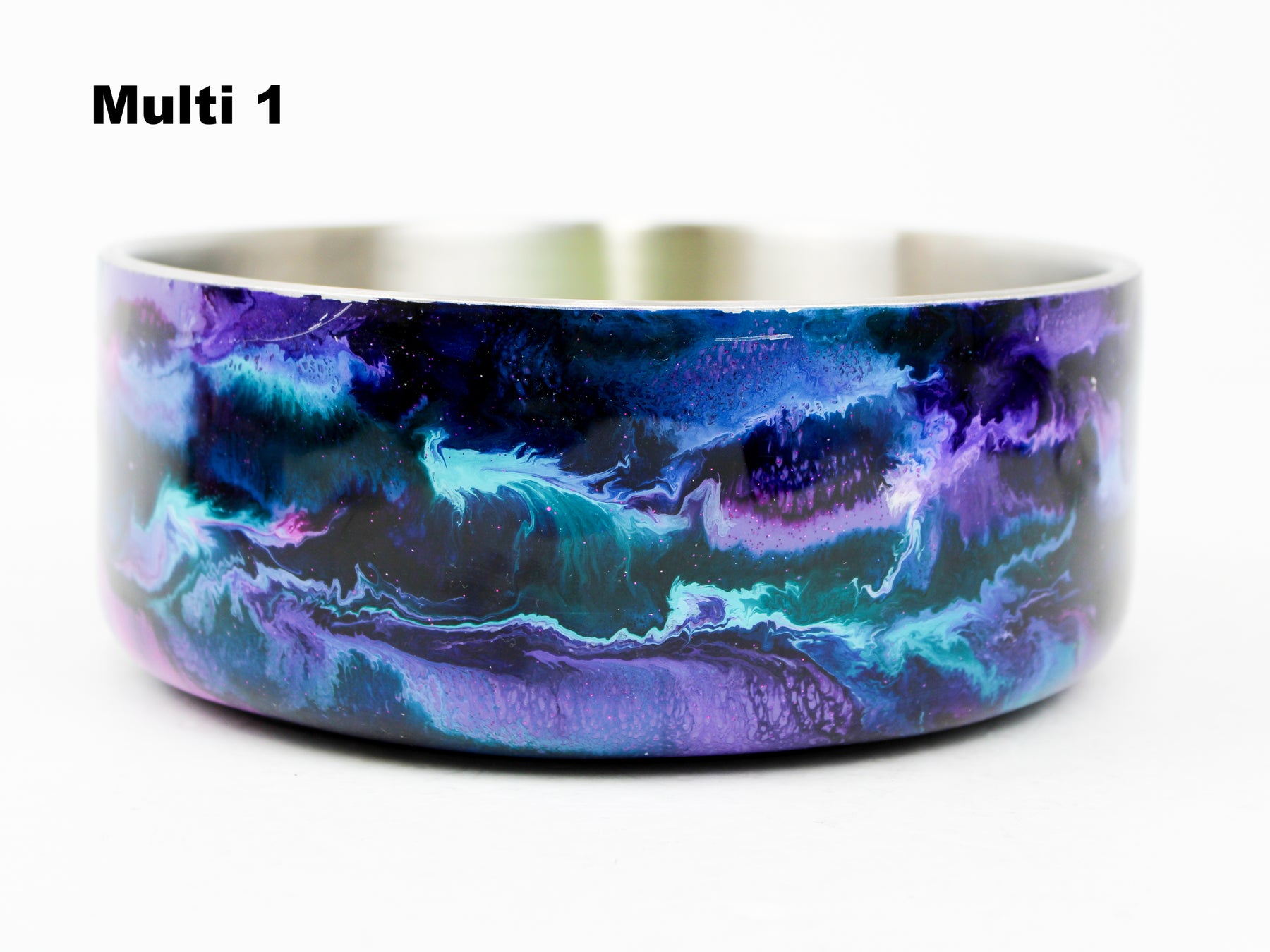 Designer Food Bowls are handmade and truly one of a kind design, Stainless-steel bowl crafted with a durable epoxy finish that’s built to last. Created in Wisconsin by a retired veterinary technician, every item reflects skill, attention to detail, and a commitment to quality. To preserve its shine and longevity, each piece should be hand washed only. These bowls feature a rubber grip on the bottom to prevent them from moving around on hard floors.