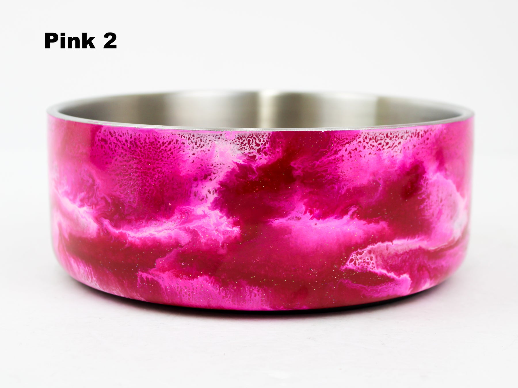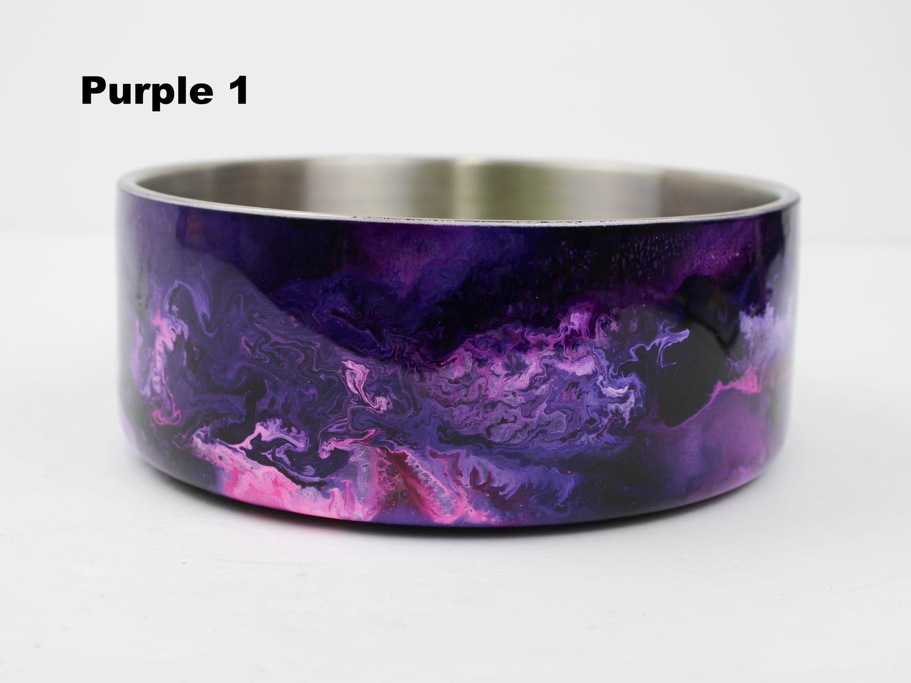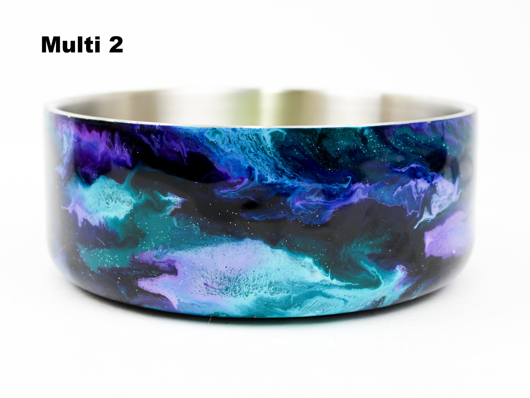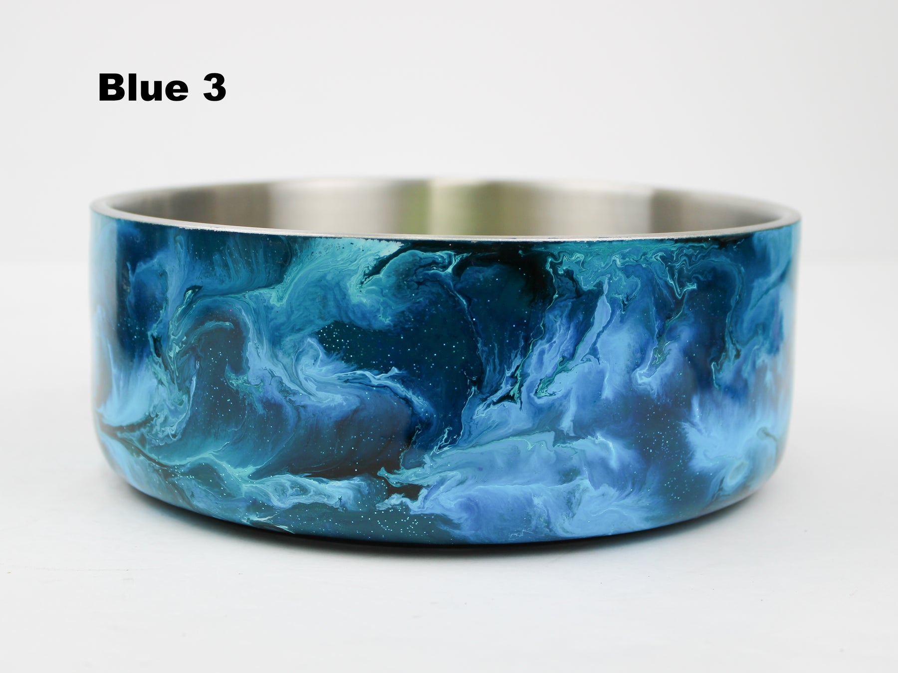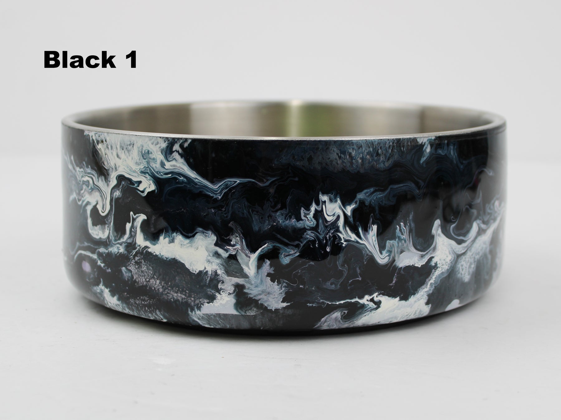 Designer Food Bowls are handmade and truly one of a kind design, Stainless-steel bowl crafted with a durable epoxy finish that’s built to last. Created in Wisconsin by a retired veterinary technician, every item reflects skill, attention to detail, and a commitment to quality. To preserve its shine and longevity, each piece should be hand washed only. These bowls feature a rubber grip on the bottom to prevent them from moving around on hard floors.