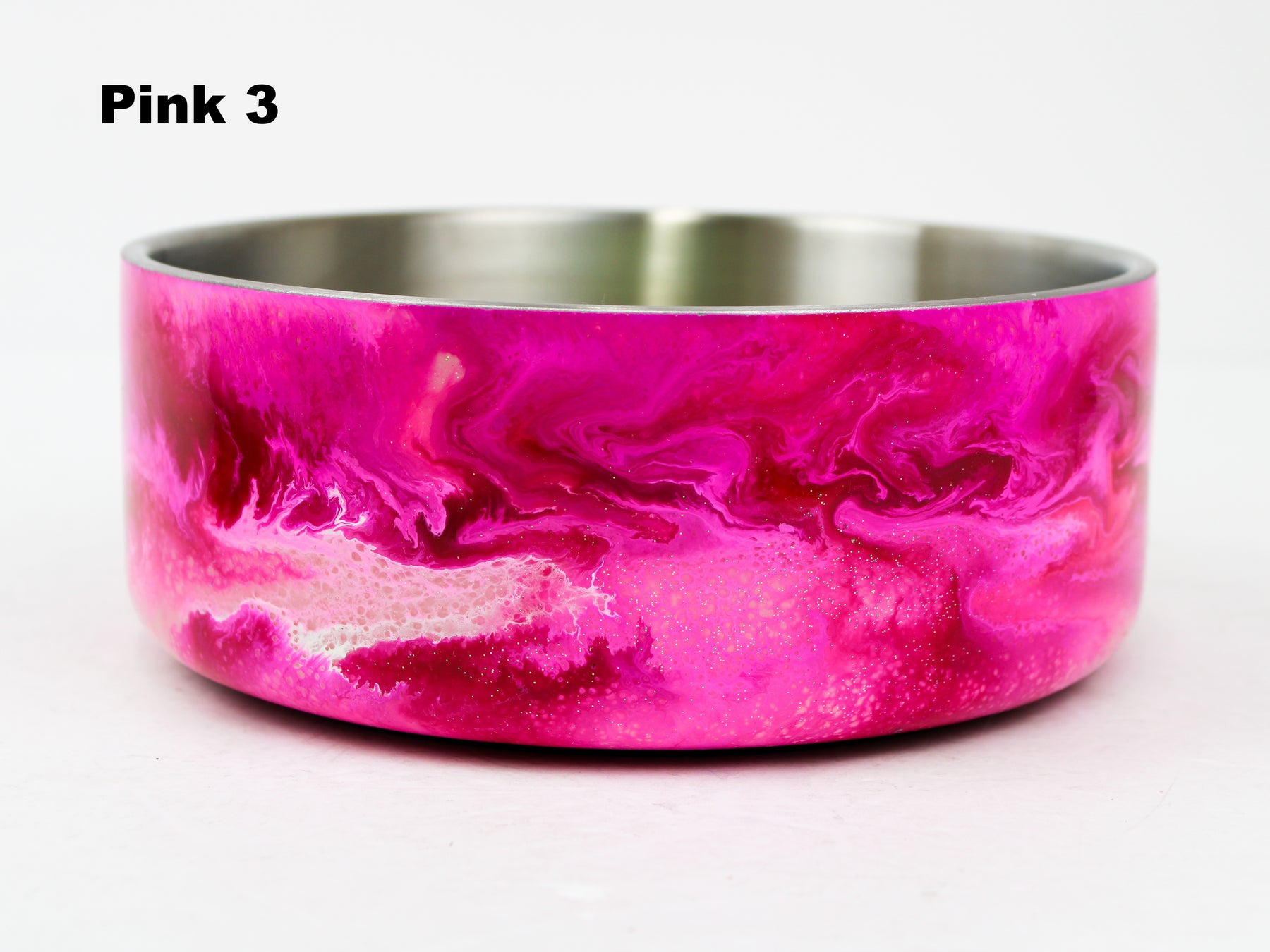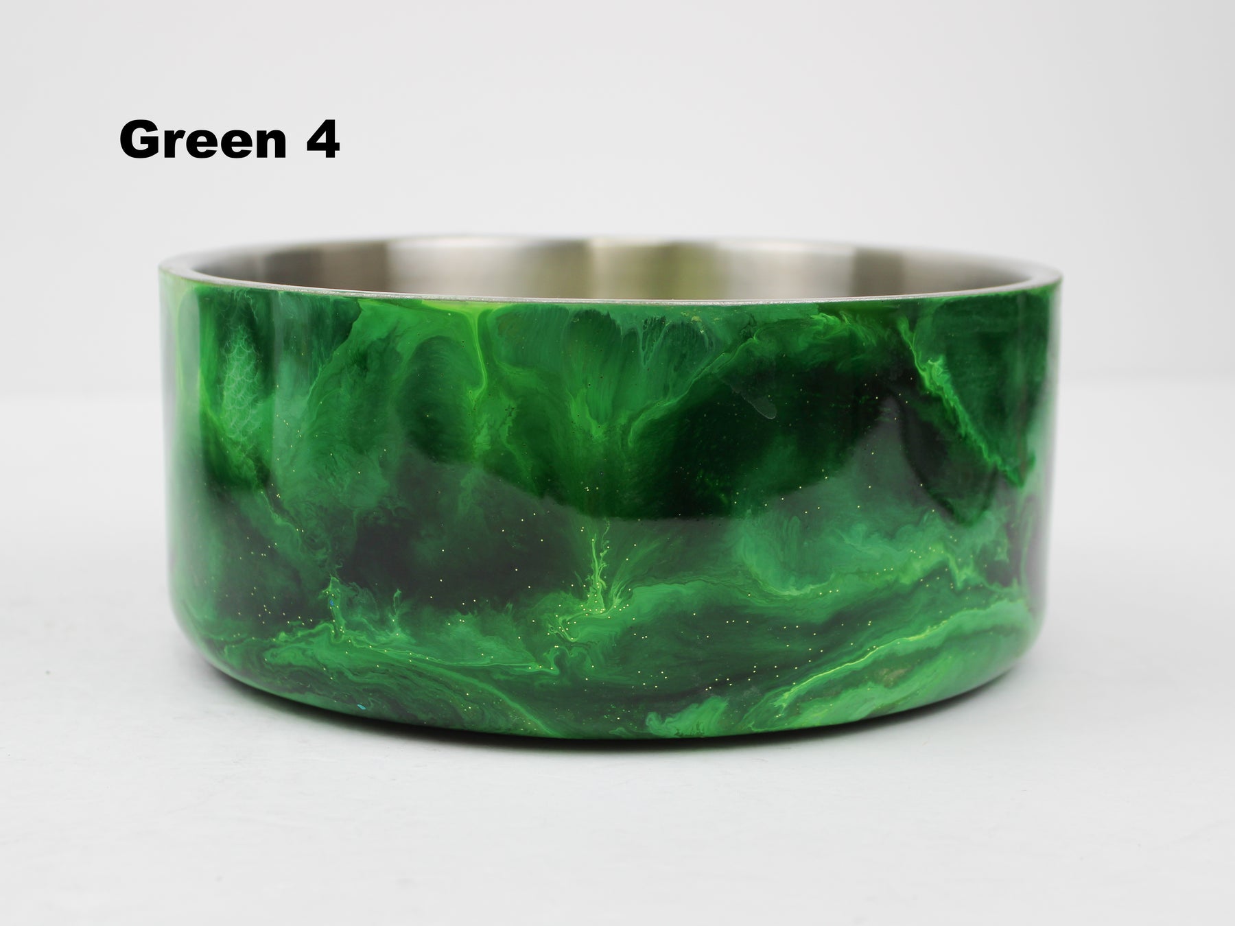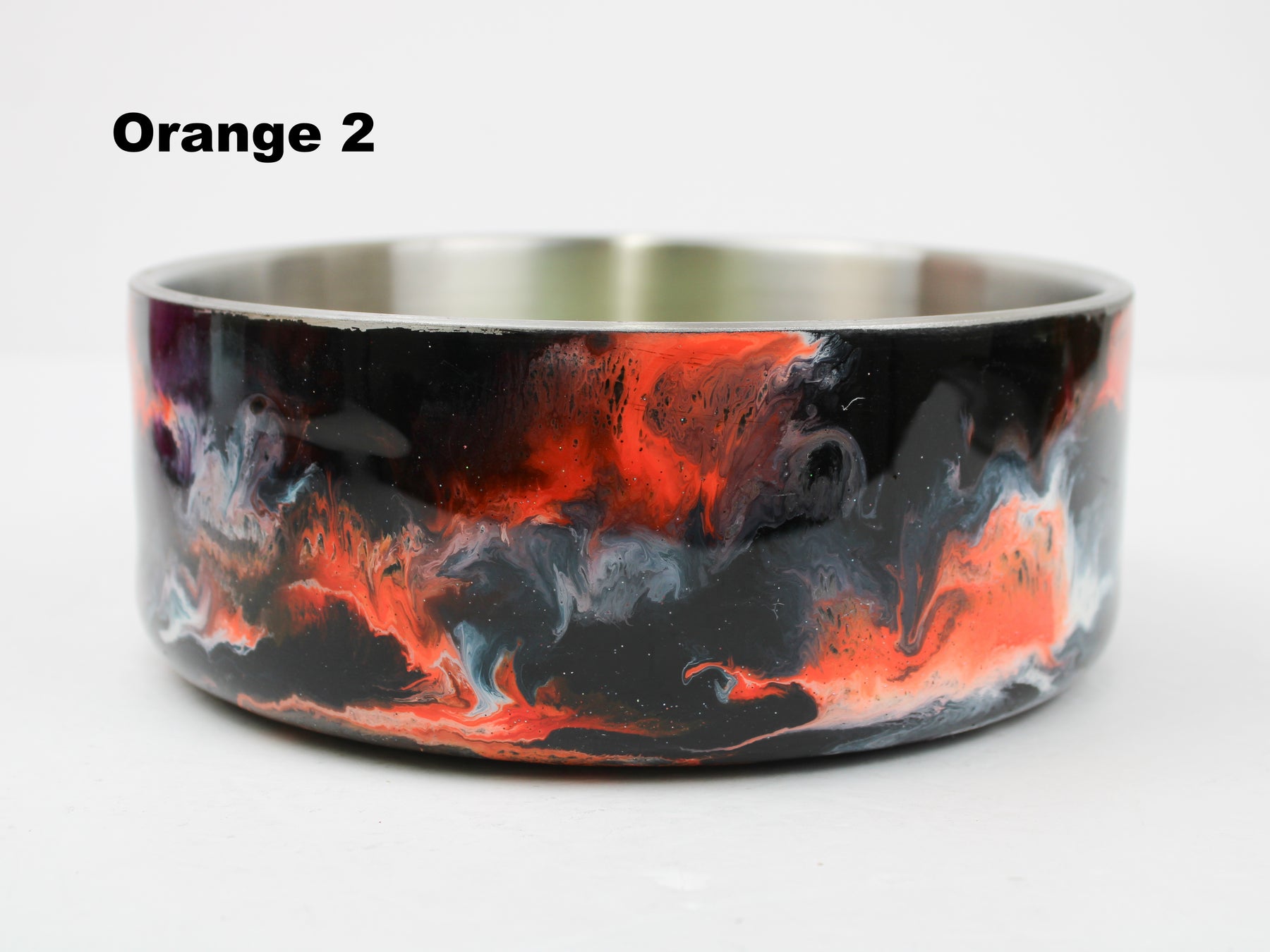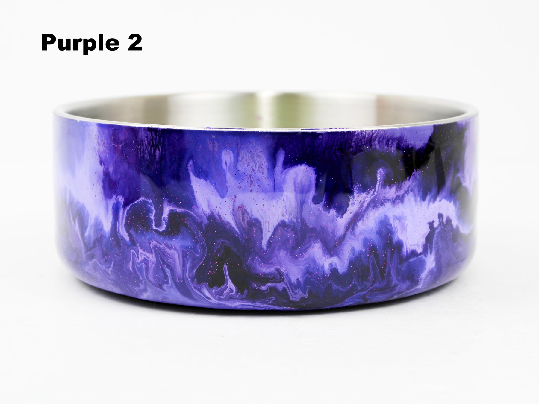 Designer Food Bowls are handmade and truly one of a kind design, Stainless-steel bowl crafted with a durable epoxy finish that’s built to last. Created in Wisconsin by a retired veterinary technician, every item reflects skill, attention to detail, and a commitment to quality. To preserve its shine and longevity, each piece should be hand washed only. These bowls feature a rubber grip on the bottom to prevent them from moving around on hard floors.