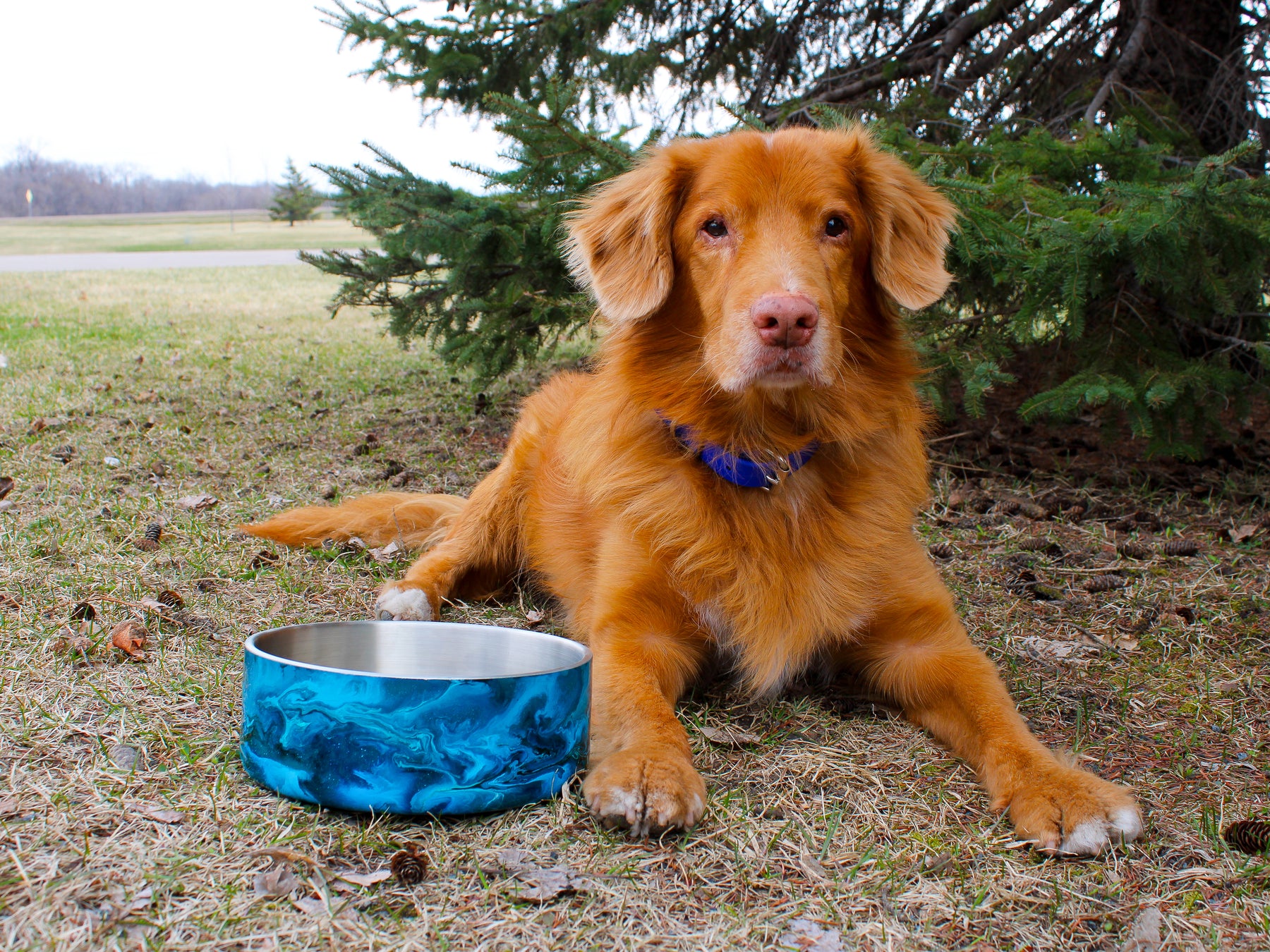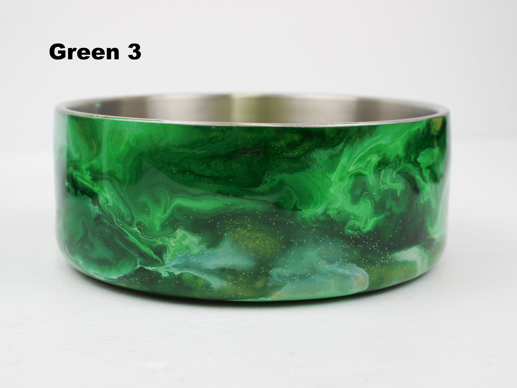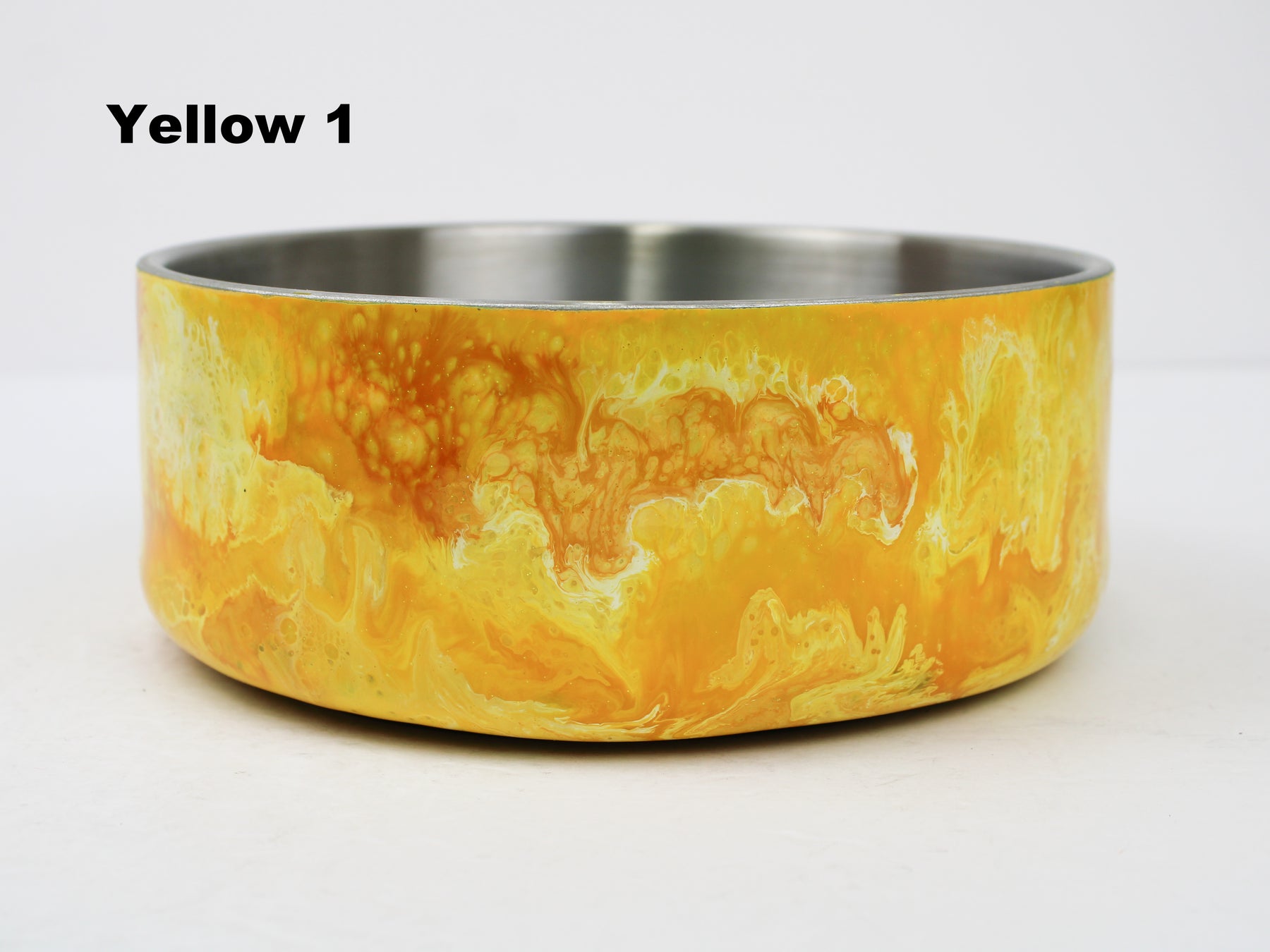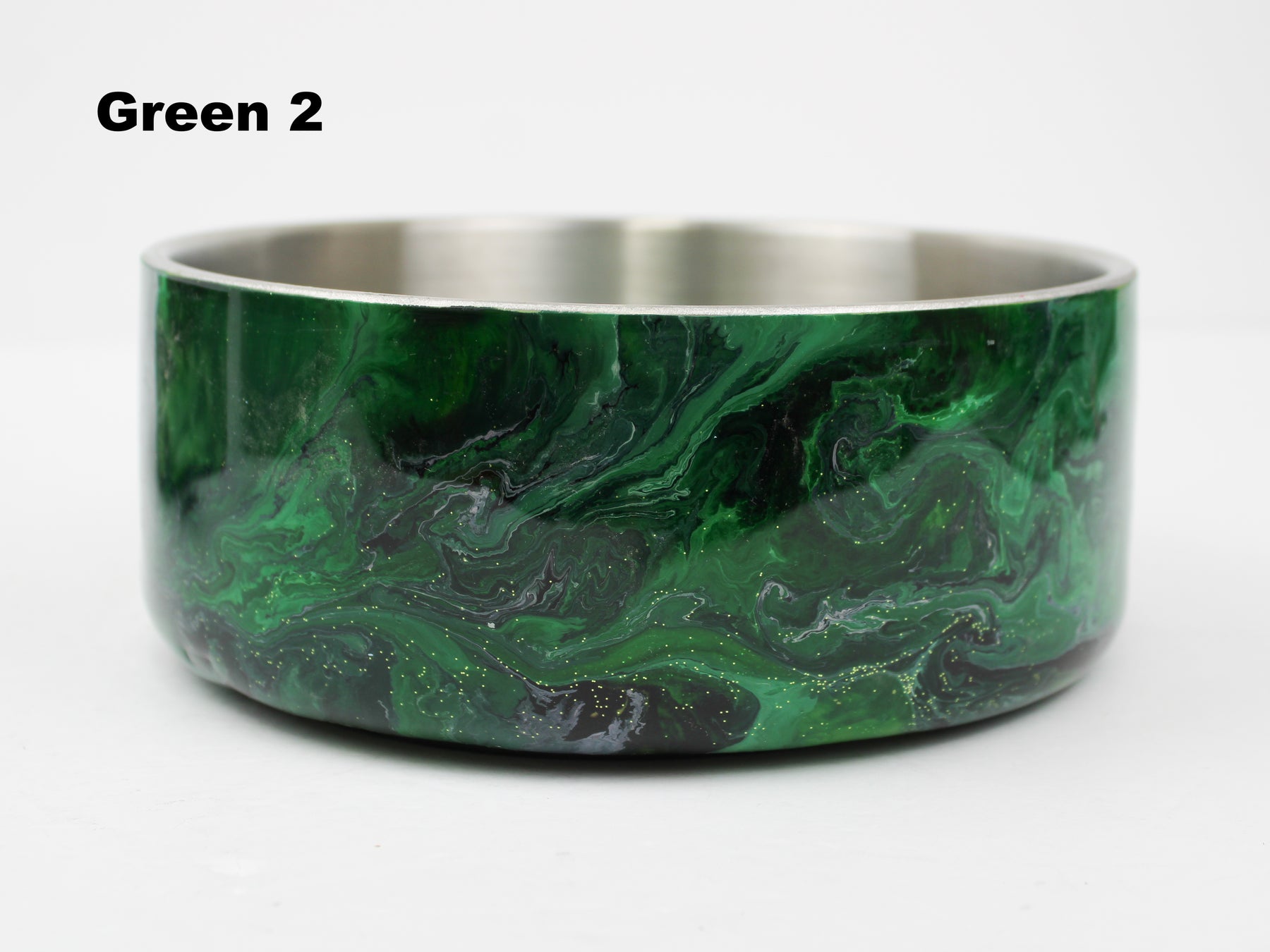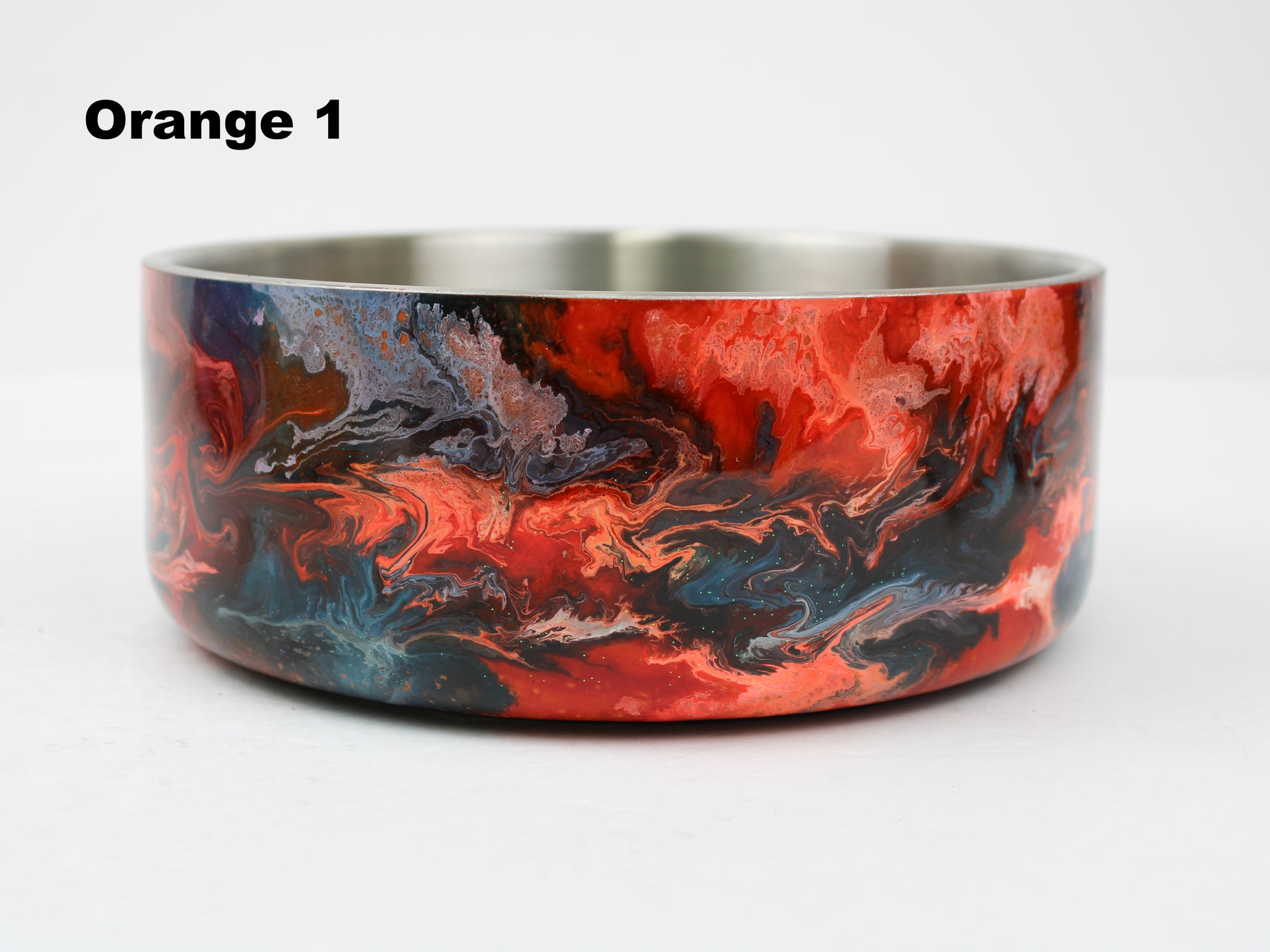 Designer Food Bowls are handmade and truly one of a kind design, Stainless-steel bowl crafted with a durable epoxy finish that’s built to last. Created in Wisconsin by a retired veterinary technician, every item reflects skill, attention to detail, and a commitment to quality. To preserve its shine and longevity, each piece should be hand washed only. These bowls feature a rubber grip on the bottom to prevent them from moving around on hard floors.