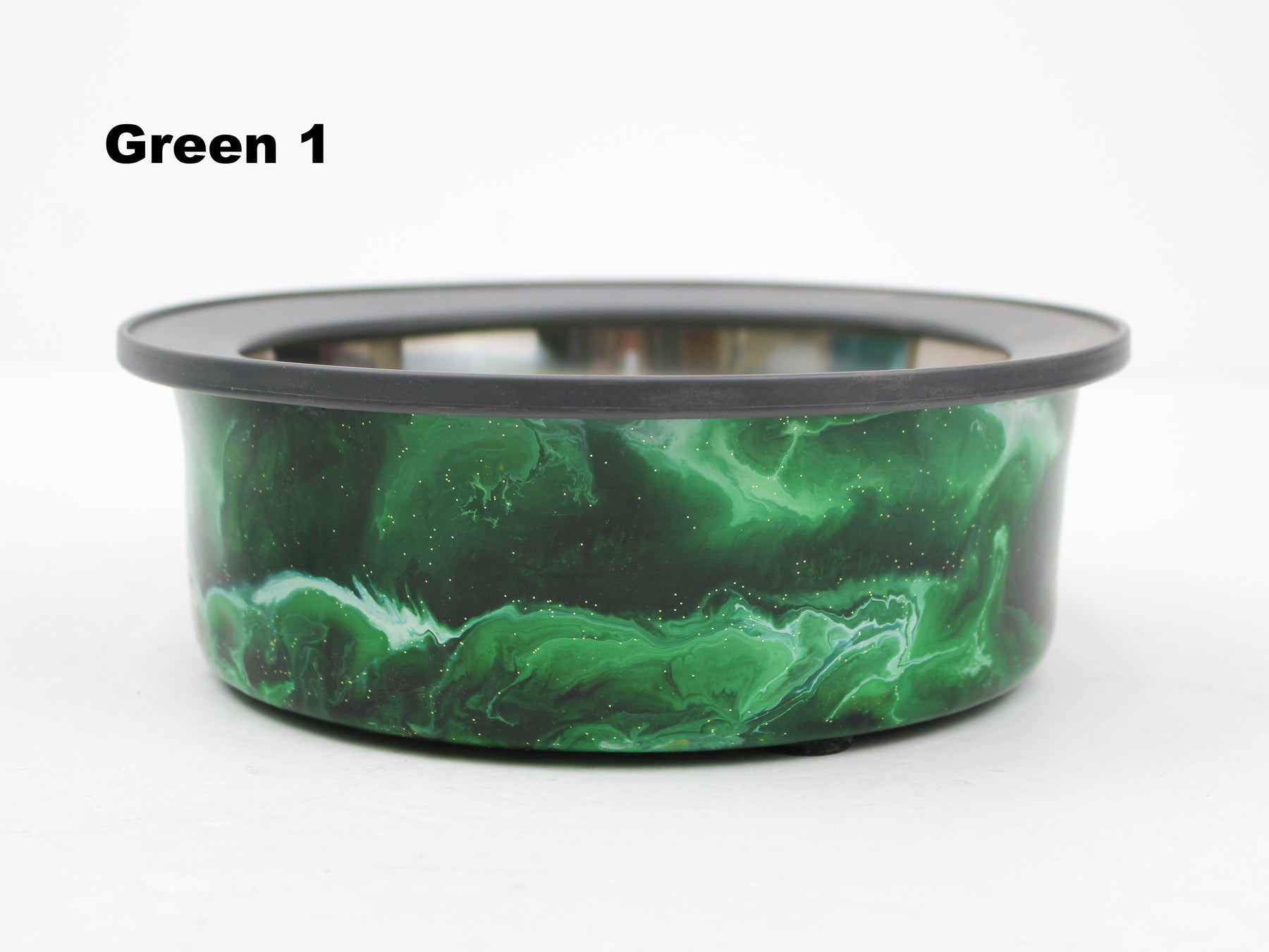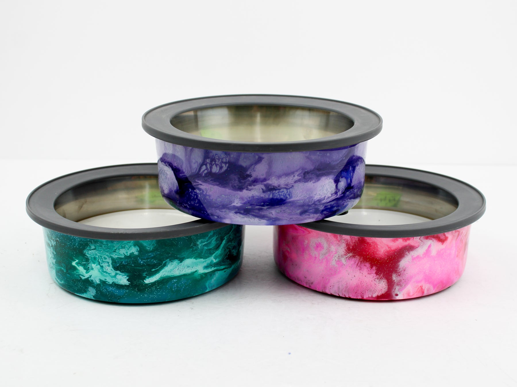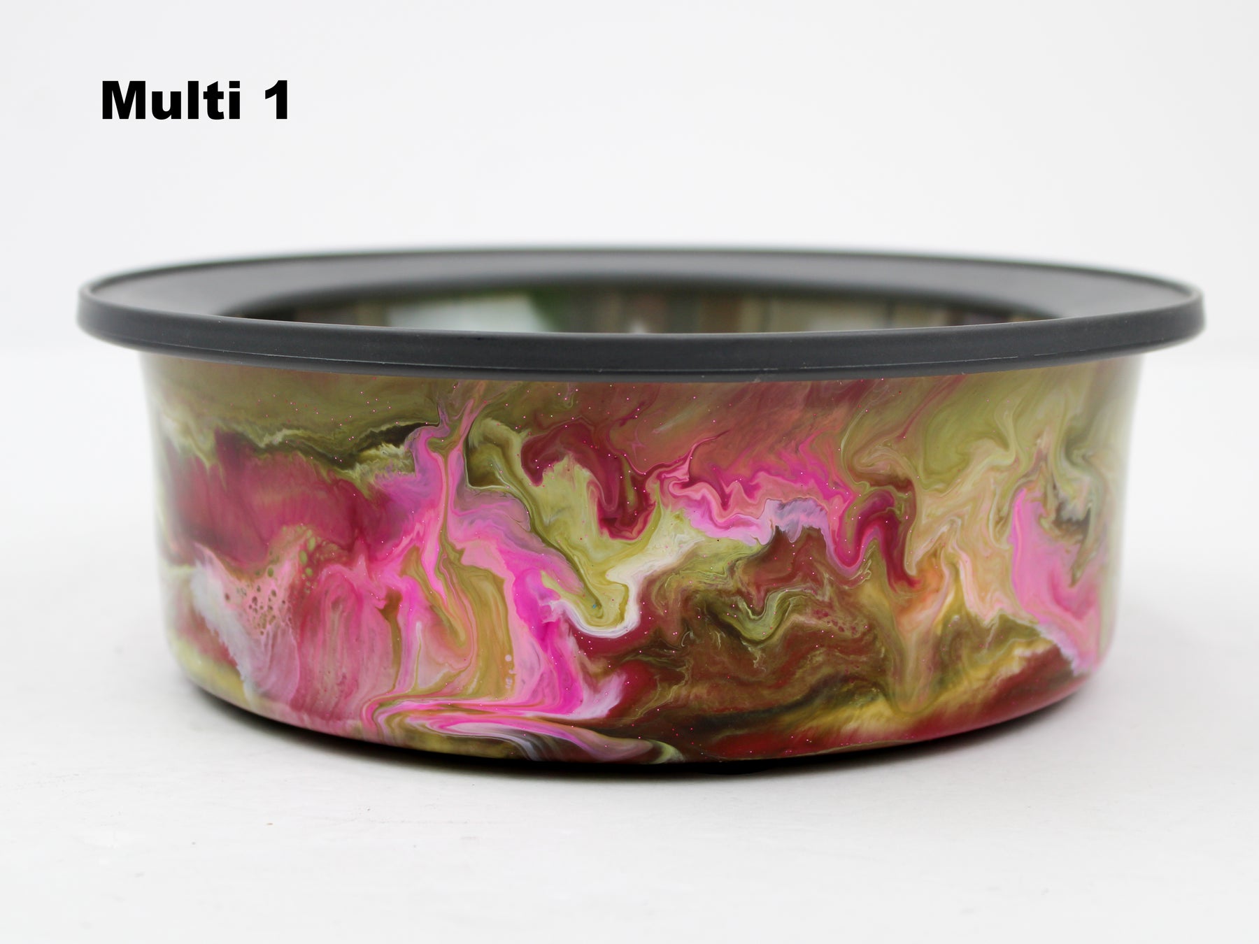 Designer Water Bowls are handmade and truly one-of-a-kind design, crafted with a durable epoxy finish on a stainless-steel bowl that’s built to last. Created in Wisconsin by a retired veterinary technician, every item reflects skill, attention to detail, and a commitment to quality. To preserve its shine and longevity, each piece should be hand washed only.
