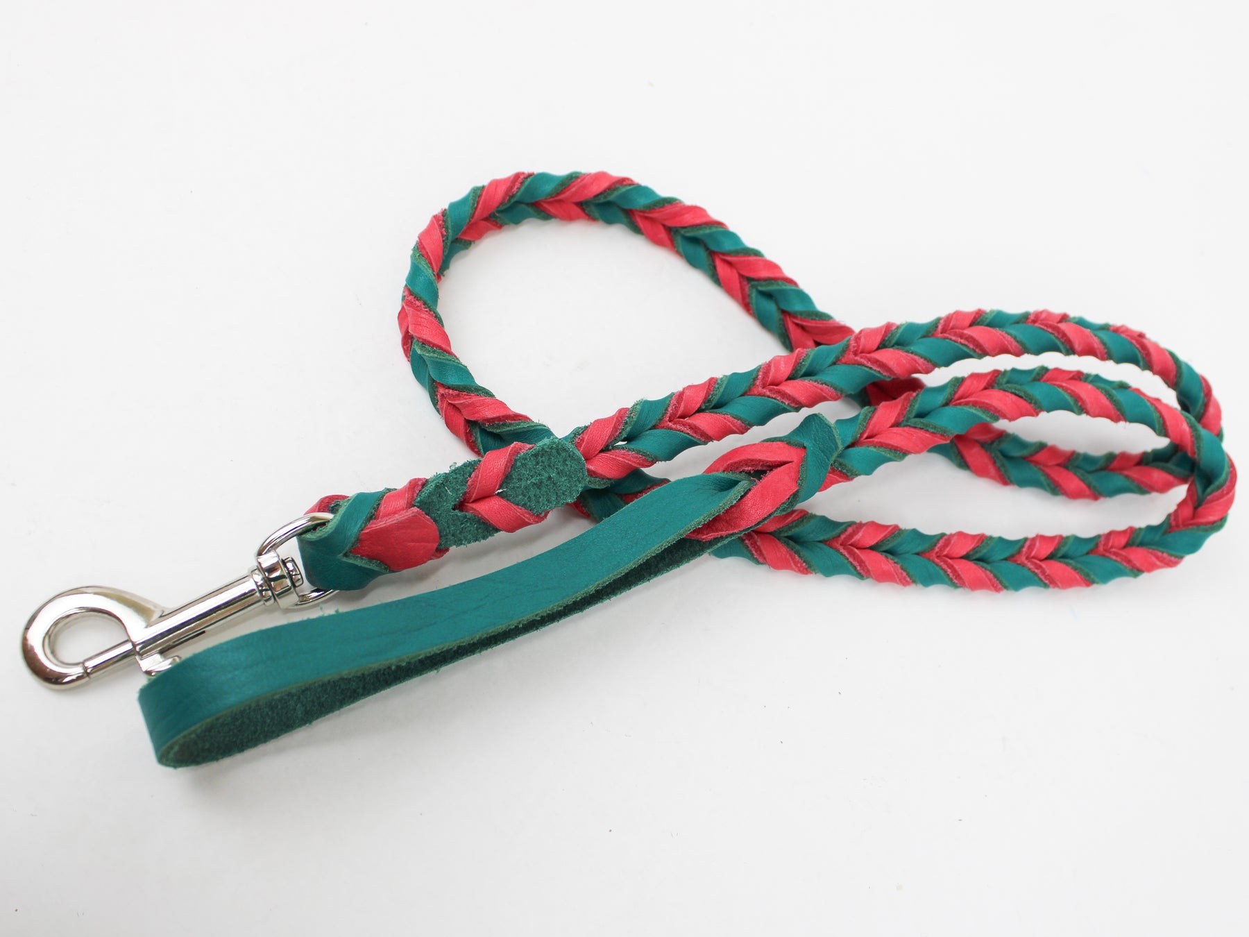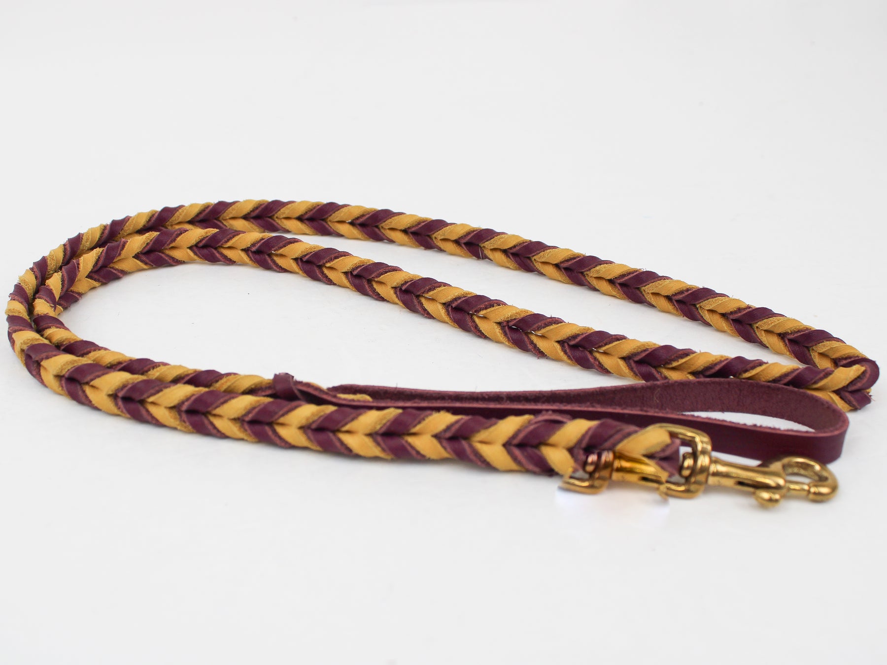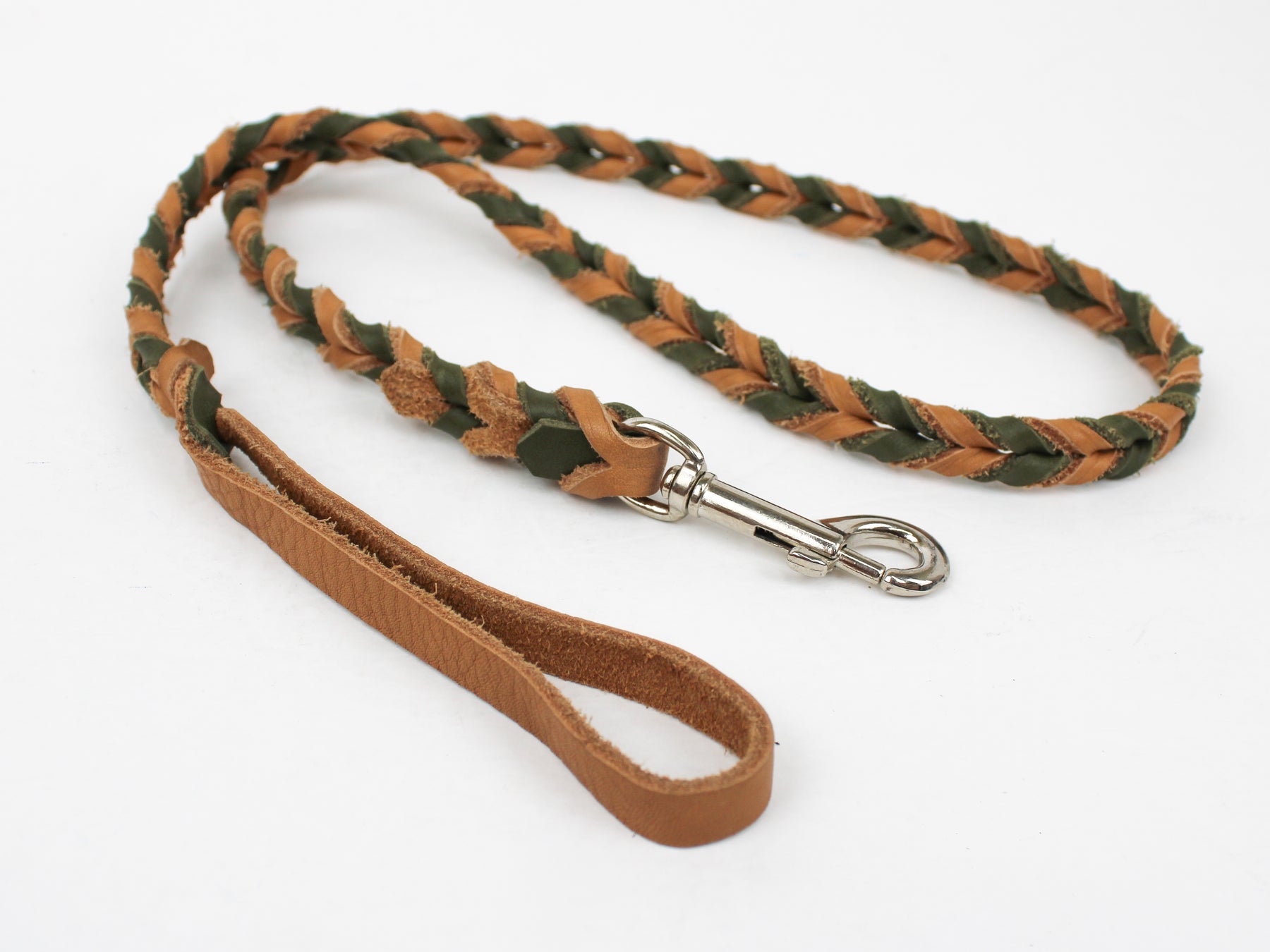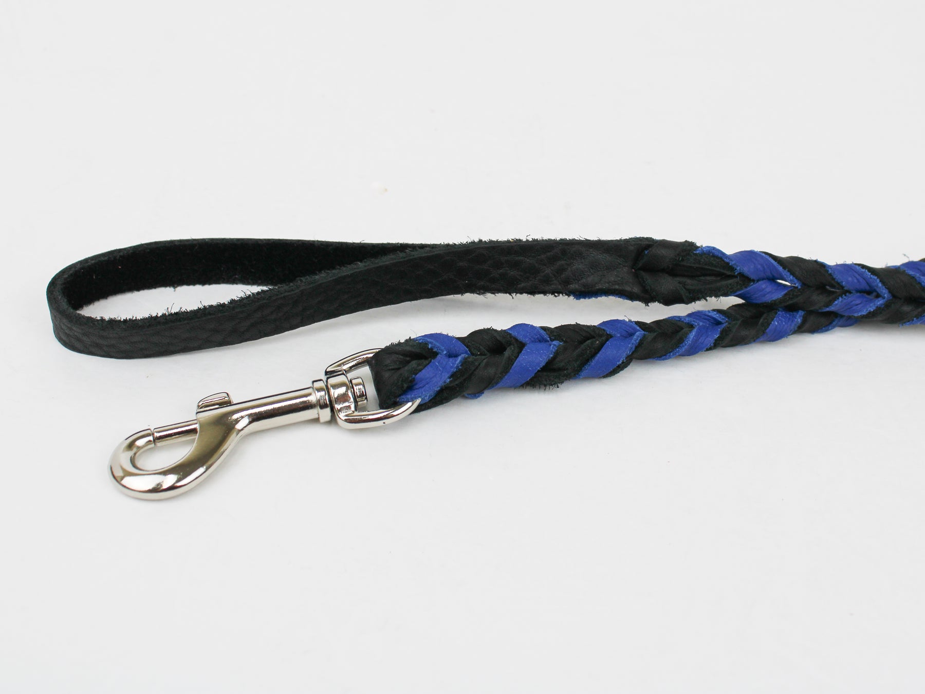 The Braided leather leash is handmade in our shop in Minnesota and custom made for each order! Soft leather is a buttery soft bullhide, while the latigo leather is a stiffer leather that will soften with use. With so many options, you can create the perfect leash for your best friend. Keep in mind that because these are handmade, there may be a slight variation on the length. Leather does stretch and relax with use. The "primary" color will be the color of the handle. Standard snap color is silver (except w/gold leather). We reserve the right to reverse your primary and secondary options to increase the durability of the leash. 1/4" are in a separate listing. braid12