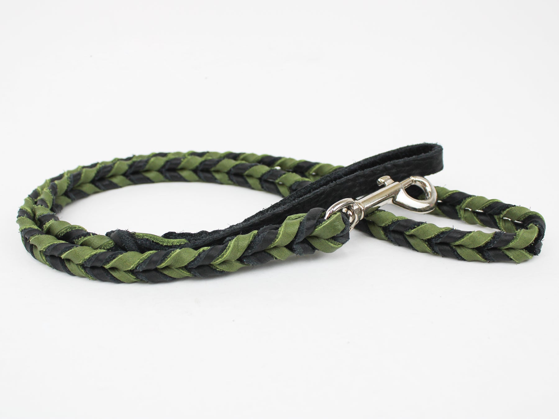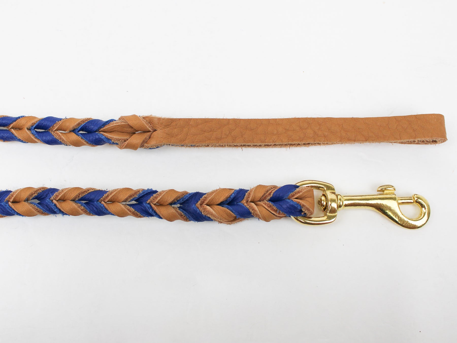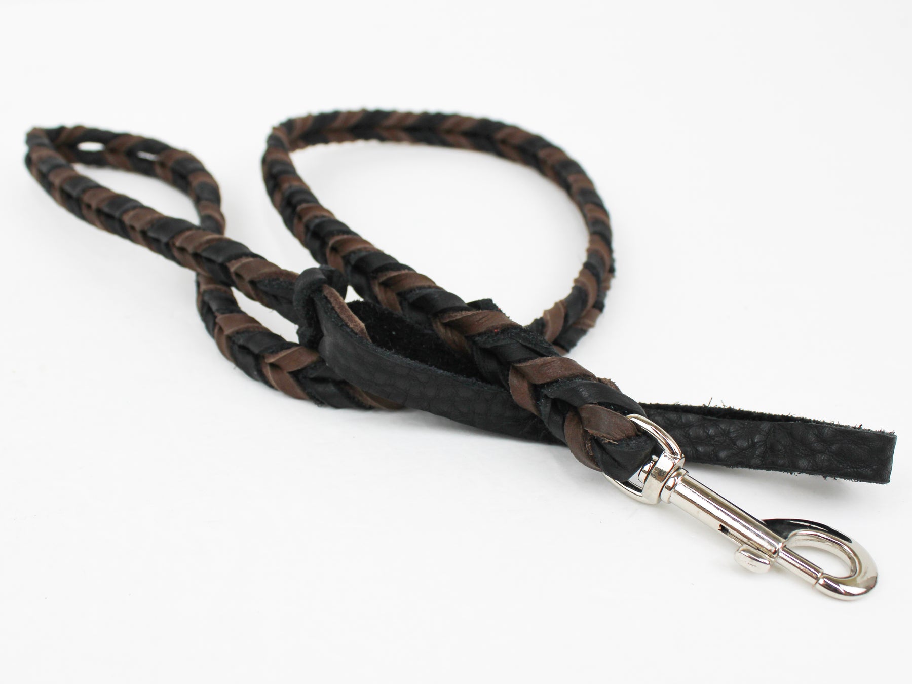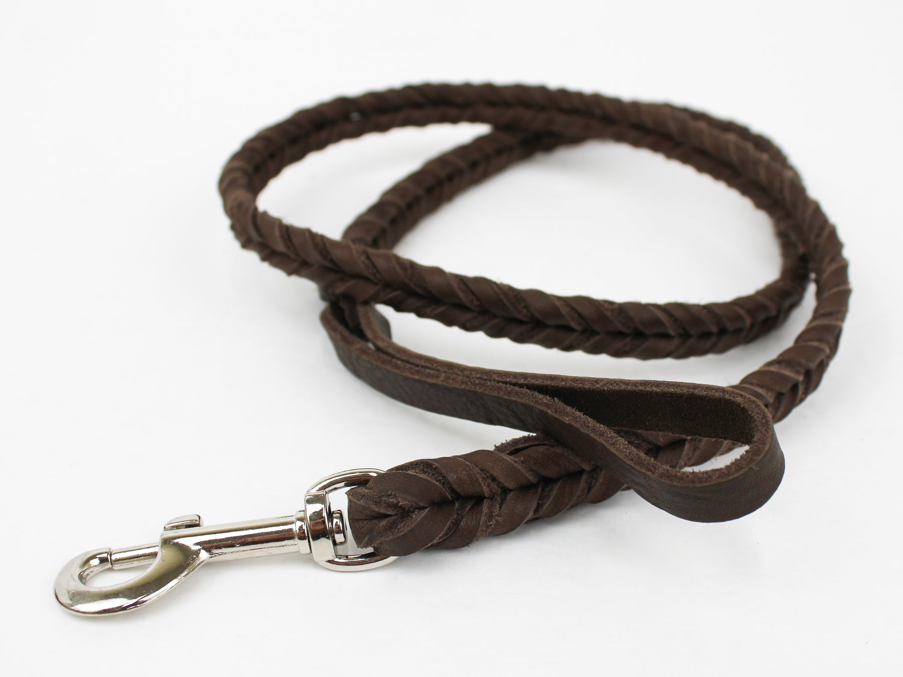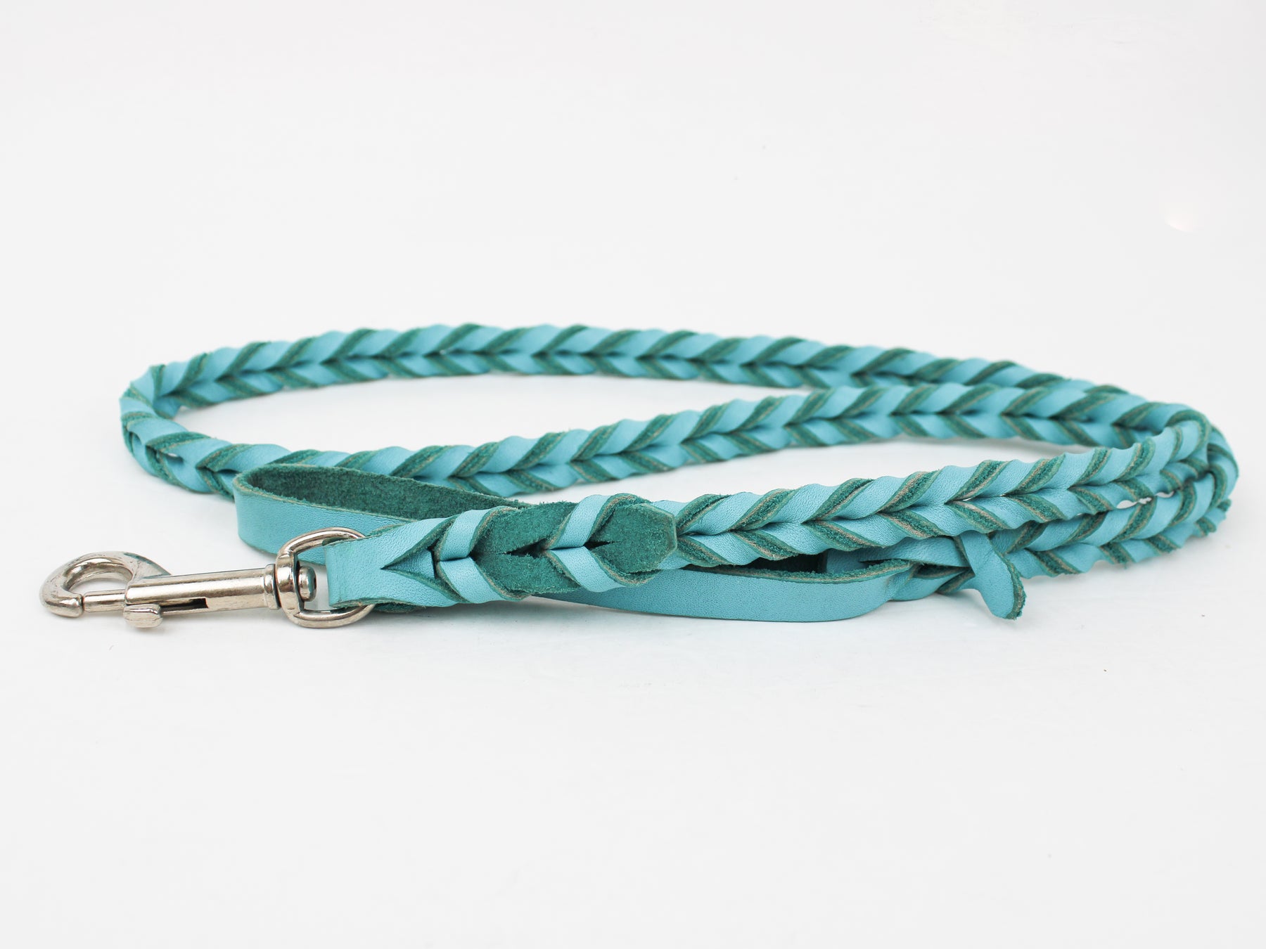 The Braided leather leash is handmade in our shop in Minnesota and custom made for each order! Soft leather is a buttery soft bullhide, while the latigo leather is a stiffer leather that will soften with use. With so many options, you can create the perfect leash for your best friend. Keep in mind that because these are handmade, there may be a slight variation on the length. Leather does stretch and relax with use. The "primary" color will be the color of the handle. Standard snap color is silver (except w/gold leather). We reserve the right to reverse your primary and secondary options to increase the durability of the leash. 1/4" are in a separate listing. braid12
