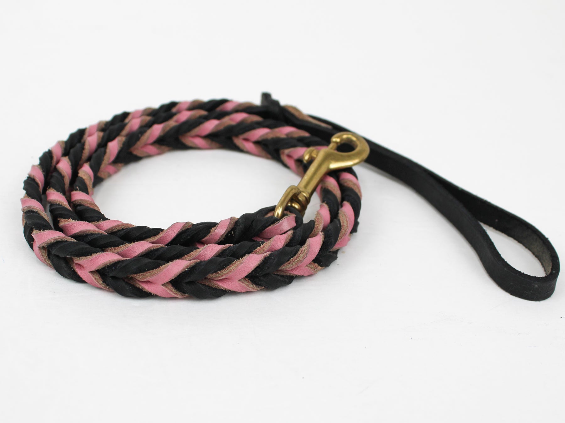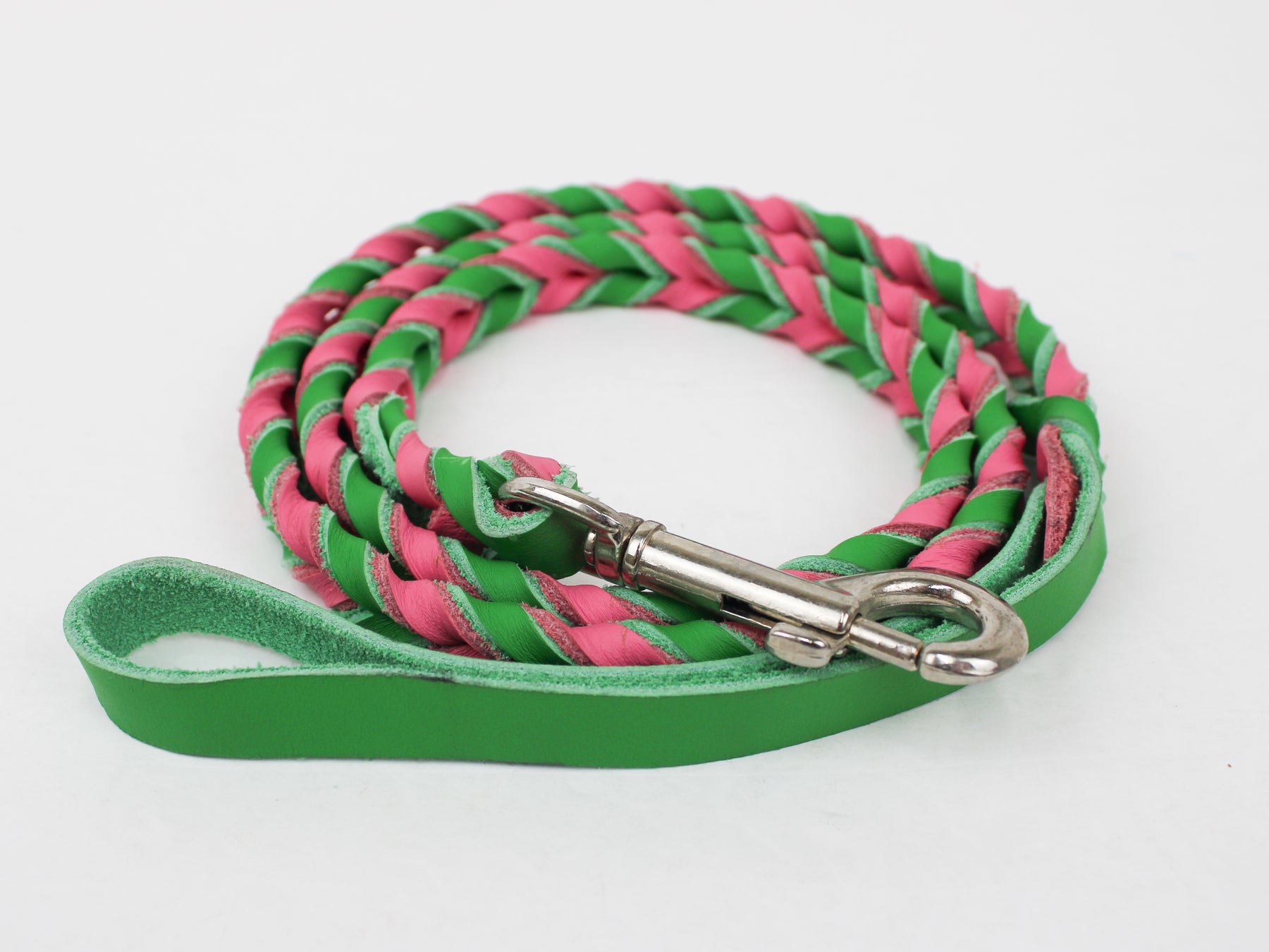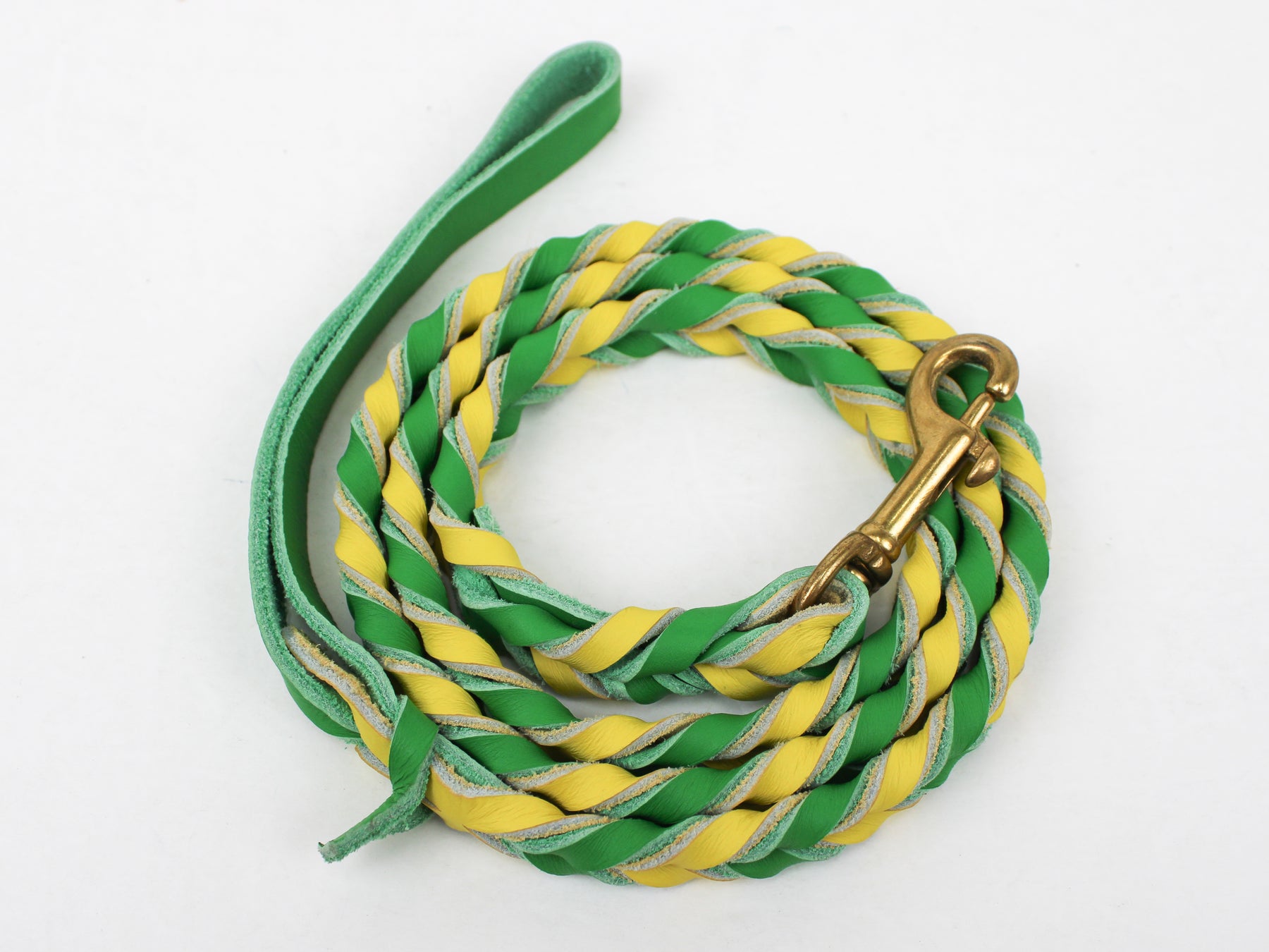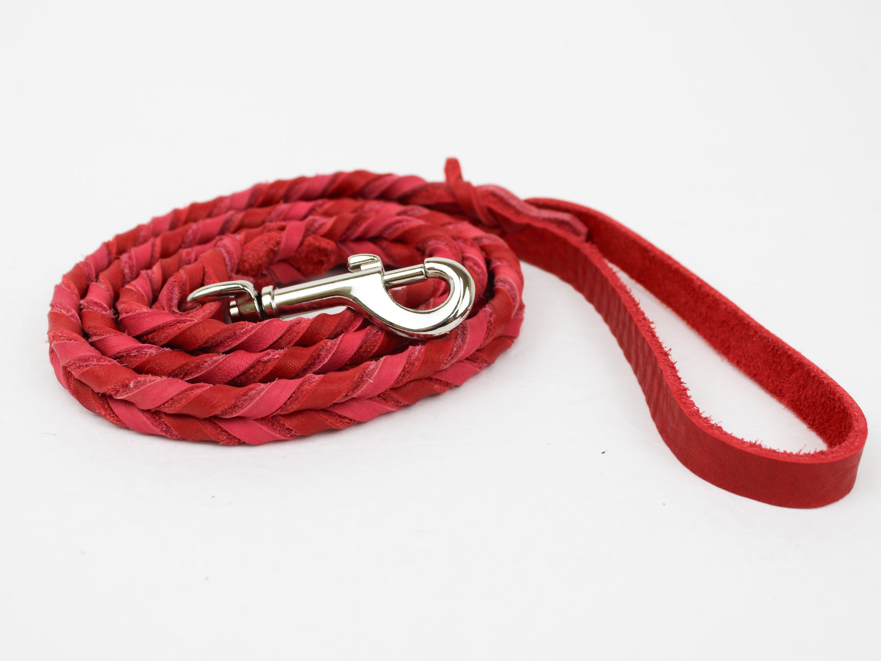 The Braided leather leash is handmade in our shop in Minnesota and custom made for each order! Soft leather is a buttery soft bullhide, while the latigo leather is a stiffer leather that will soften with use. With so many options, you can create the perfect leash for your best friend. Keep in mind that because these are handmade, there may be a slight variation on the length. Leather does stretch and relax with use. The "primary" color will be the color of the handle. Standard snap color is silver (except w/gold leather). We reserve the right to reverse your primary and secondary options to increase the durability of the leash. 1/4" are in a separate listing. braid12