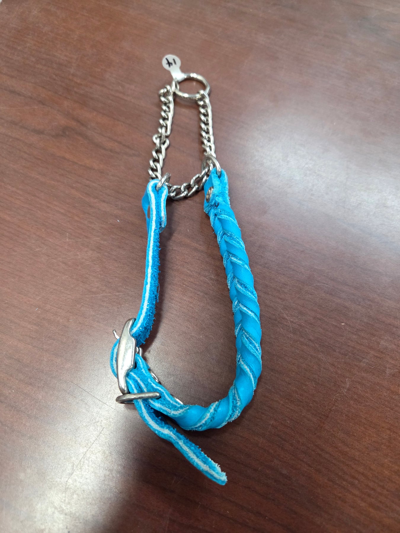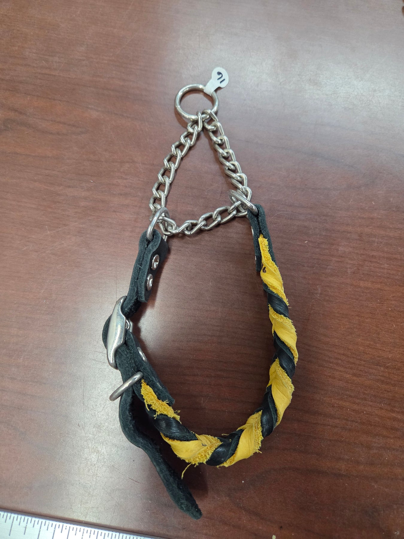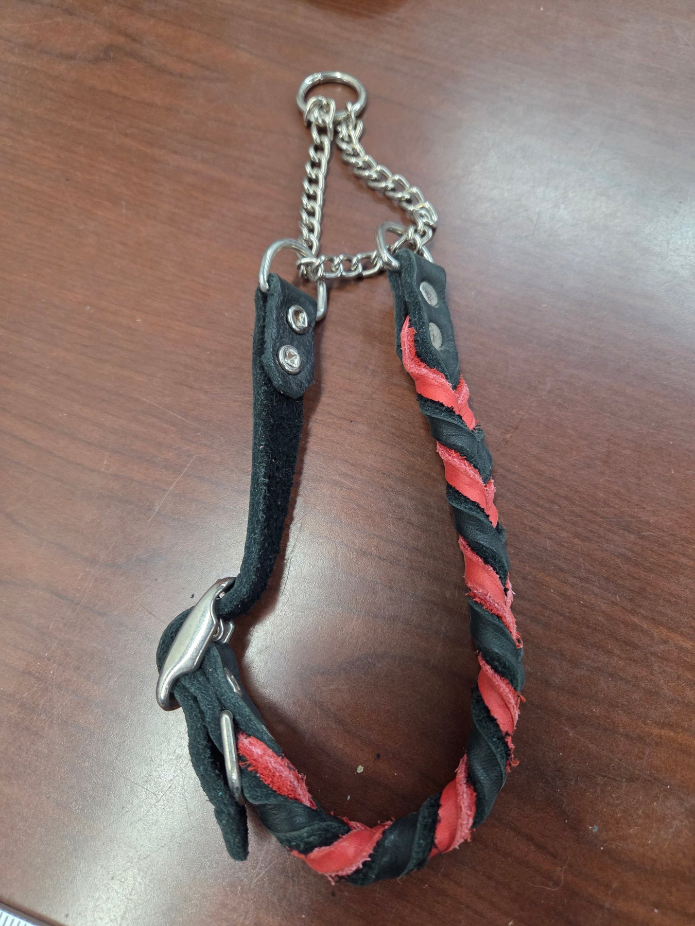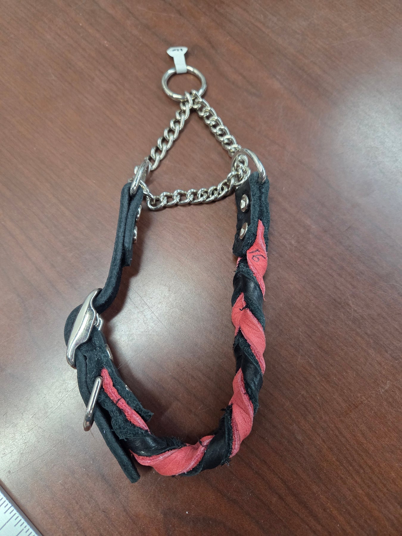 The Braided Leather Adjustable Martingale Collar have a buckle so there is no need to slip over the dog's head, like a traditional martingale collar. Measure the widest part of your dog's neck. Contact us if you have sizing questions. Please measure using line #2 on our guide to assure an accurate fit. Go up to the closest size.