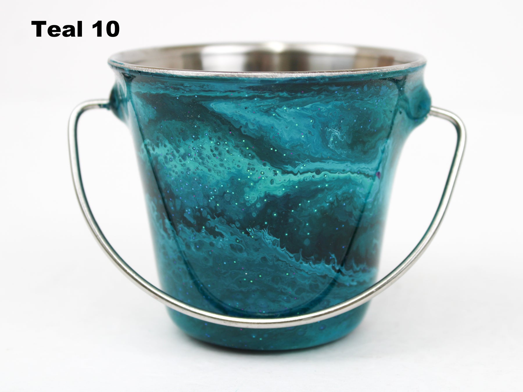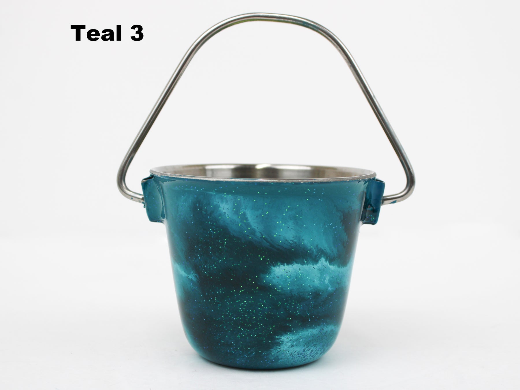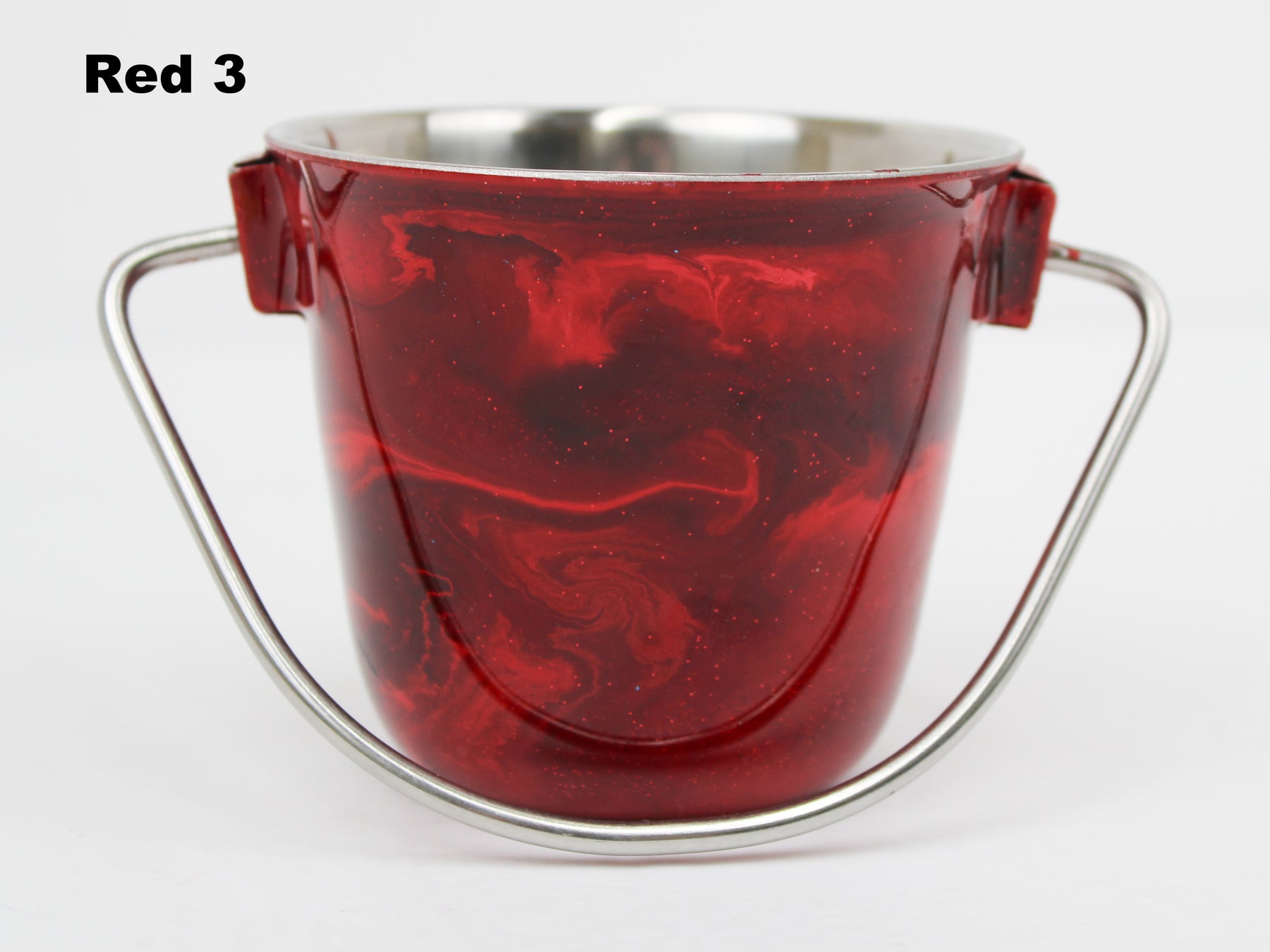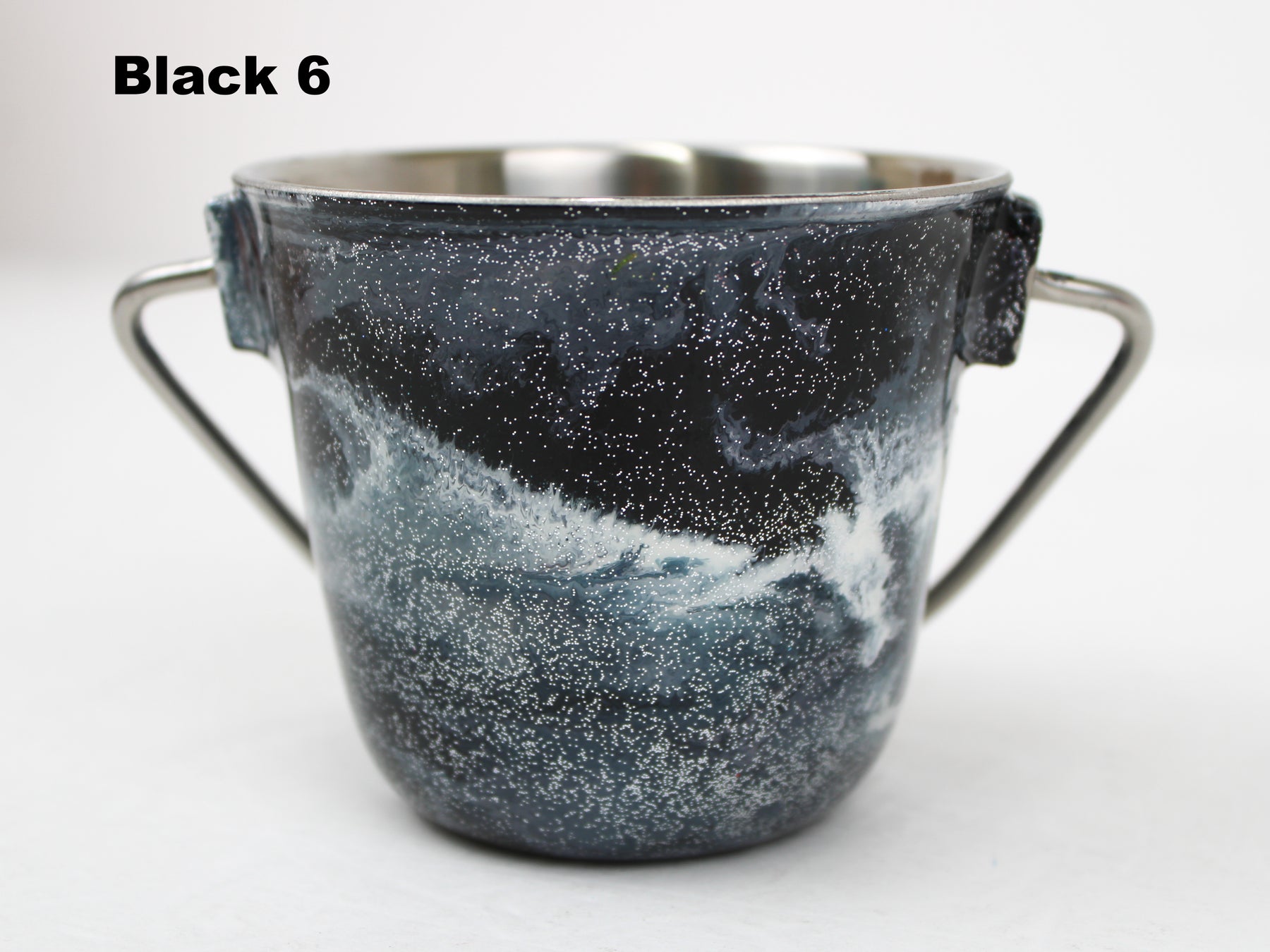 In stock Designer Water Buckets is handmade and truly one of a kind design, crafted with a durable epoxy finish that’s built to last. Created in Wisconsin by a retired veterinary technician, every item reflects skill, attention to detail, and a commitment to quality. To preserve its shine and longevity, each piece should be hand washed only.