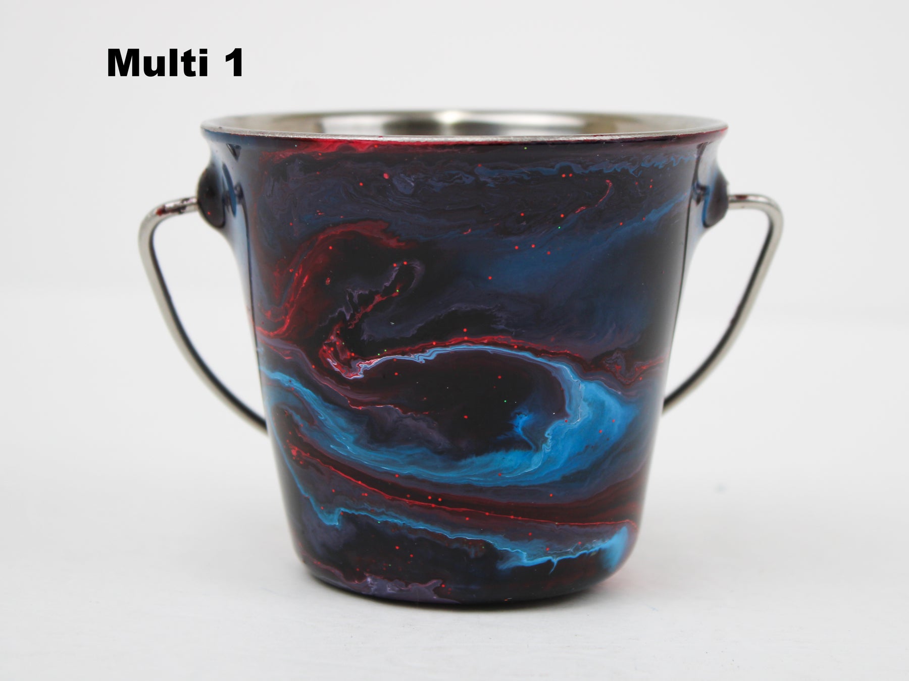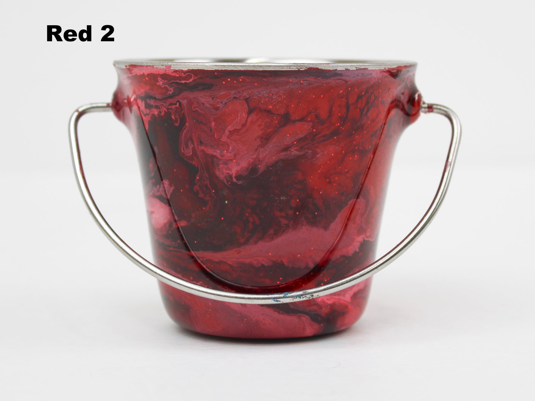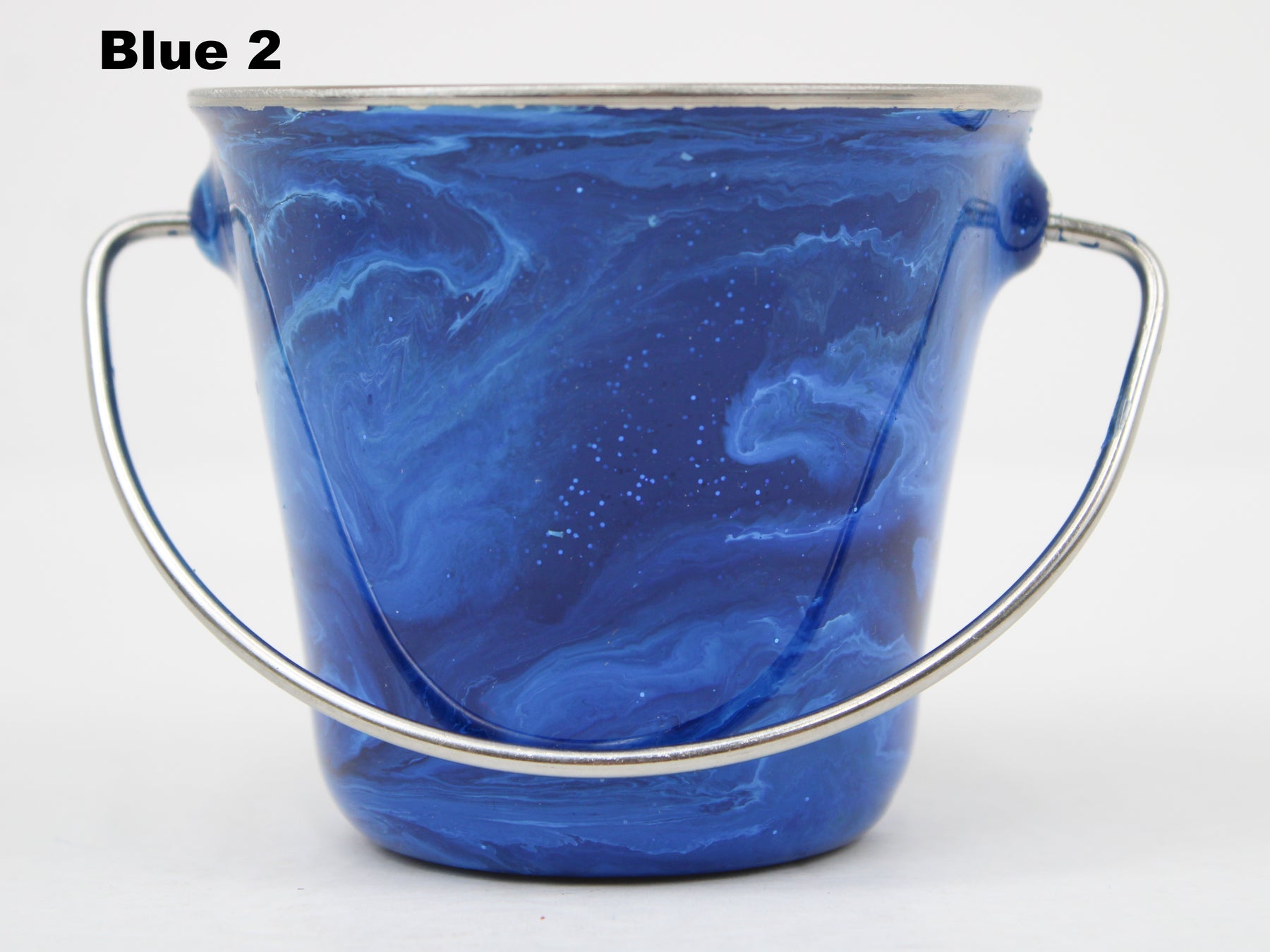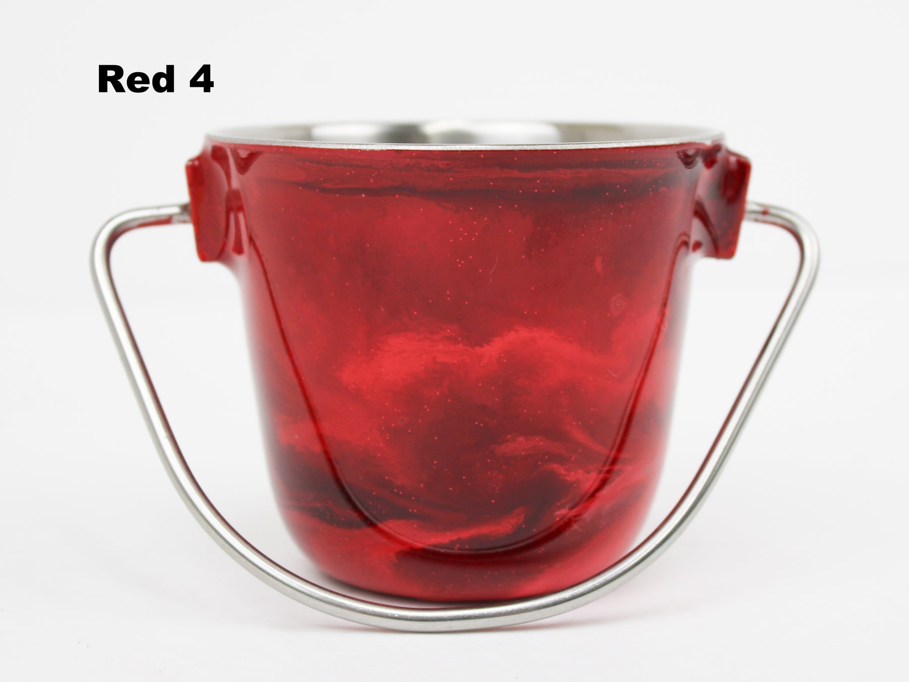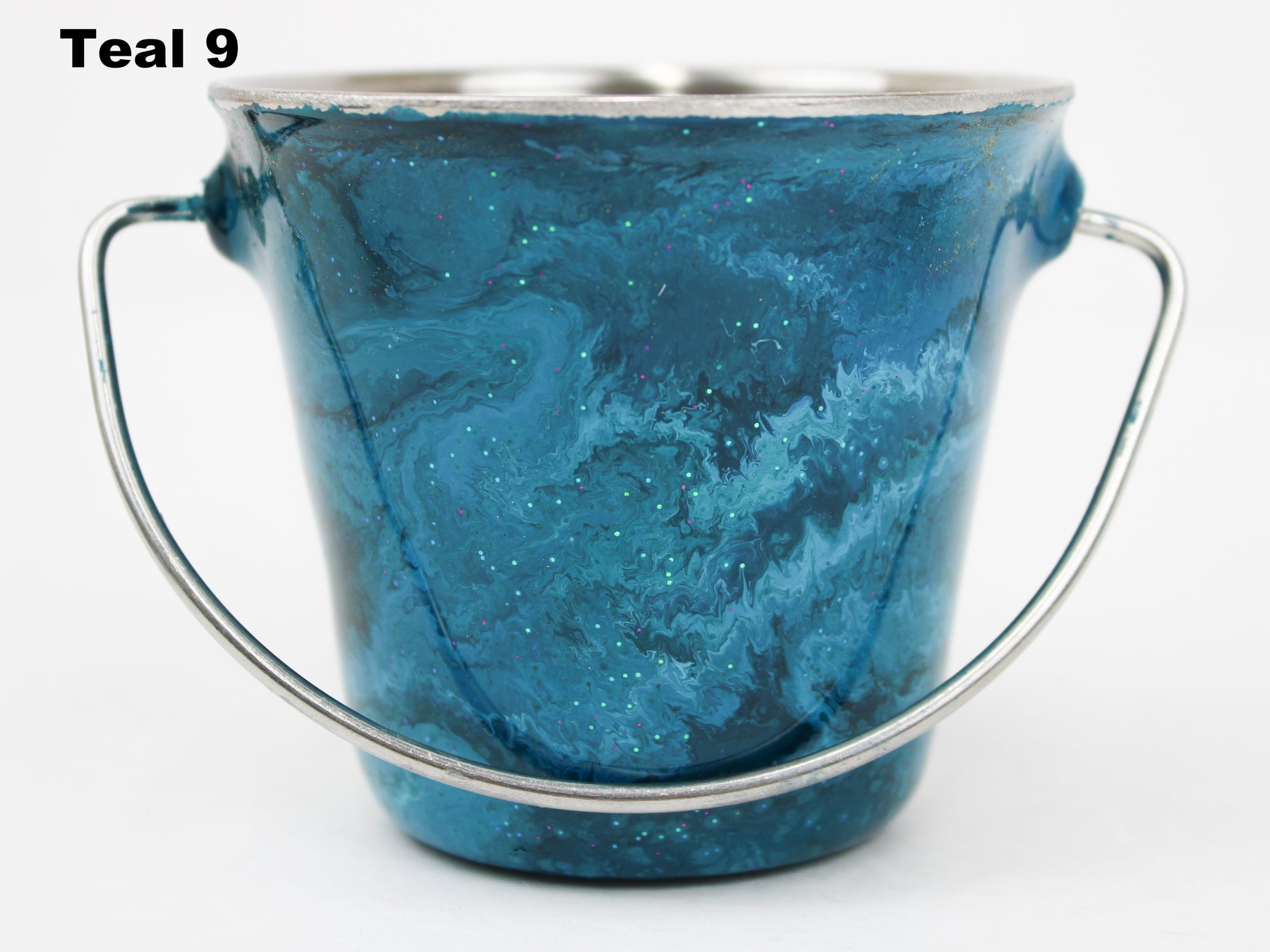 In stock Designer Water Buckets is handmade and truly one of a kind design, crafted with a durable epoxy finish that’s built to last. Created in Wisconsin by a retired veterinary technician, every item reflects skill, attention to detail, and a commitment to quality. To preserve its shine and longevity, each piece should be hand washed only.