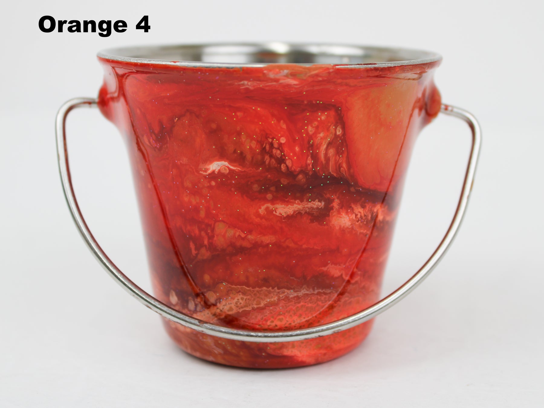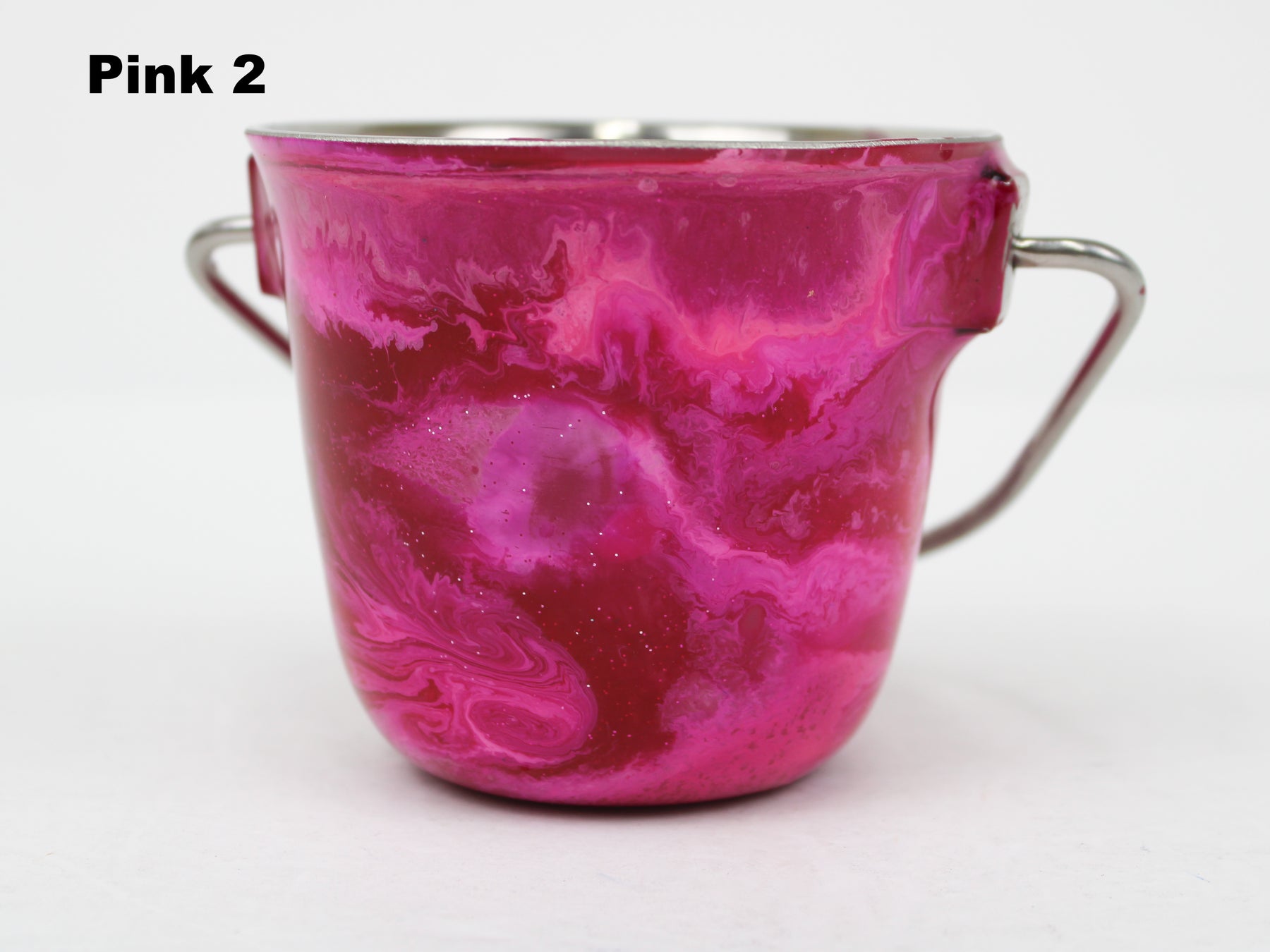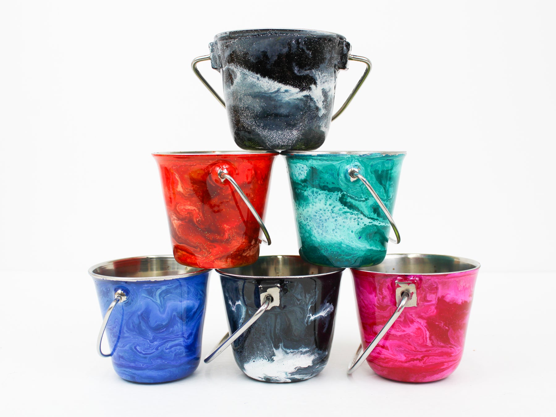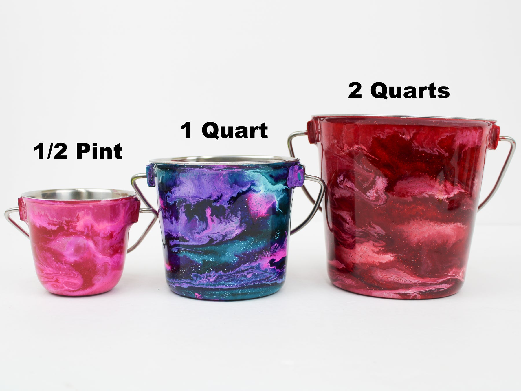 In stock Designer Water Buckets is handmade and truly one of a kind design, crafted with a durable epoxy finish that’s built to last. Created in Wisconsin by a retired veterinary technician, every item reflects skill, attention to detail, and a commitment to quality. To preserve its shine and longevity, each piece should be hand washed only.