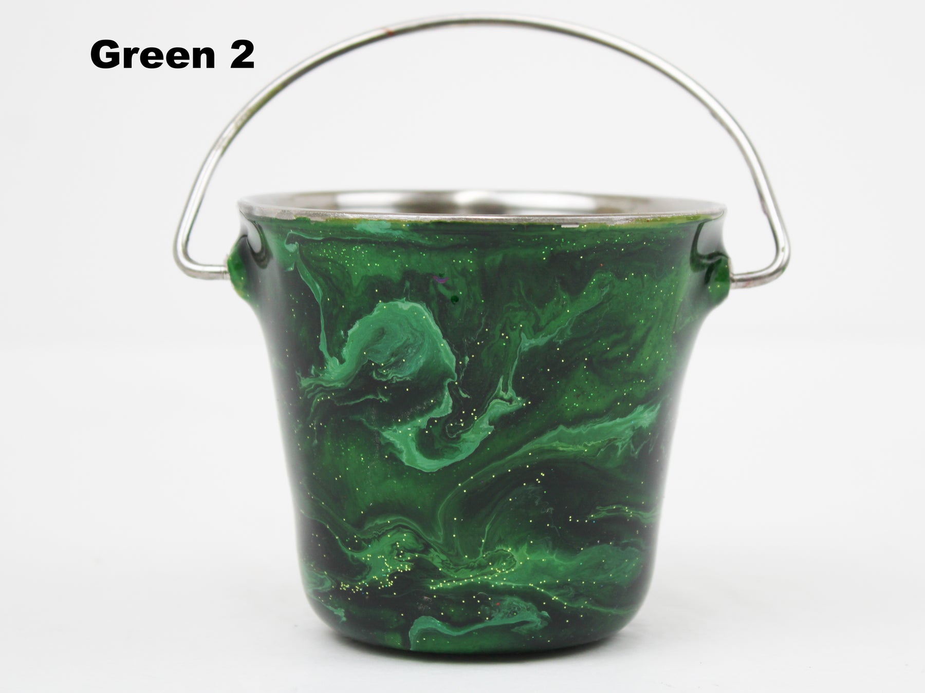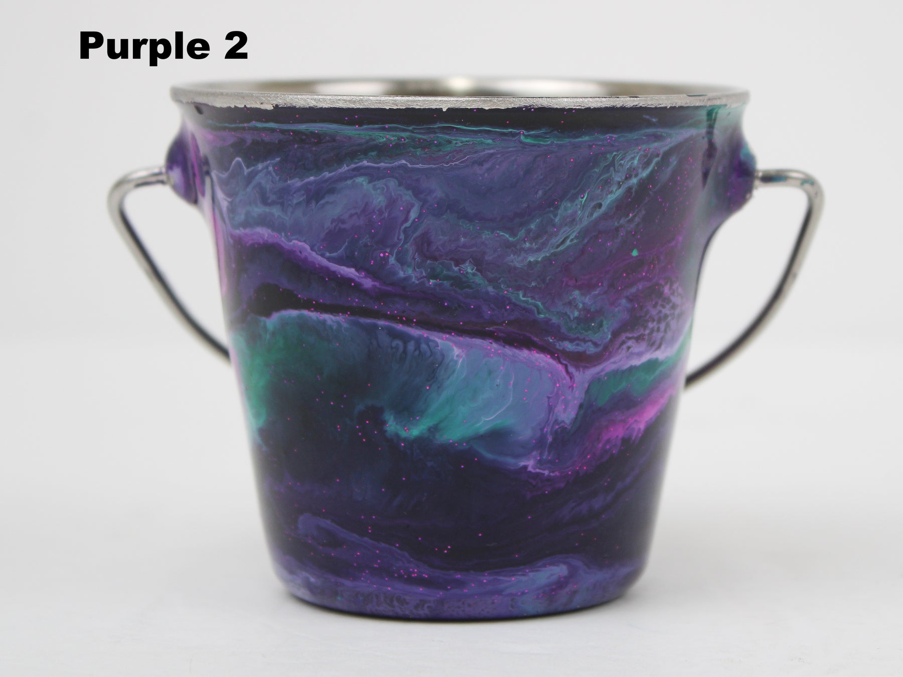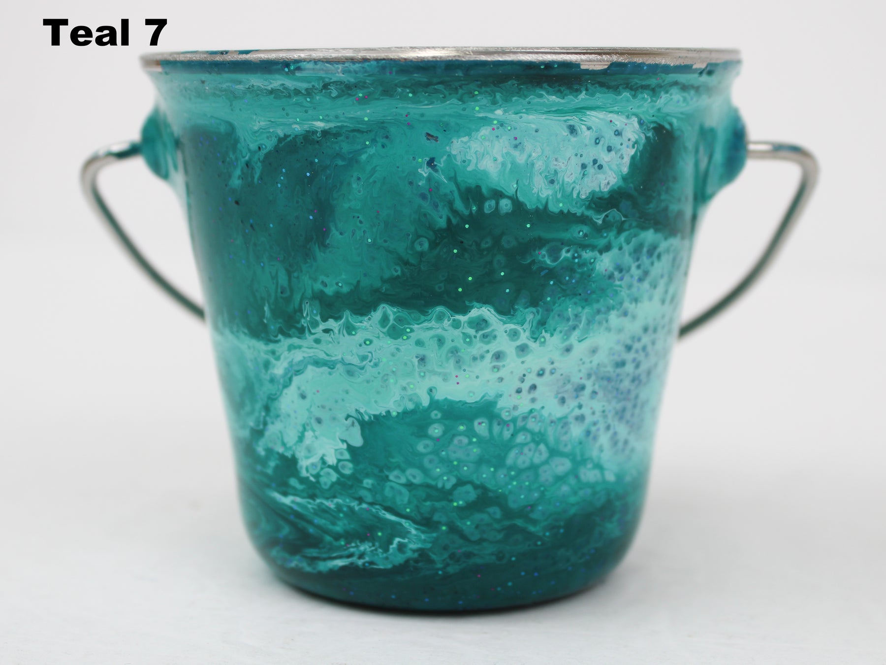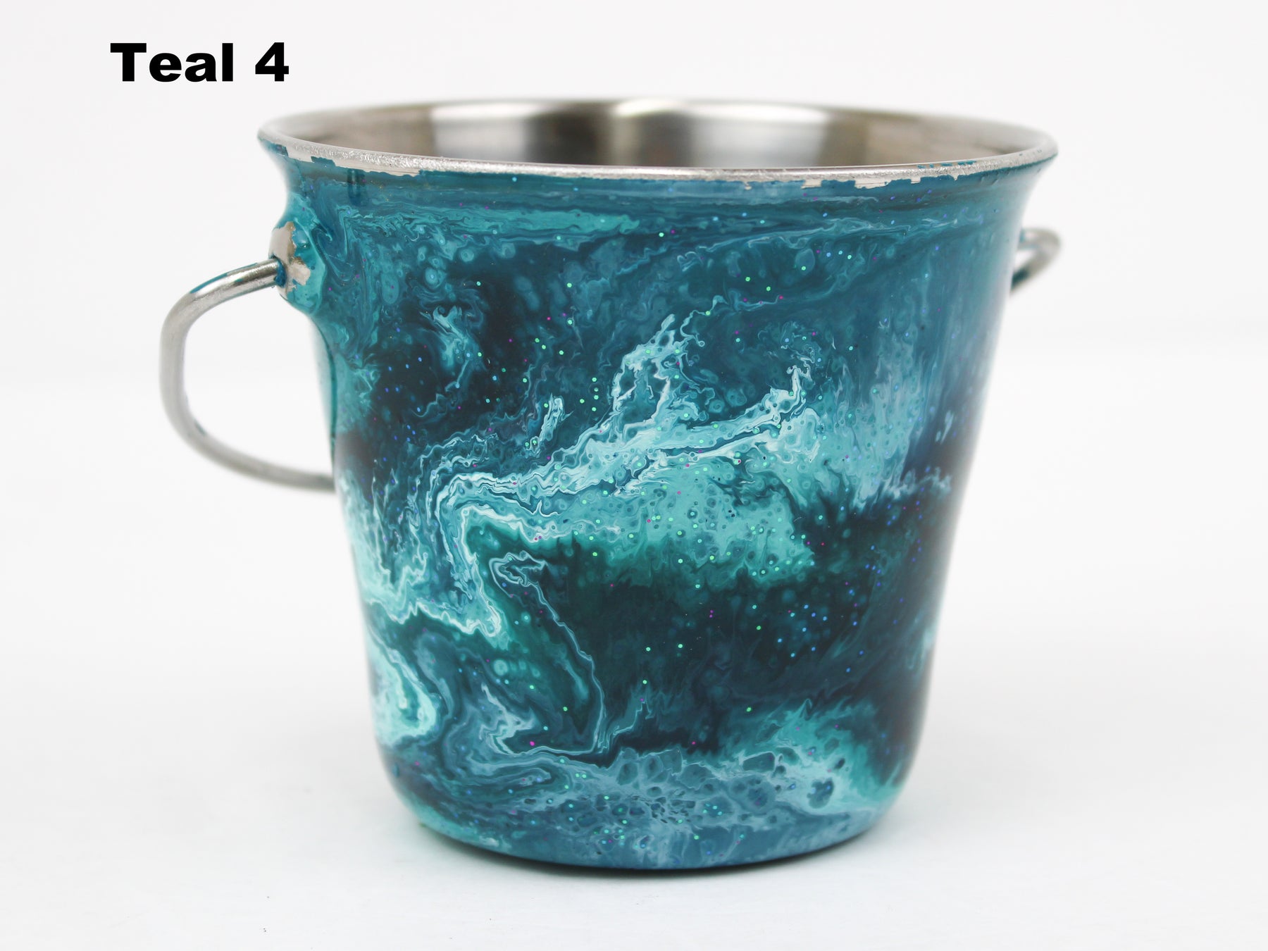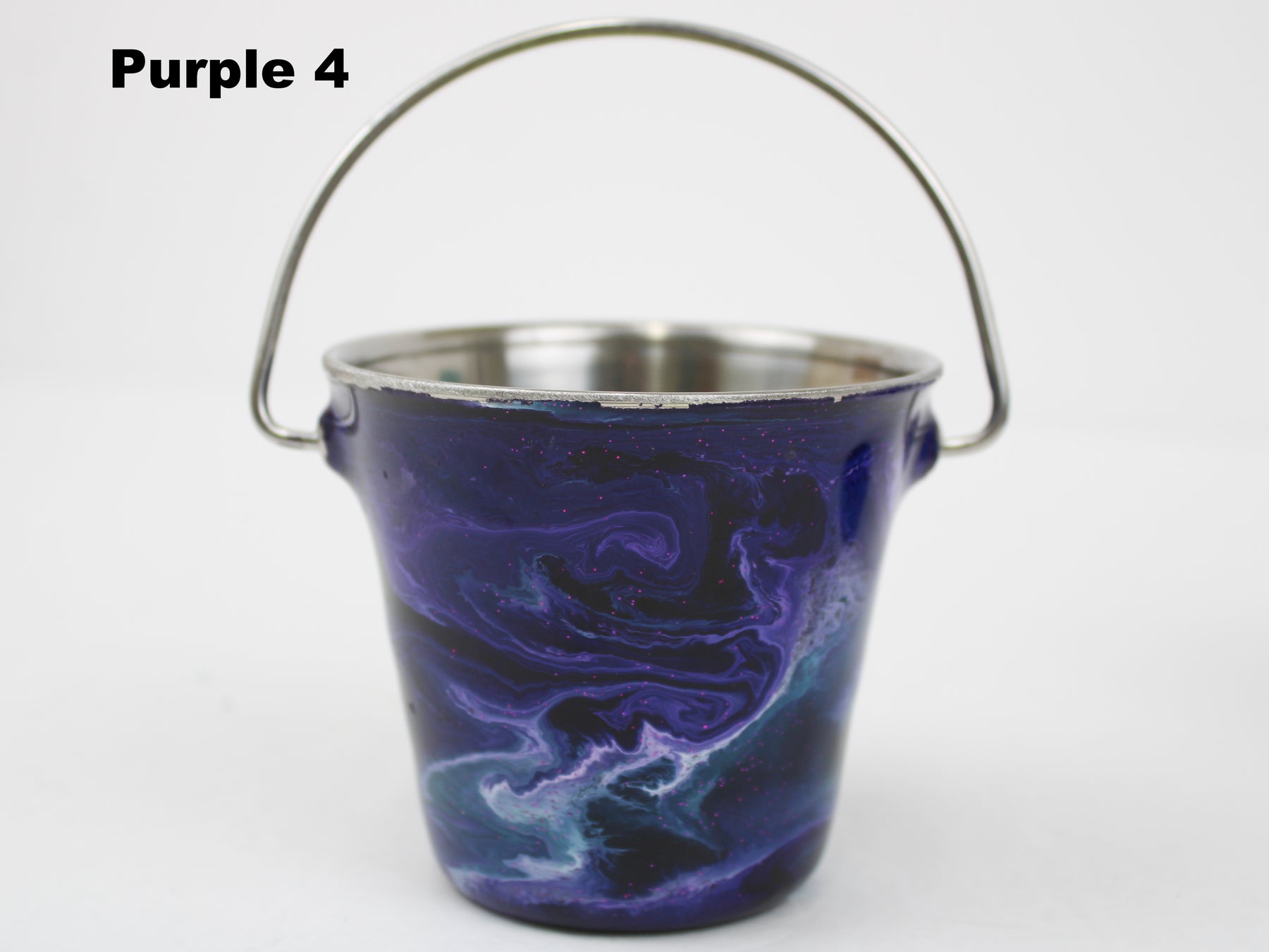 In stock Designer Water Buckets is handmade and truly one of a kind design, crafted with a durable epoxy finish that’s built to last. Created in Wisconsin by a retired veterinary technician, every item reflects skill, attention to detail, and a commitment to quality. To preserve its shine and longevity, each piece should be hand washed only.