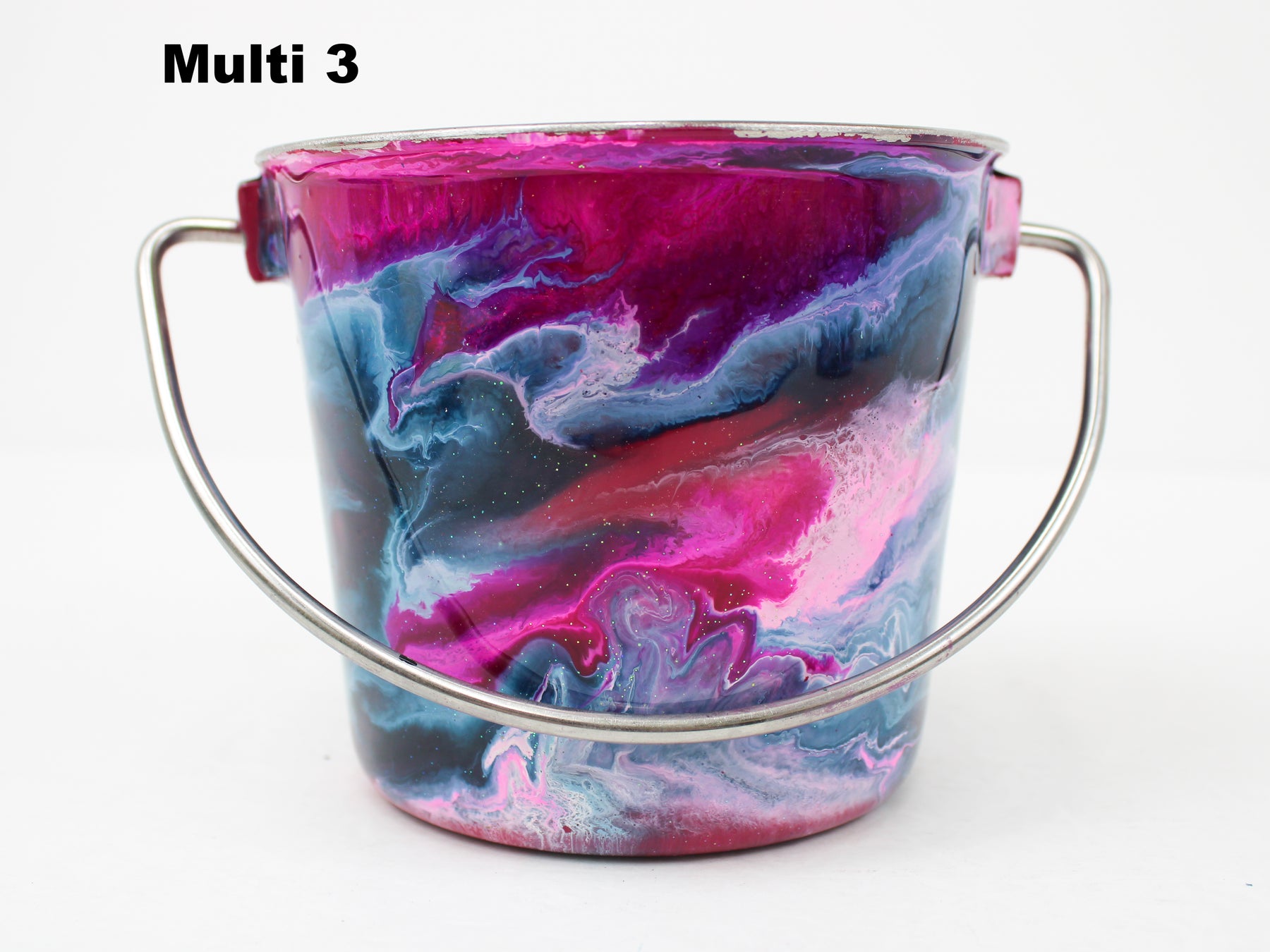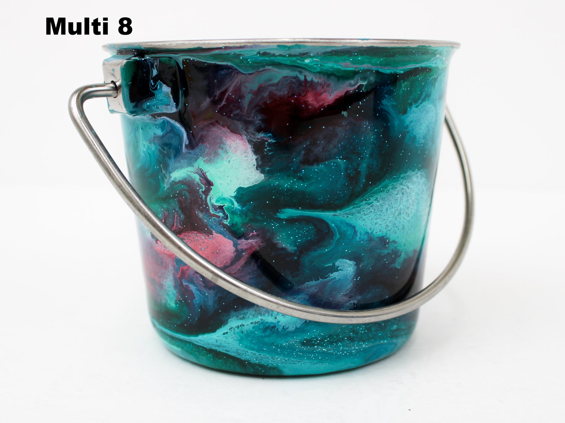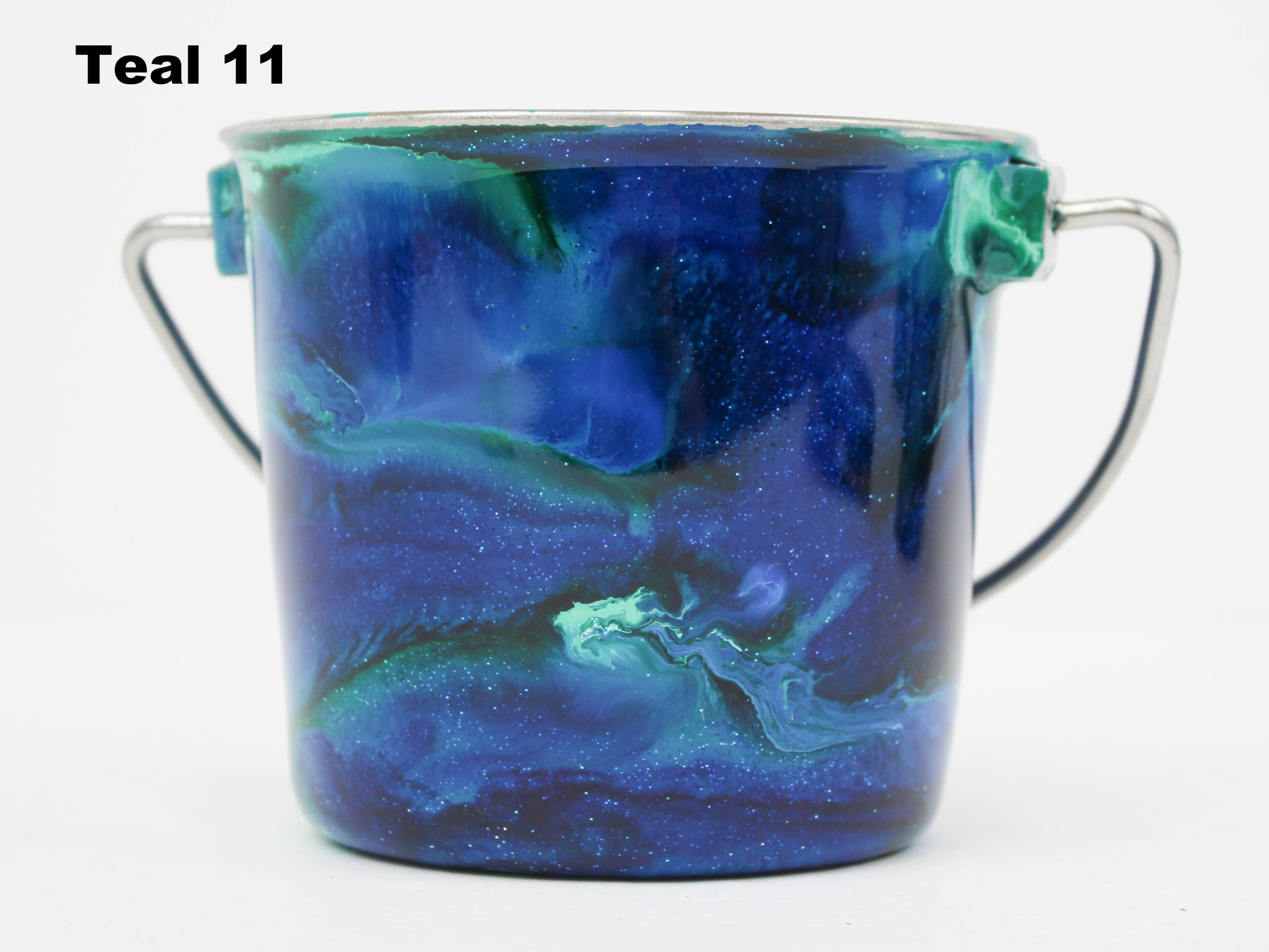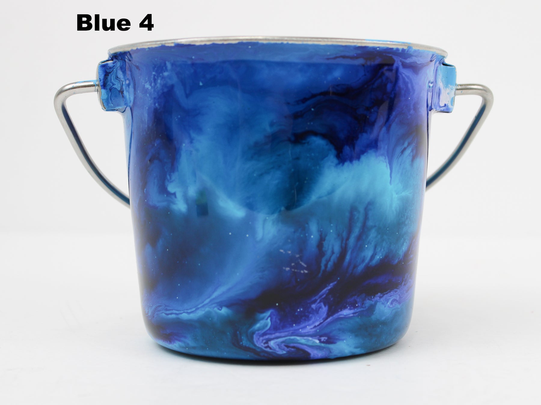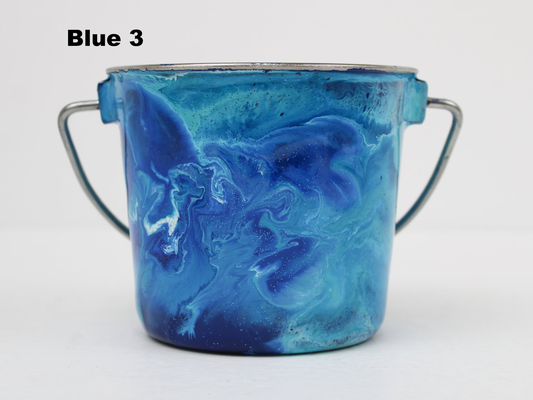 In stock Designer Water Buckets are handmade and each is truly a one of a kind design, crafted with a durable epoxy finish that’s built to last. Created in Wisconsin by a retired veterinary technician, every item reflects skill, attention to detail, and a commitment to quality. To preserve its shine and longevity, each piece should be hand washed only.