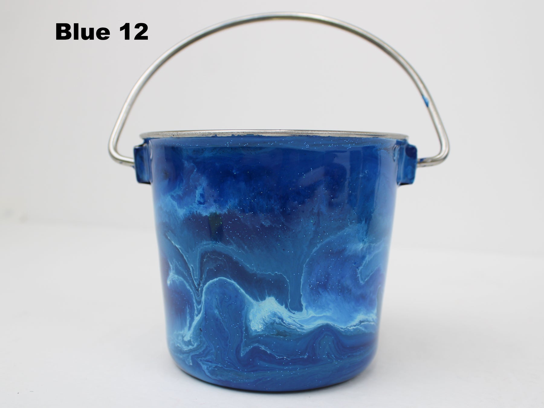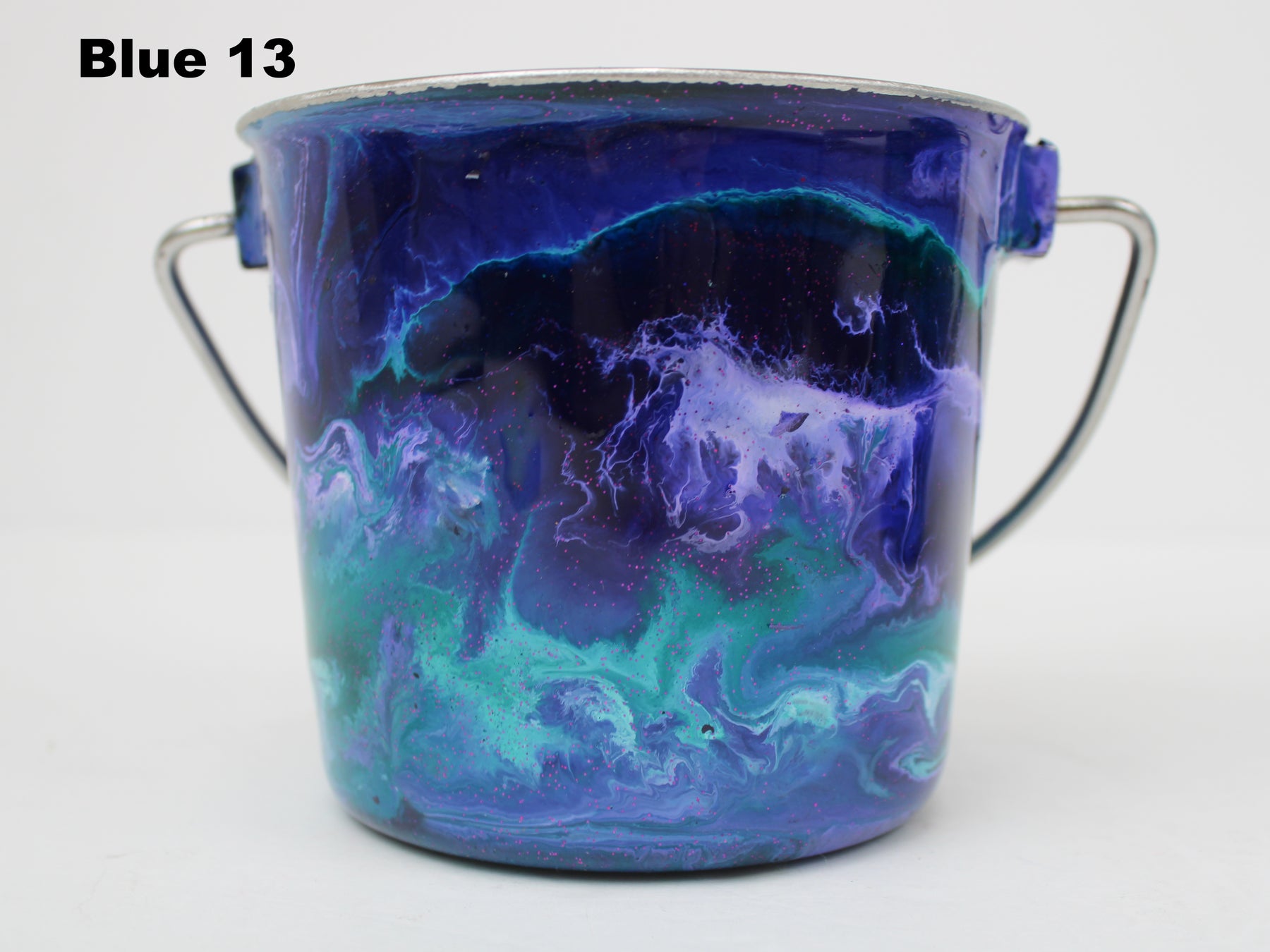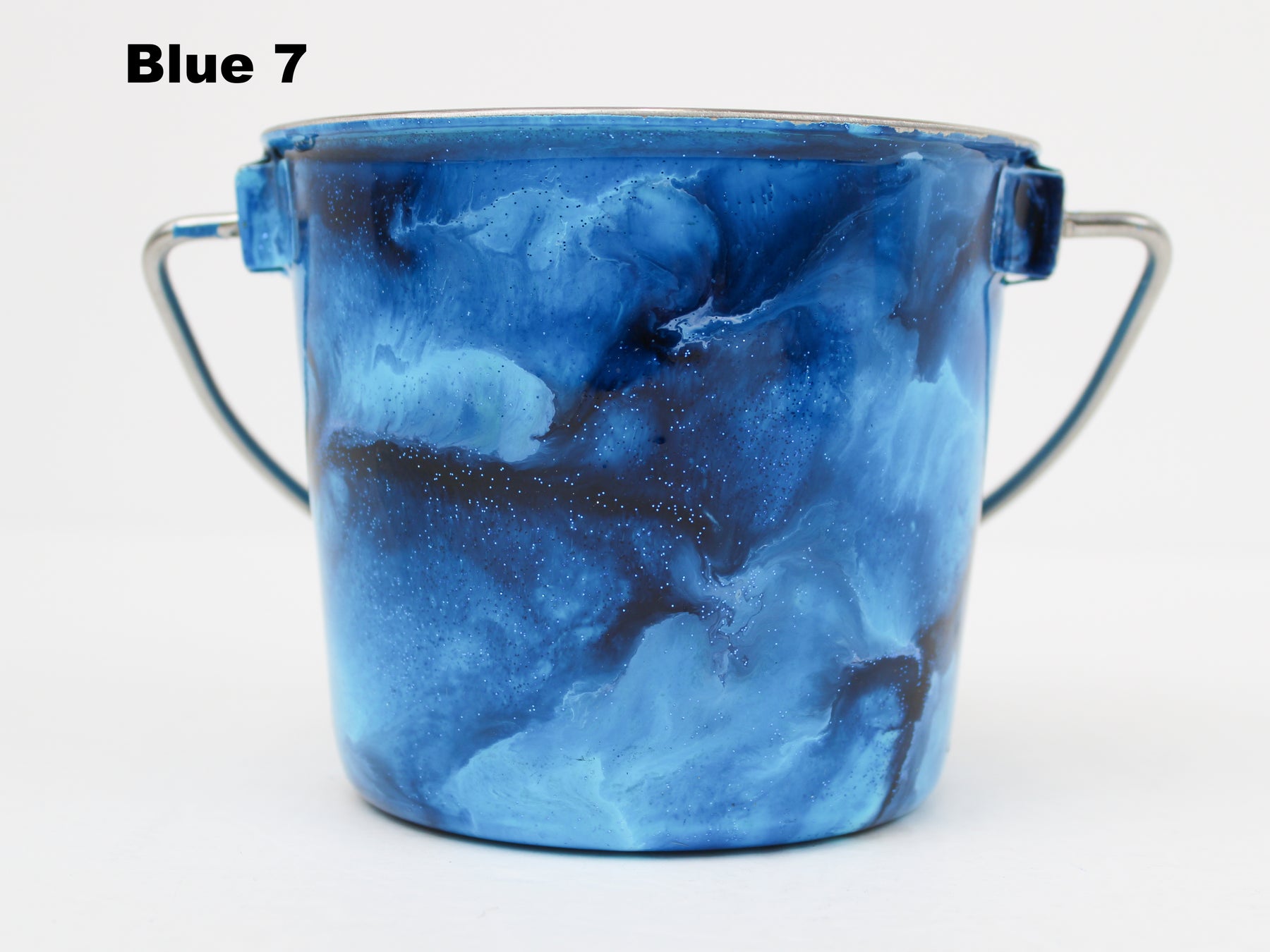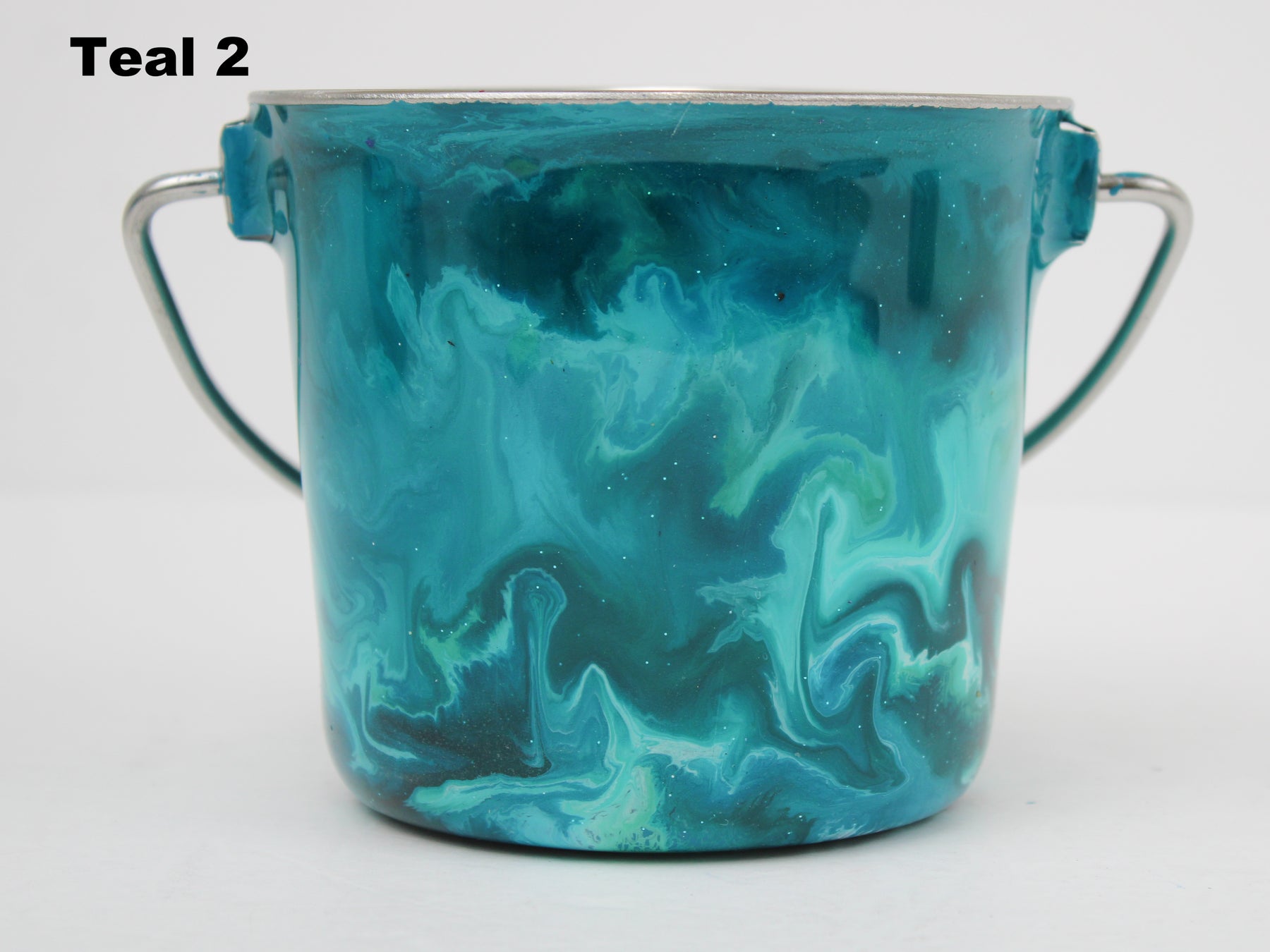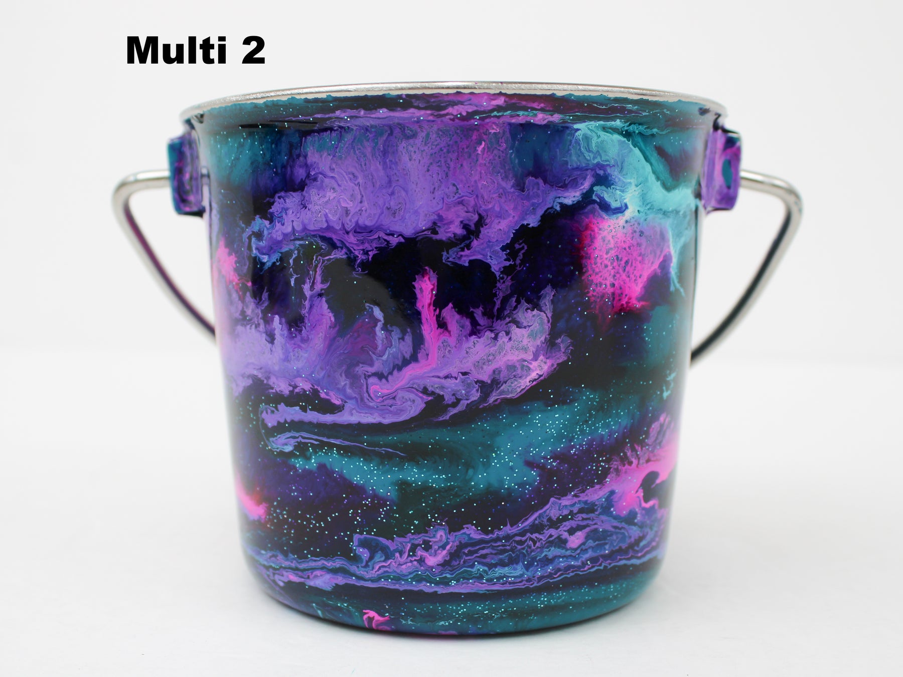 In stock Designer Water Buckets are handmade and each is truly a one of a kind design, crafted with a durable epoxy finish that’s built to last. Created in Wisconsin by a retired veterinary technician, every item reflects skill, attention to detail, and a commitment to quality. To preserve its shine and longevity, each piece should be hand washed only.
