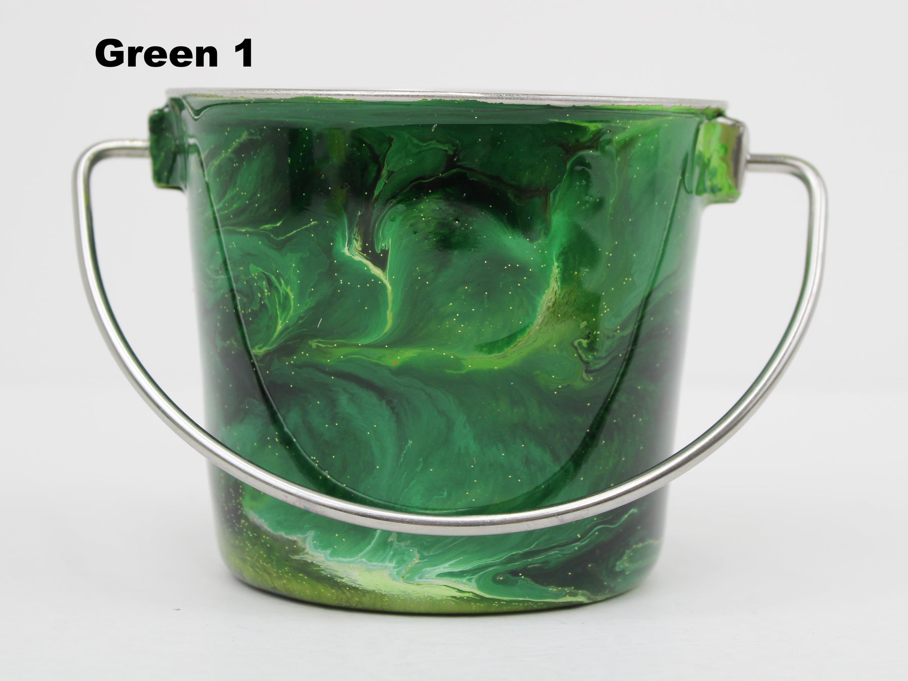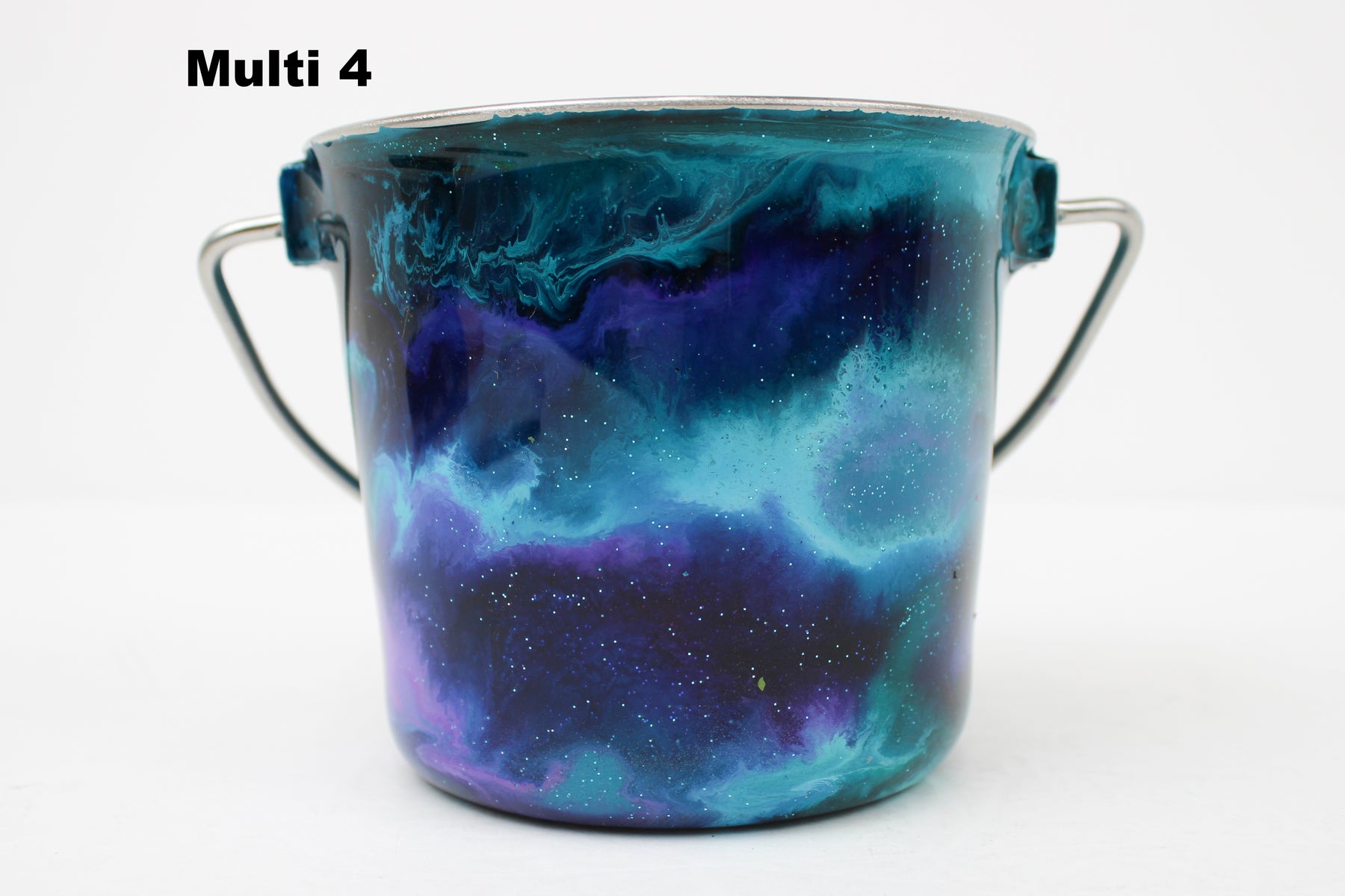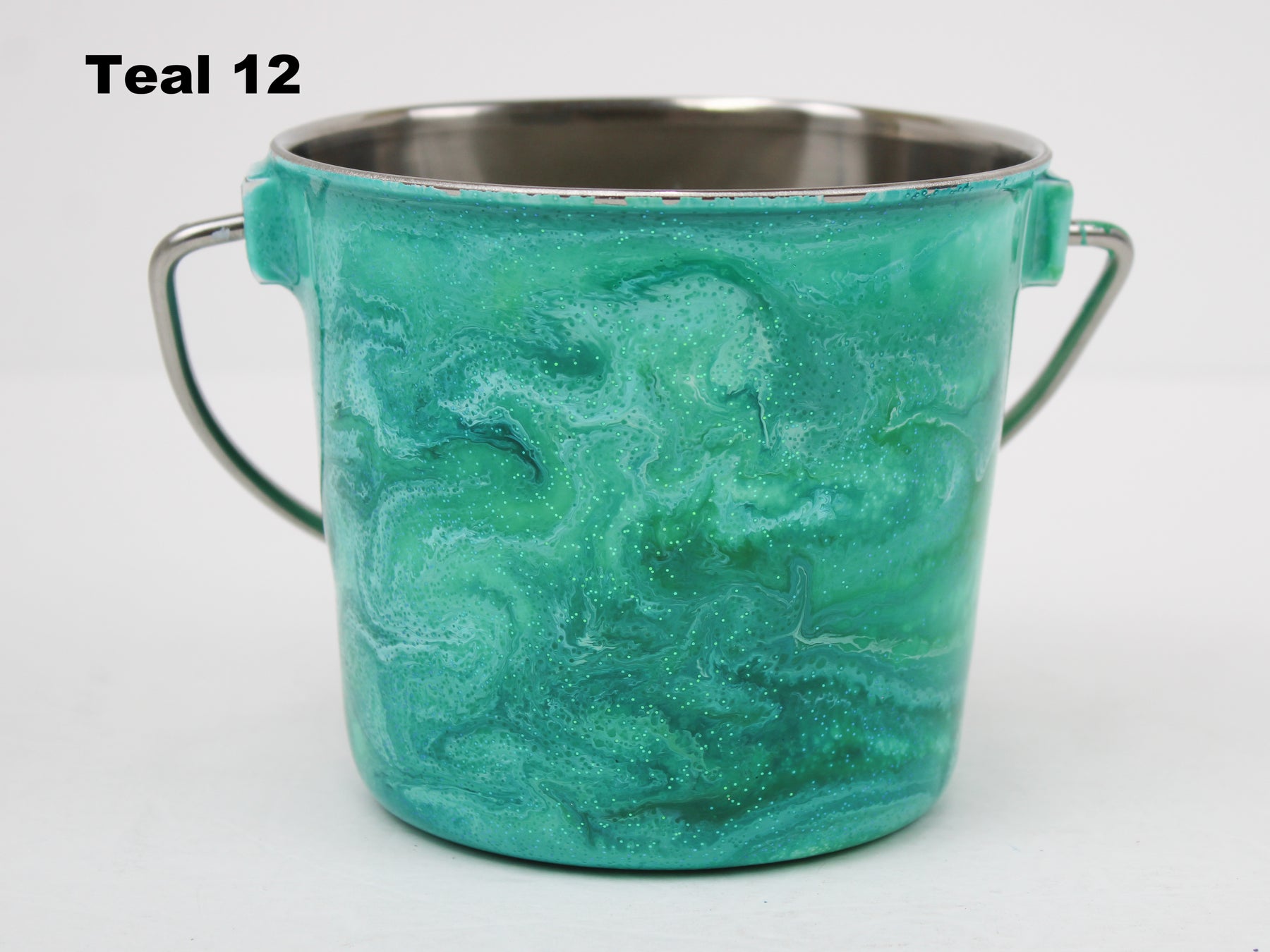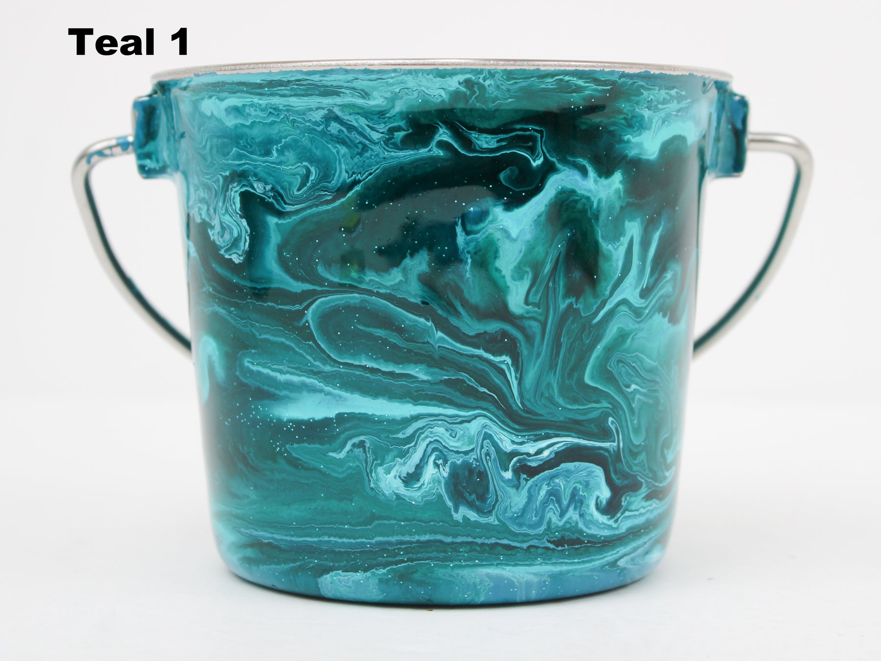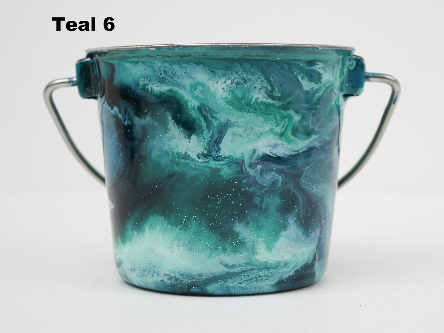 In stock Designer Water Buckets are handmade and each is truly a one of a kind design, crafted with a durable epoxy finish that’s built to last. Created in Wisconsin by a retired veterinary technician, every item reflects skill, attention to detail, and a commitment to quality. To preserve its shine and longevity, each piece should be hand washed only.