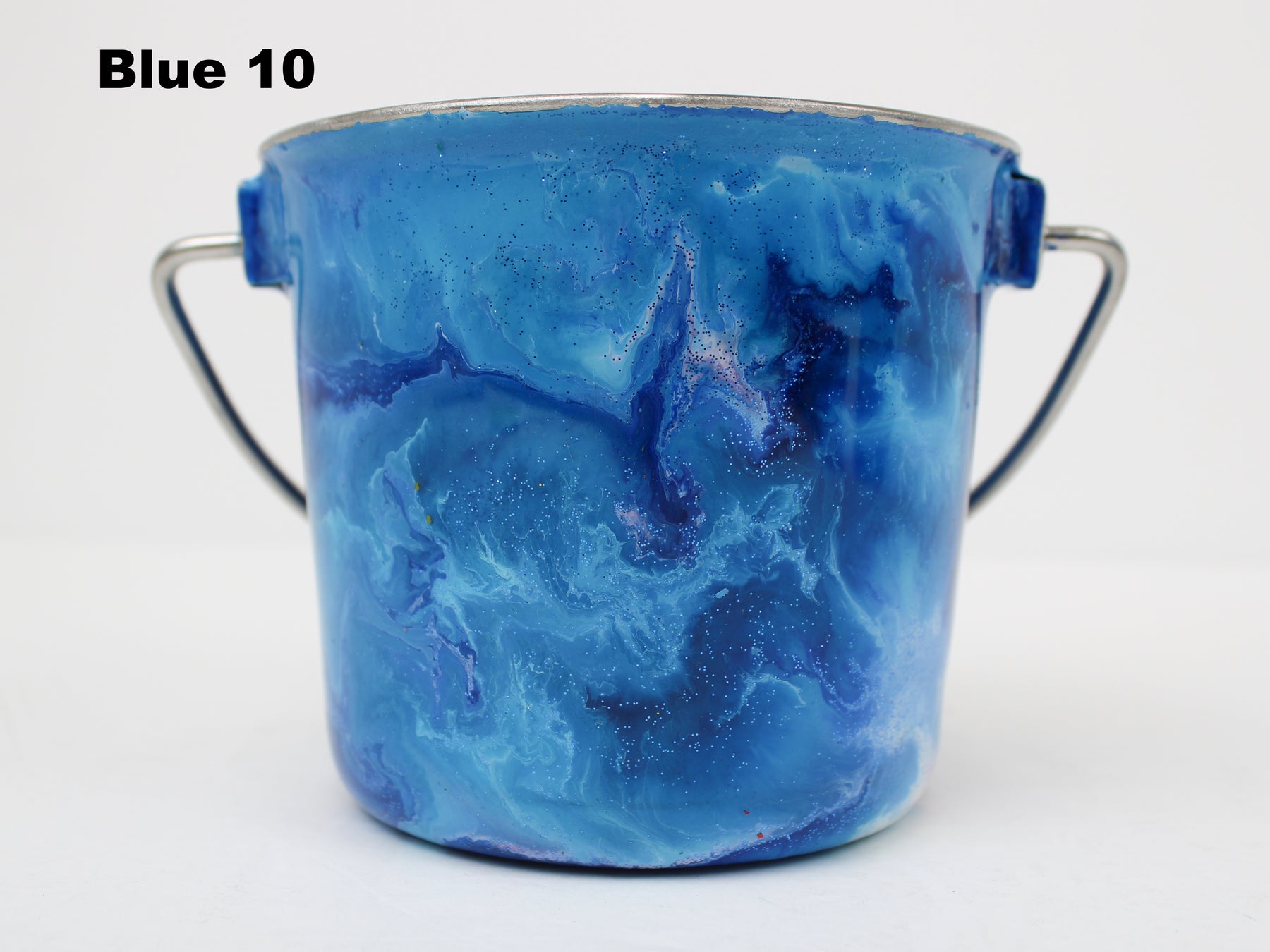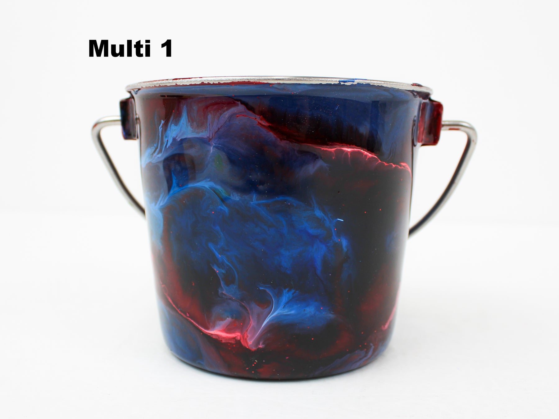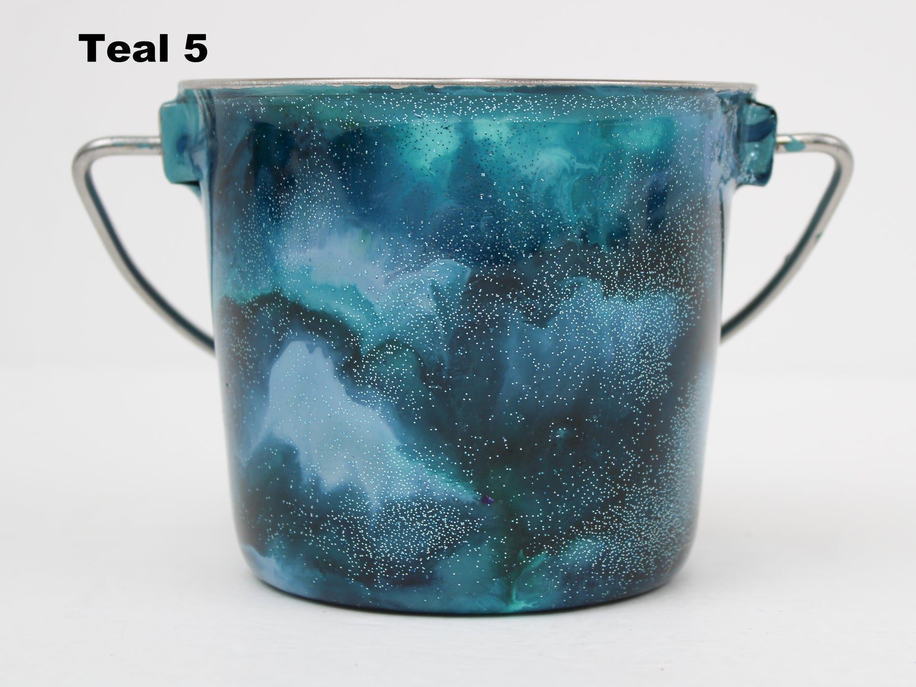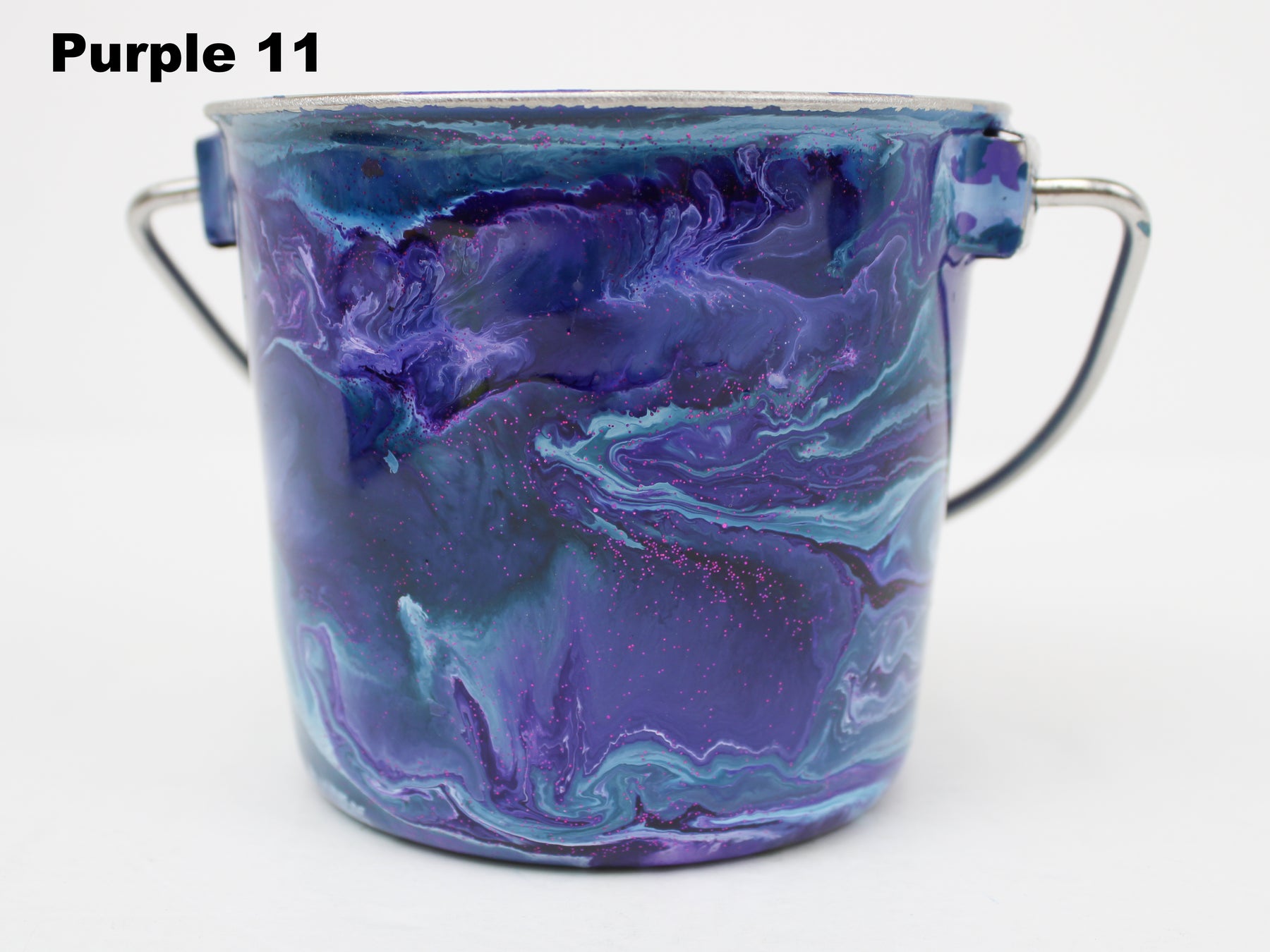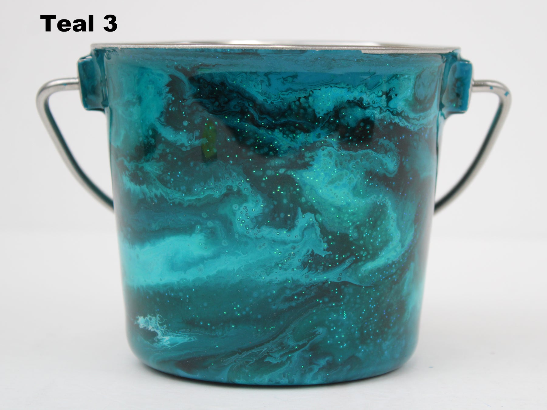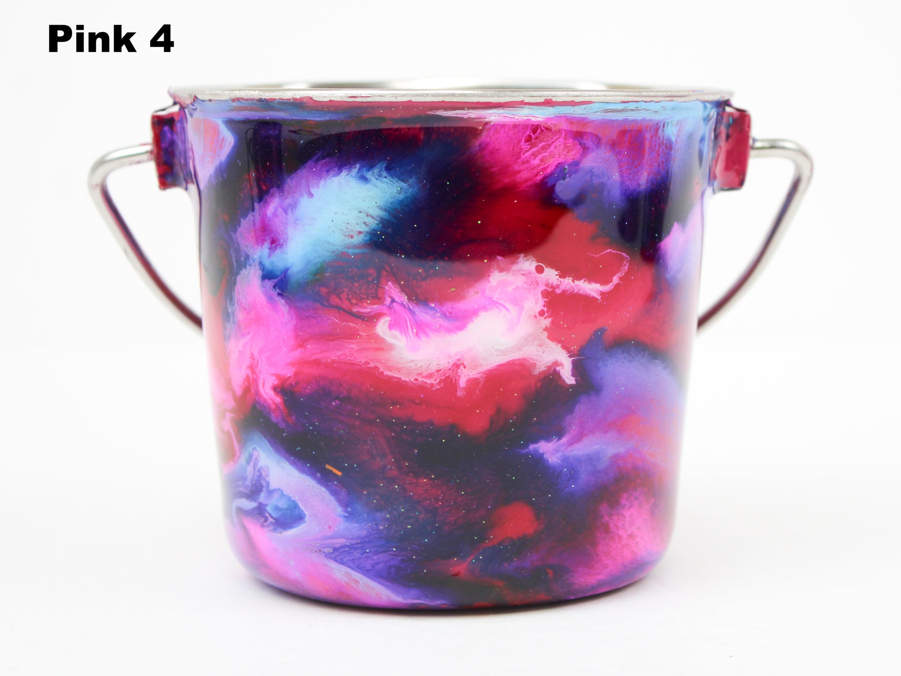 In stock Designer Water Buckets are handmade and each is truly a one of a kind design, crafted with a durable epoxy finish that’s built to last. Created in Wisconsin by a retired veterinary technician, every item reflects skill, attention to detail, and a commitment to quality. To preserve its shine and longevity, each piece should be hand washed only.