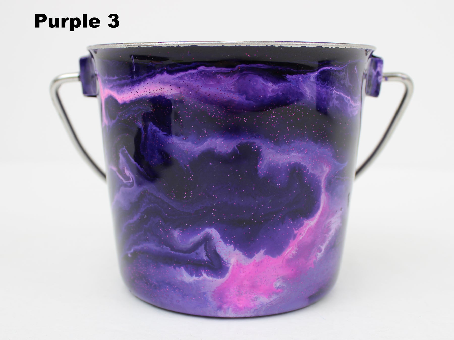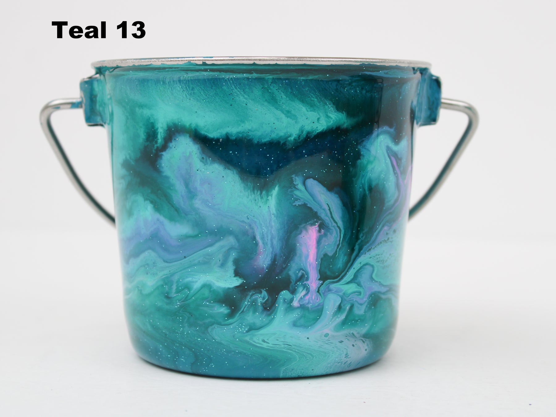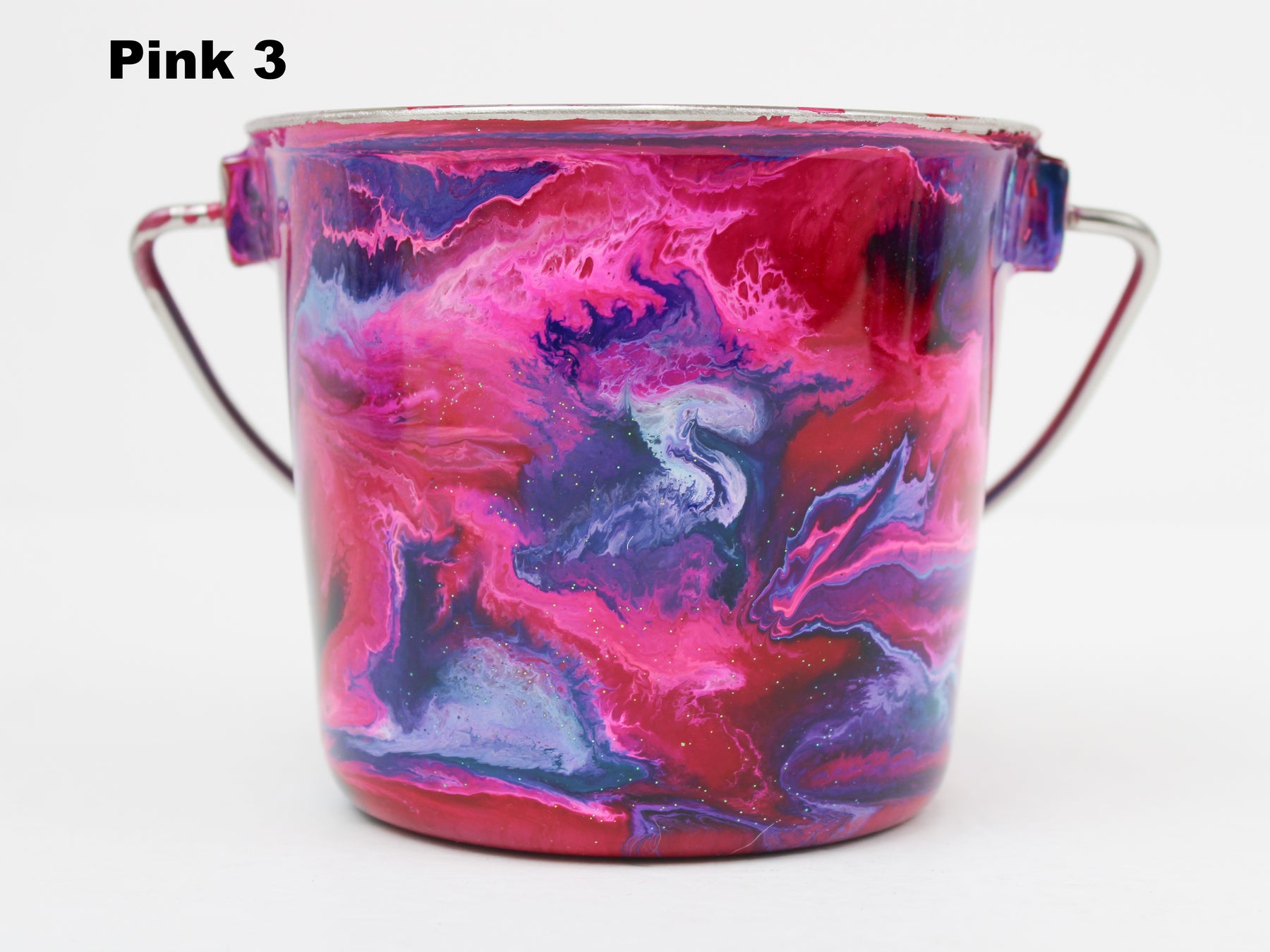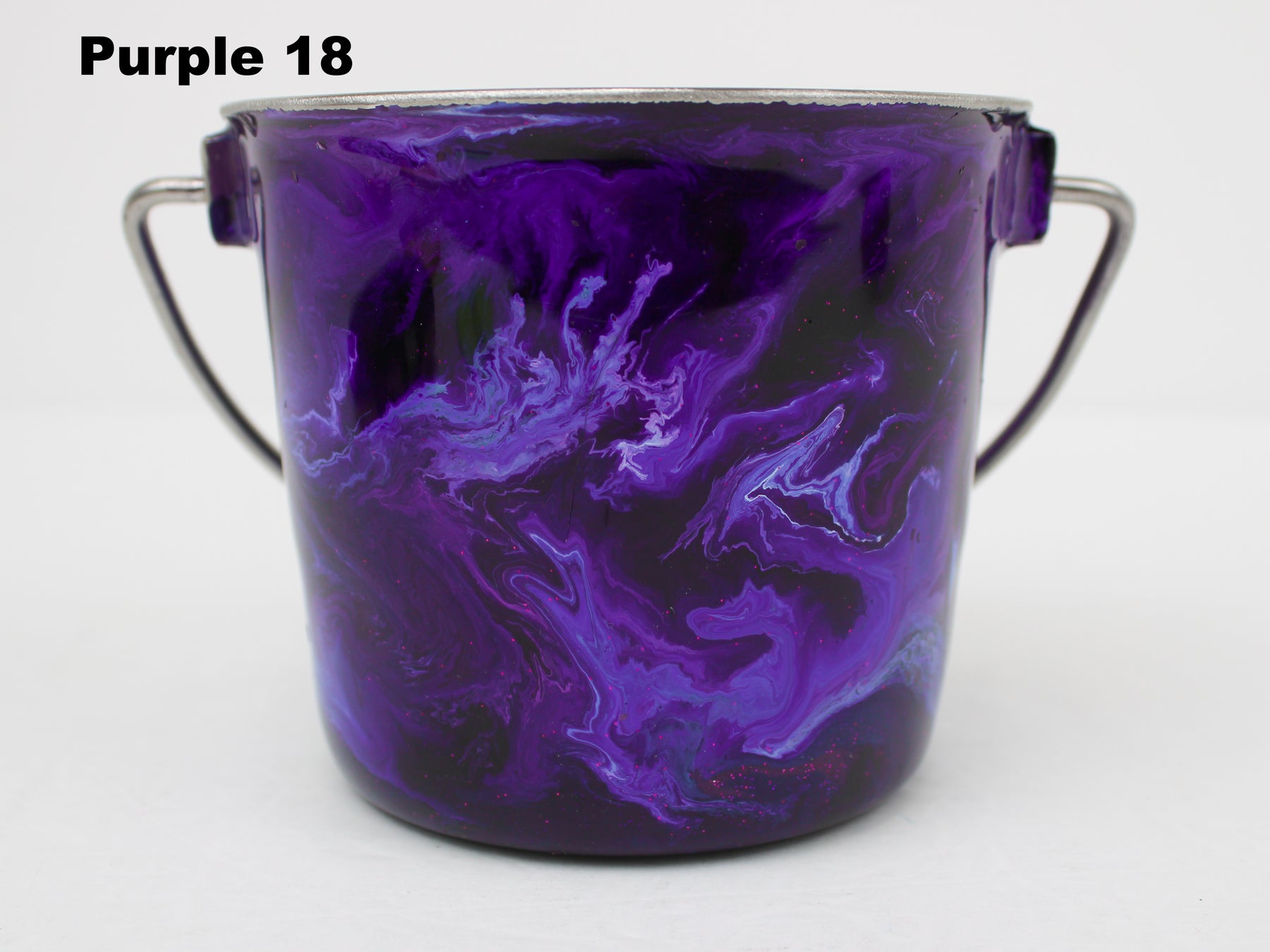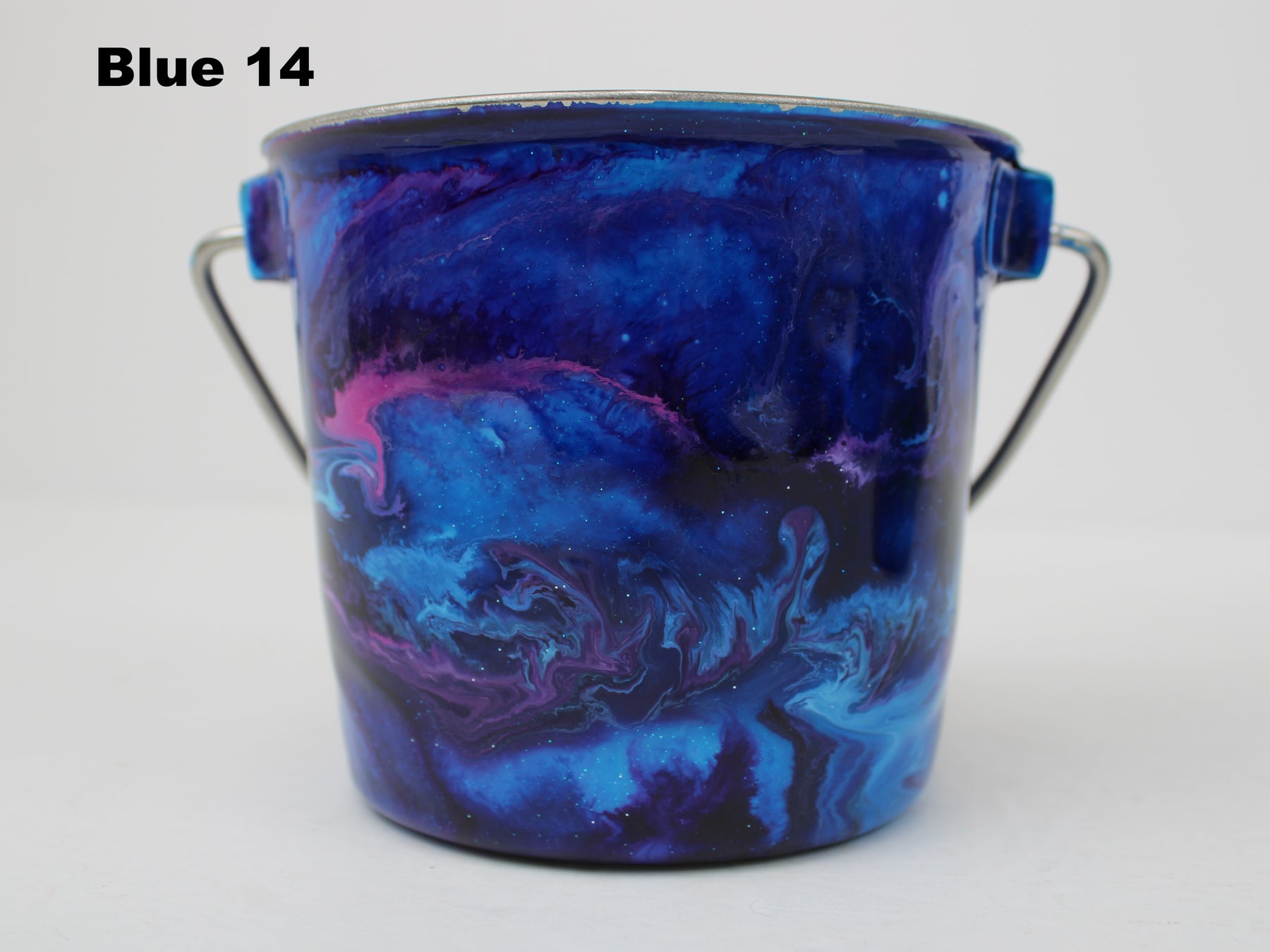In stock Designer Water Buckets are handmade and each is truly a one of a kind design, crafted with a durable epoxy finish that’s built to last. Created in Wisconsin by a retired veterinary technician, every item reflects skill, attention to detail, and a commitment to quality. To preserve its shine and longevity, each piece should be hand washed only.