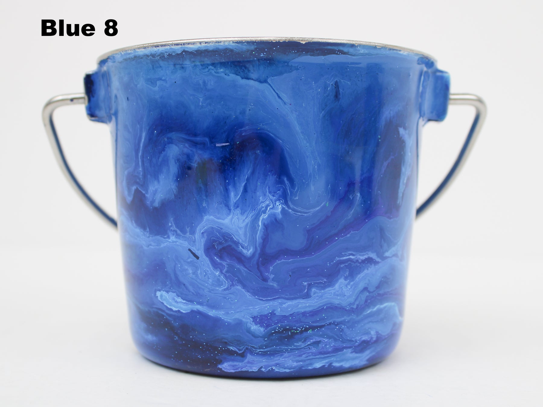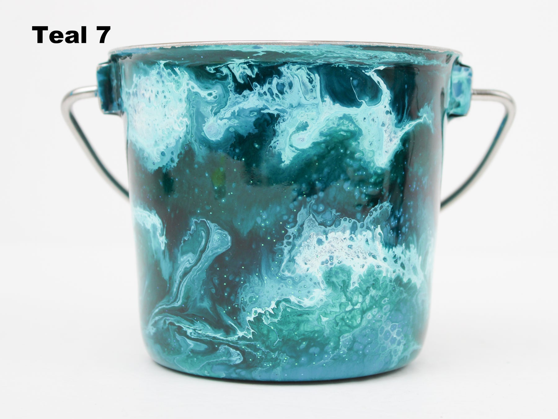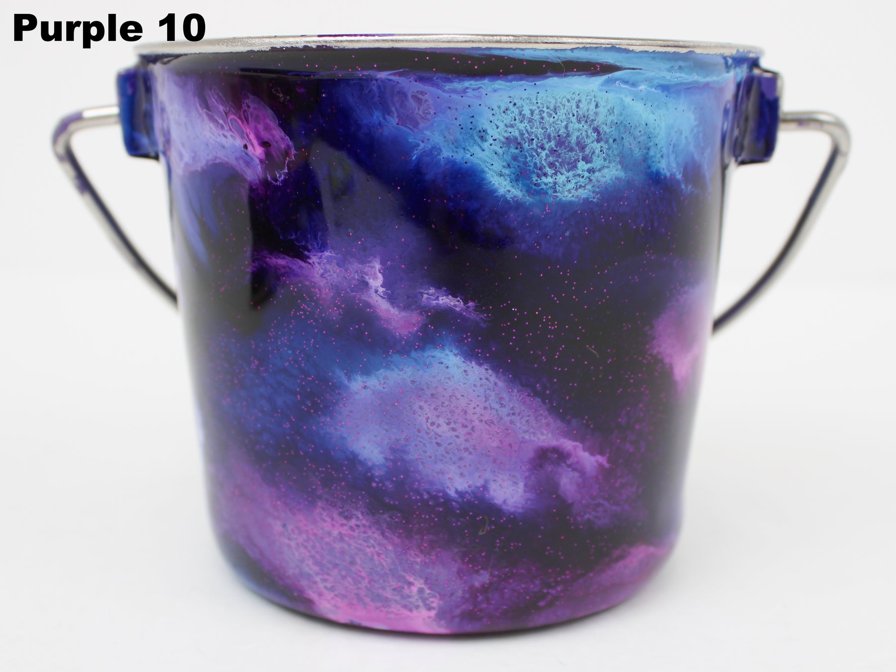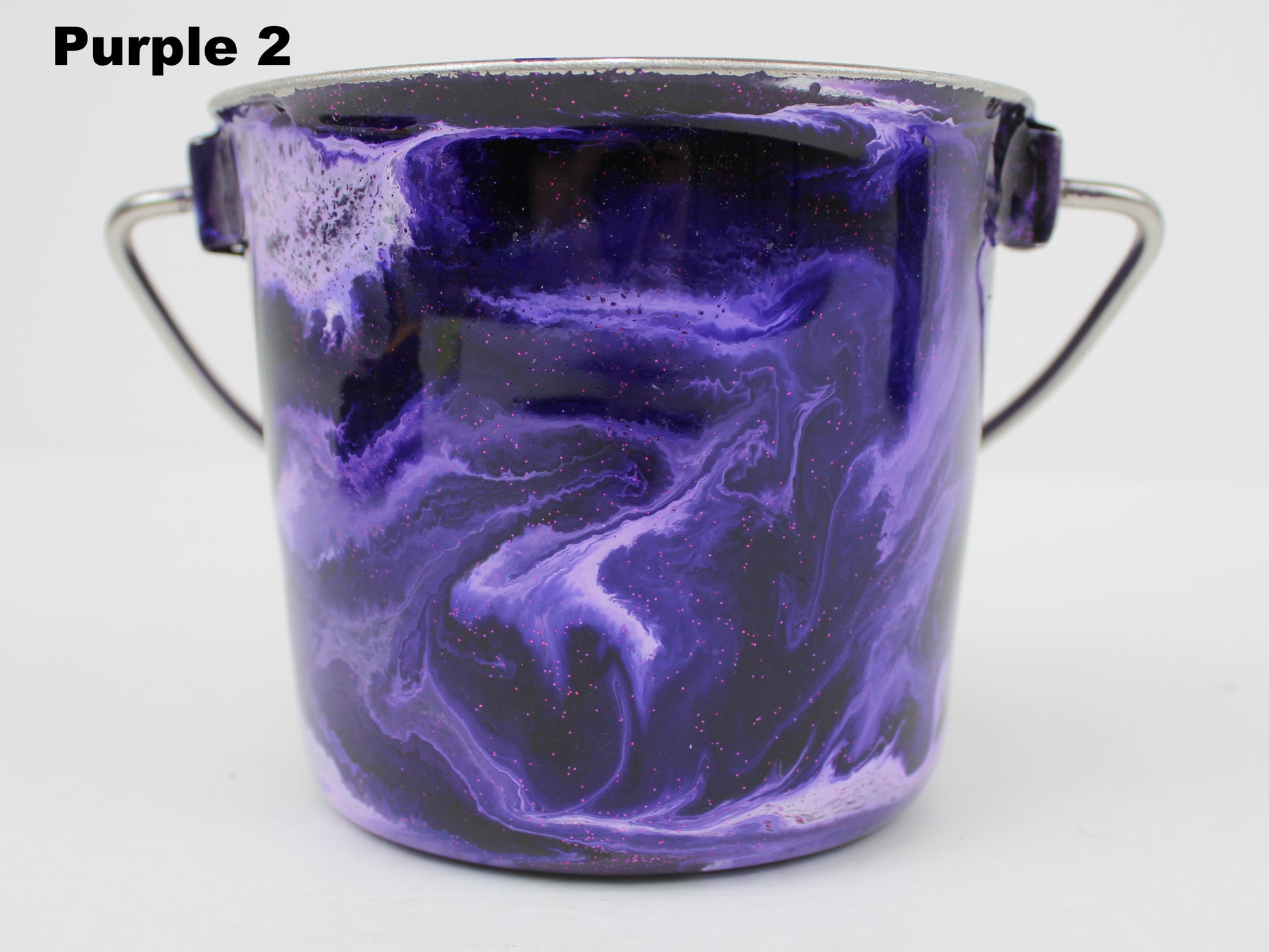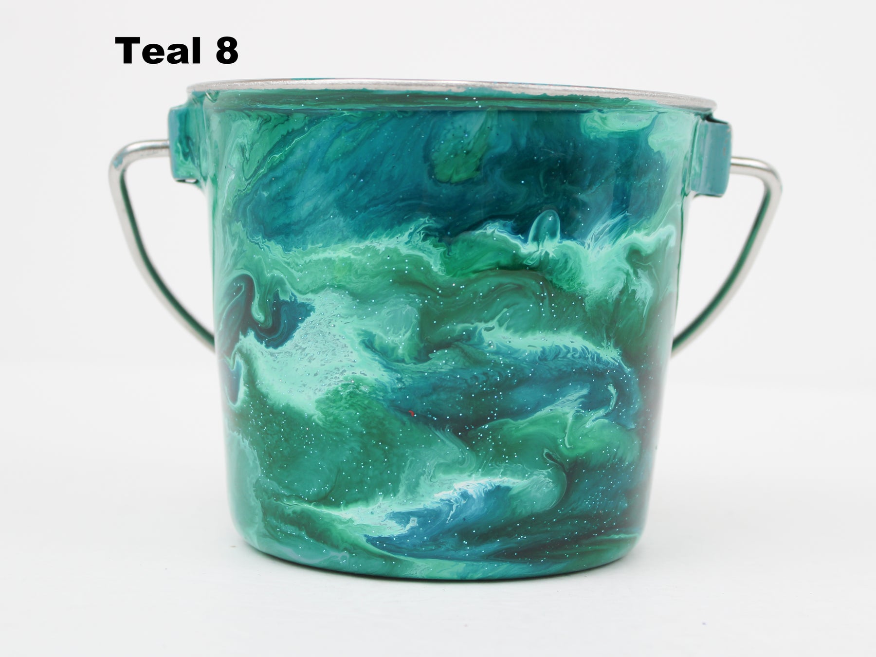In stock Designer Water Buckets are handmade and each is truly a one of a kind design, crafted with a durable epoxy finish that’s built to last. Created in Wisconsin by a retired veterinary technician, every item reflects skill, attention to detail, and a commitment to quality. To preserve its shine and longevity, each piece should be hand washed only.