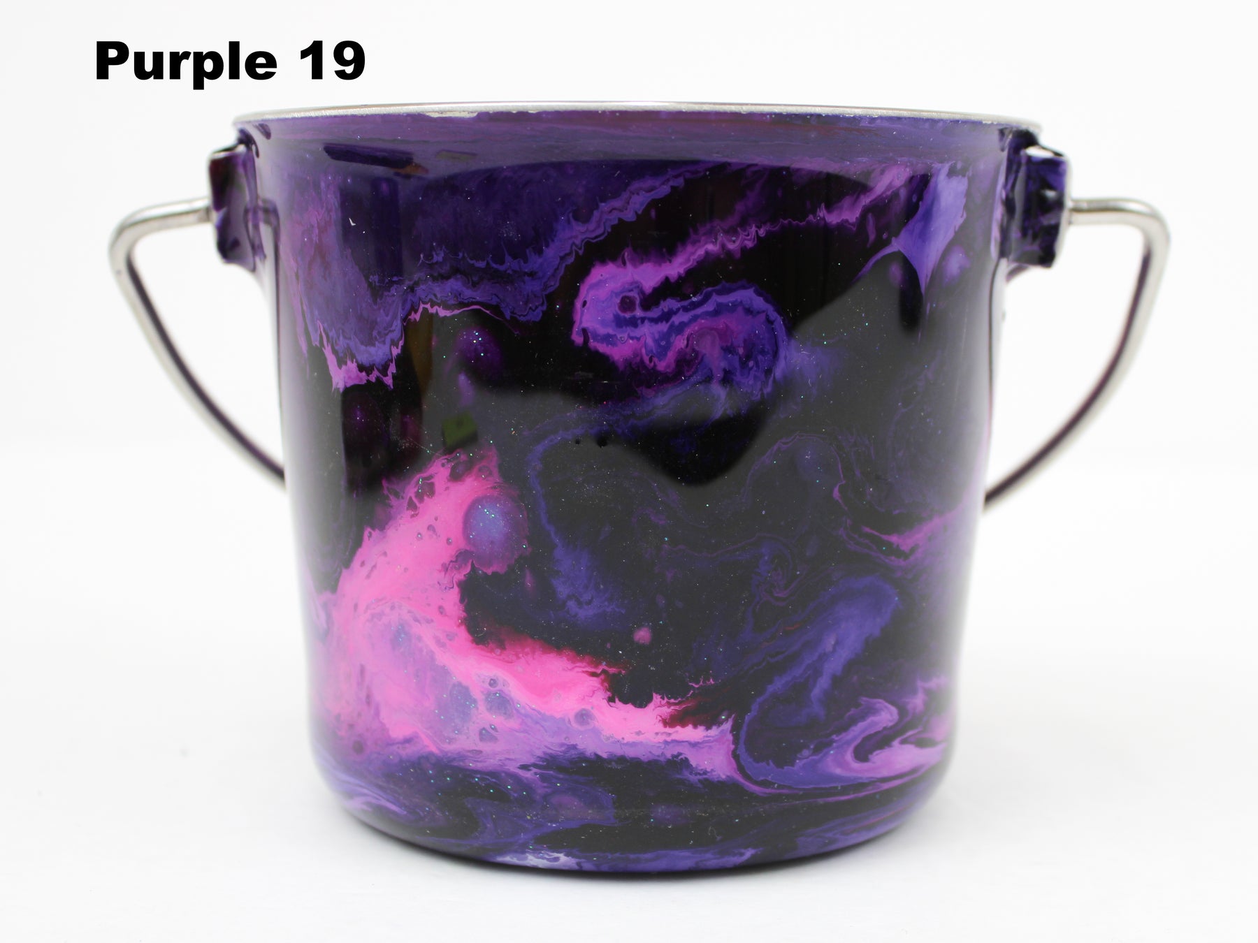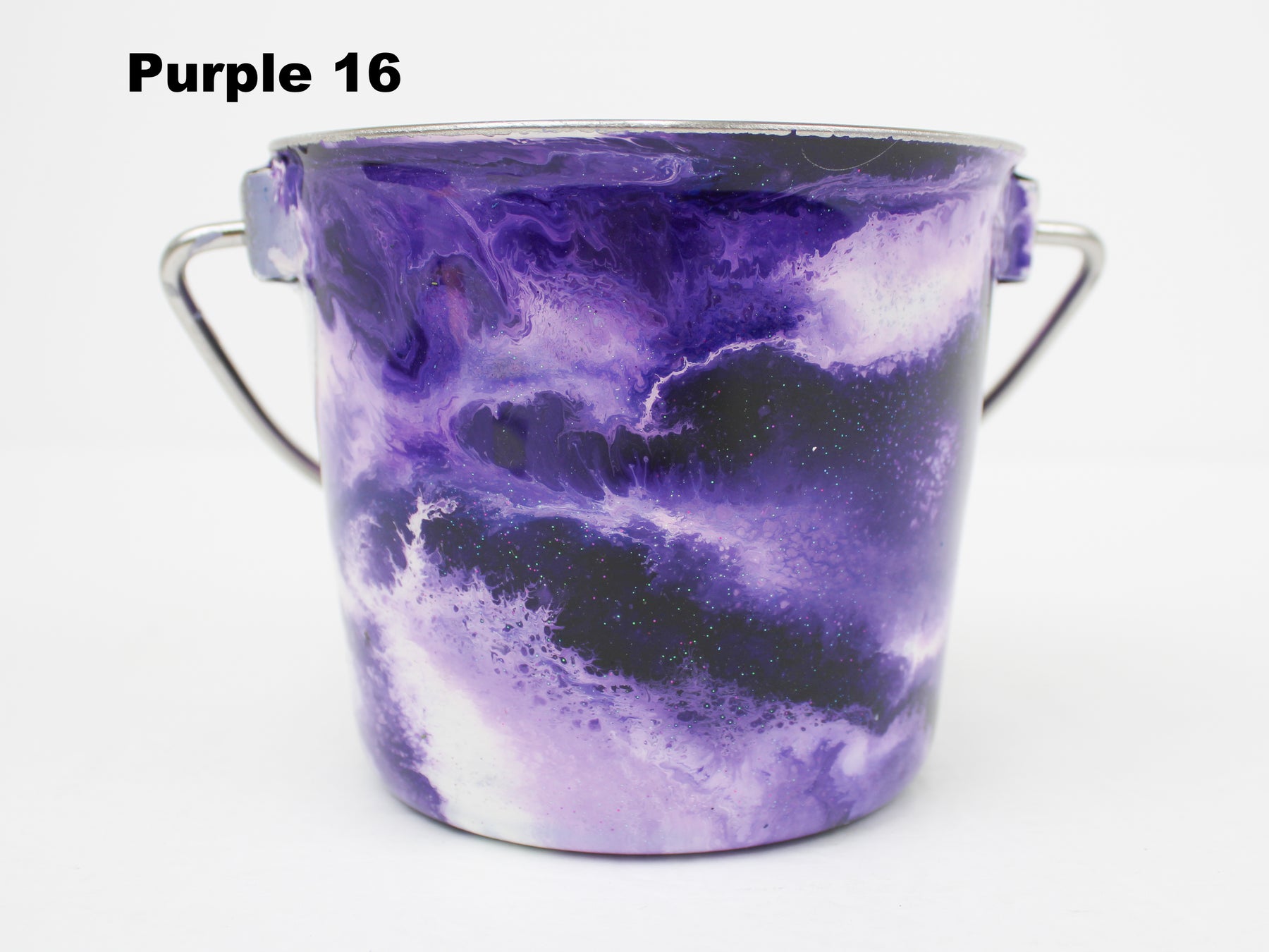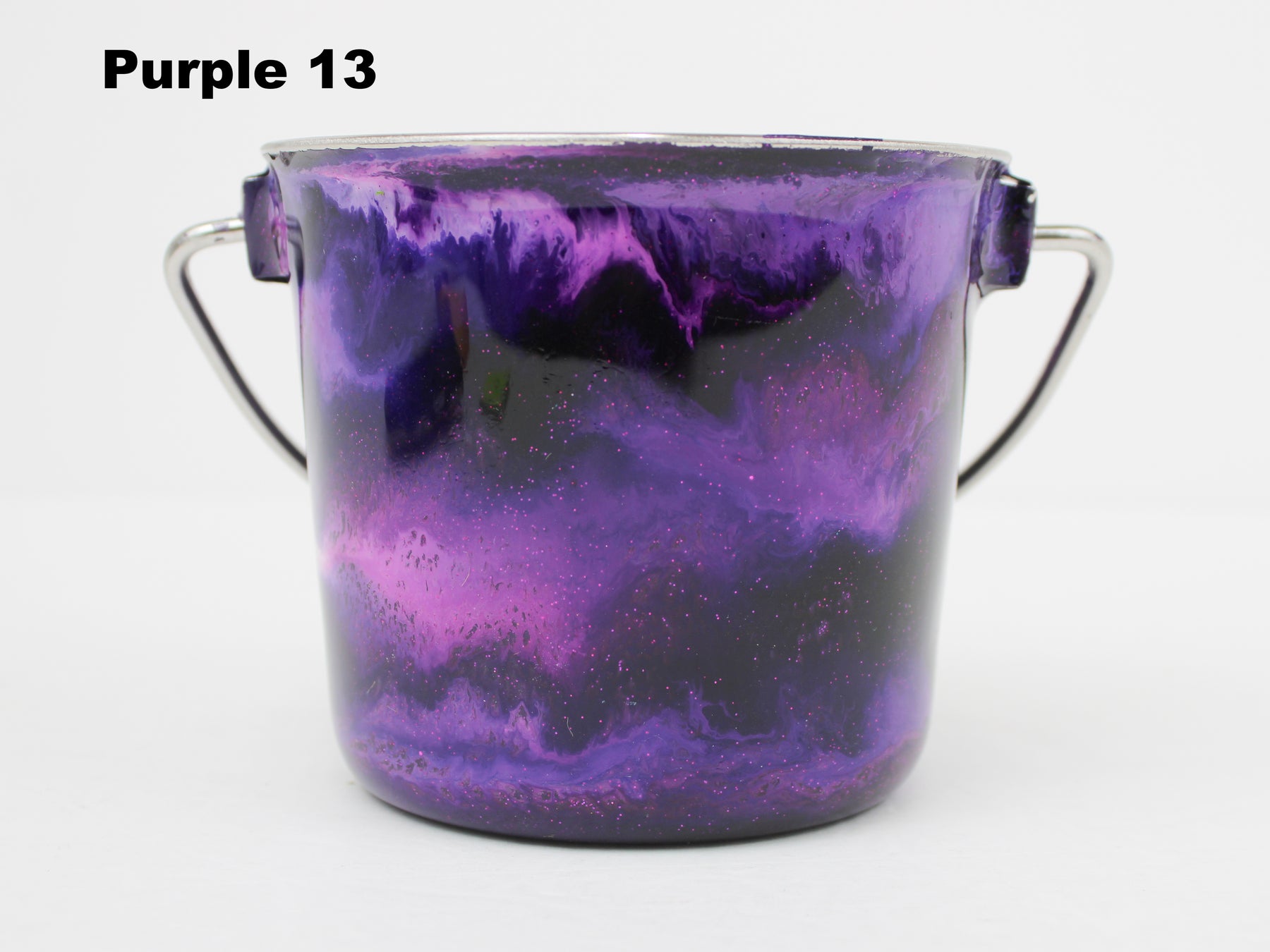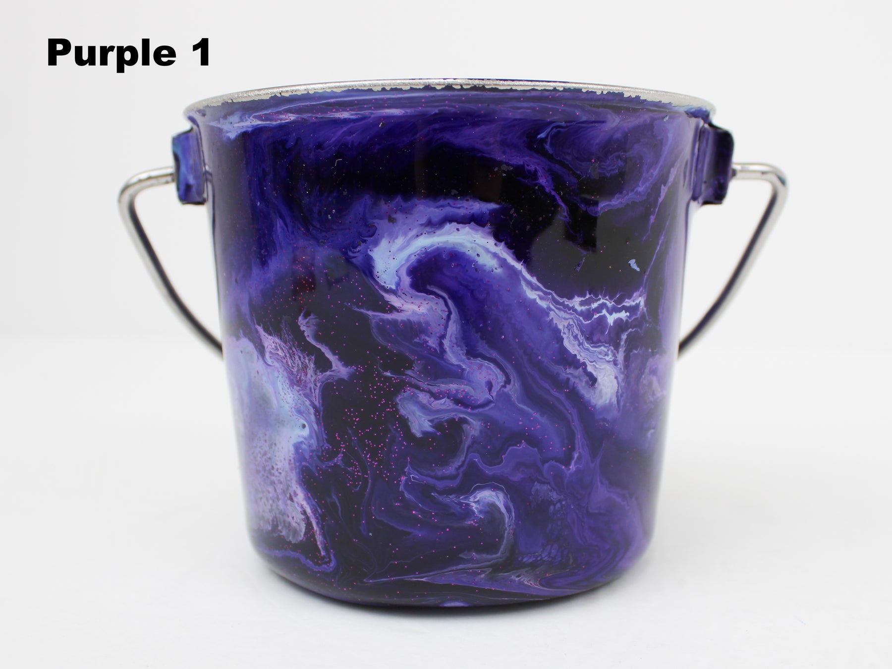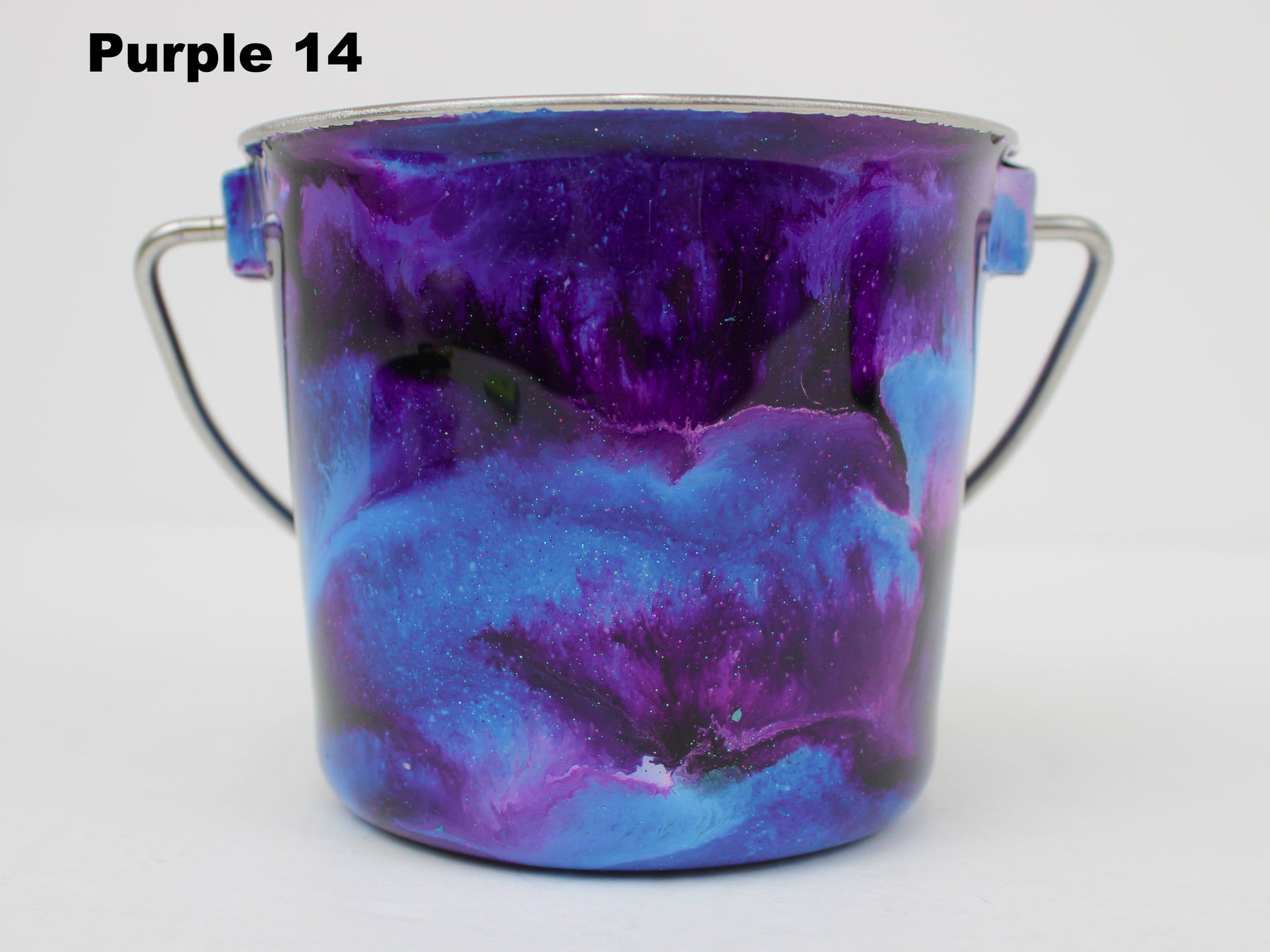 In stock Designer Water Buckets are handmade and each is truly a one of a kind design, crafted with a durable epoxy finish that’s built to last. Created in Wisconsin by a retired veterinary technician, every item reflects skill, attention to detail, and a commitment to quality. To preserve its shine and longevity, each piece should be hand washed only.