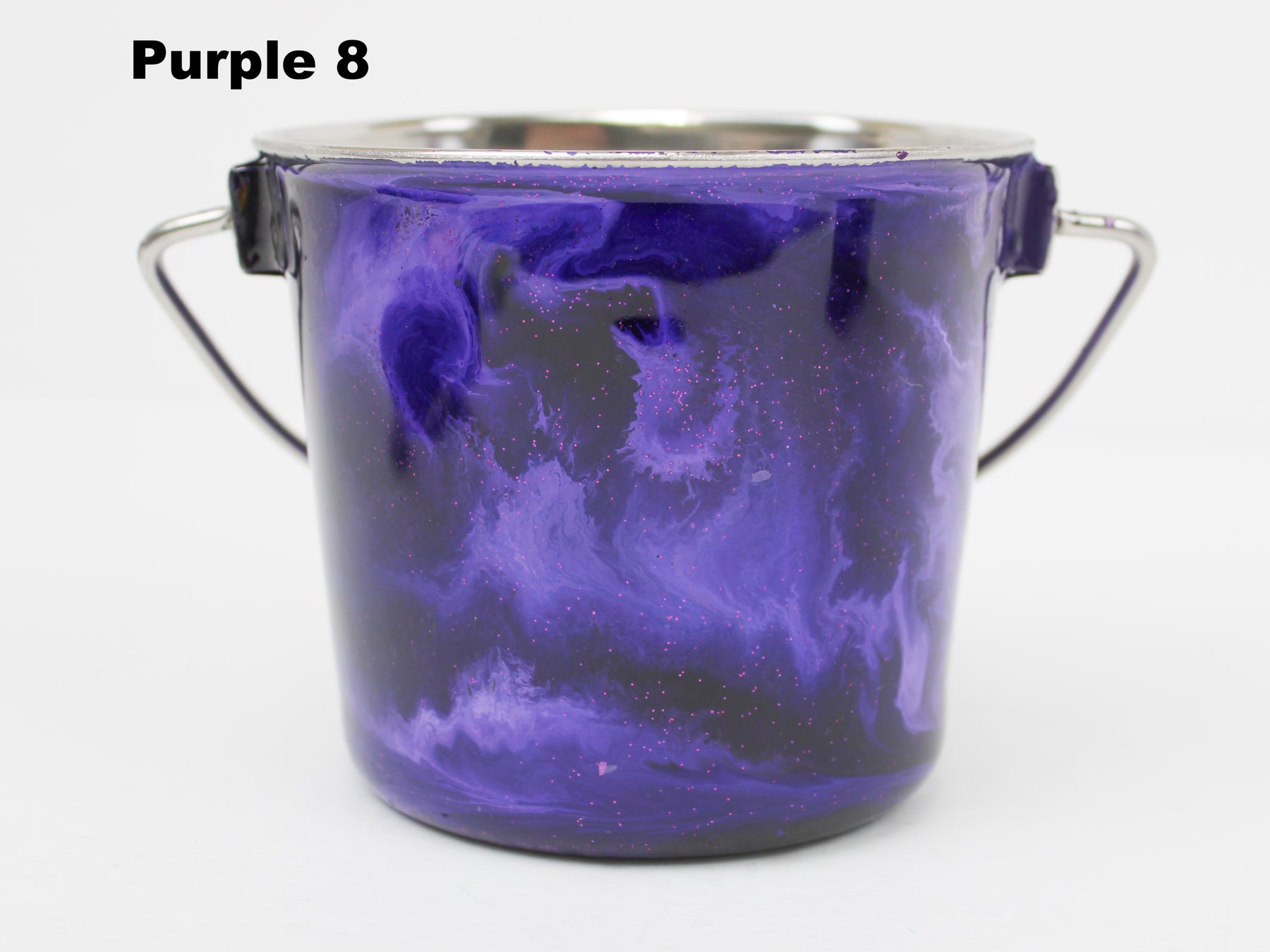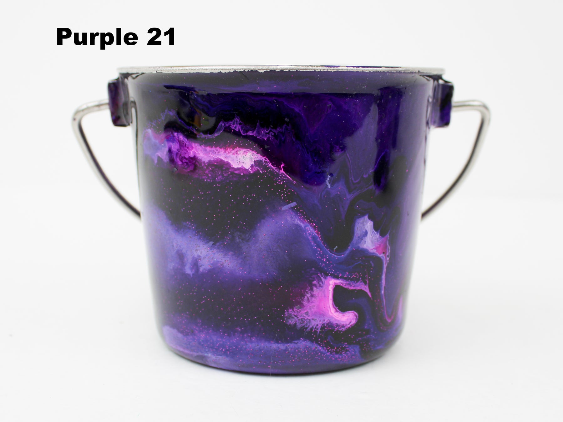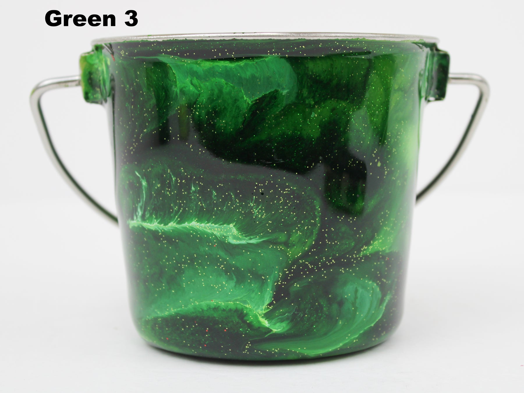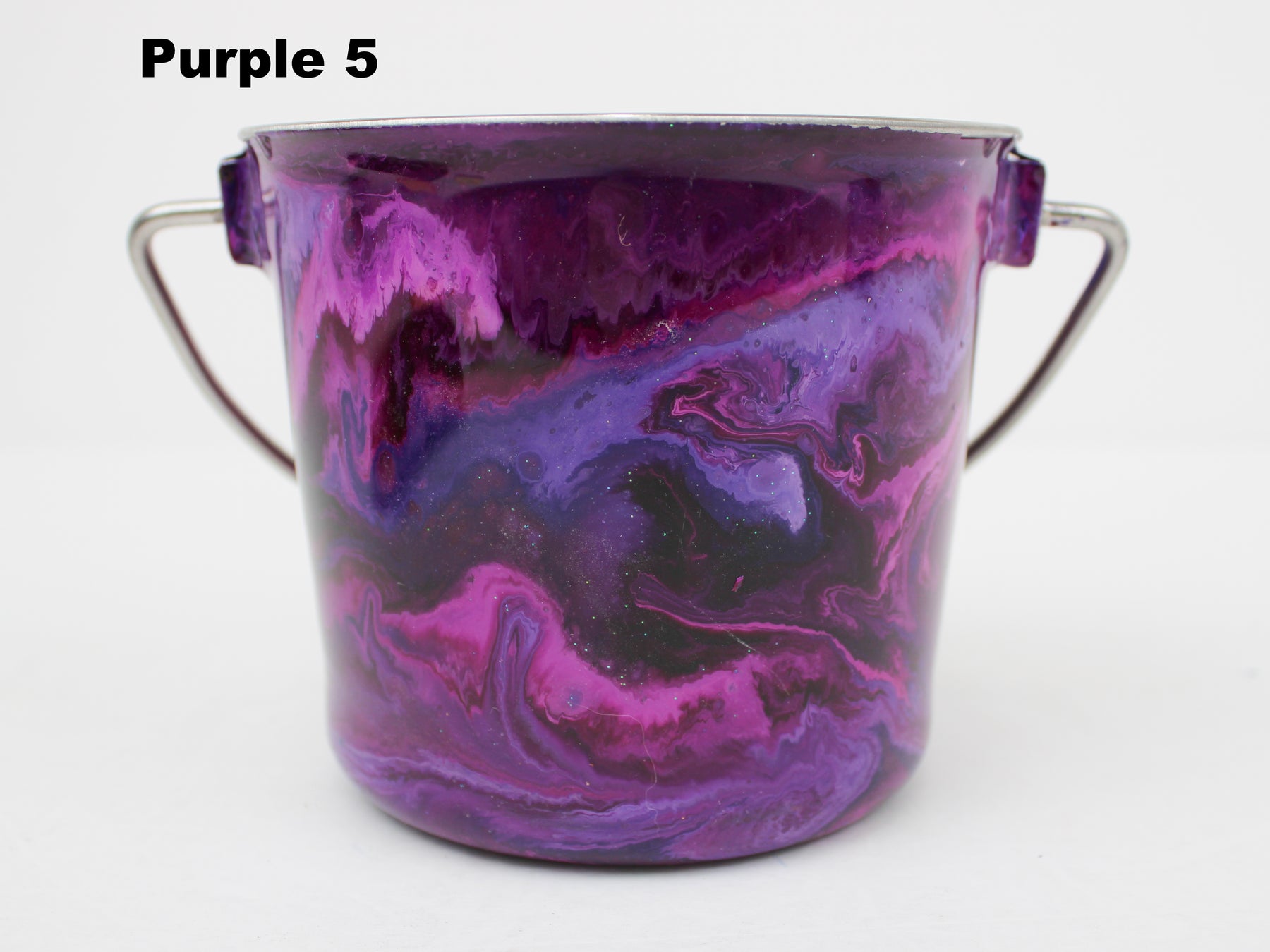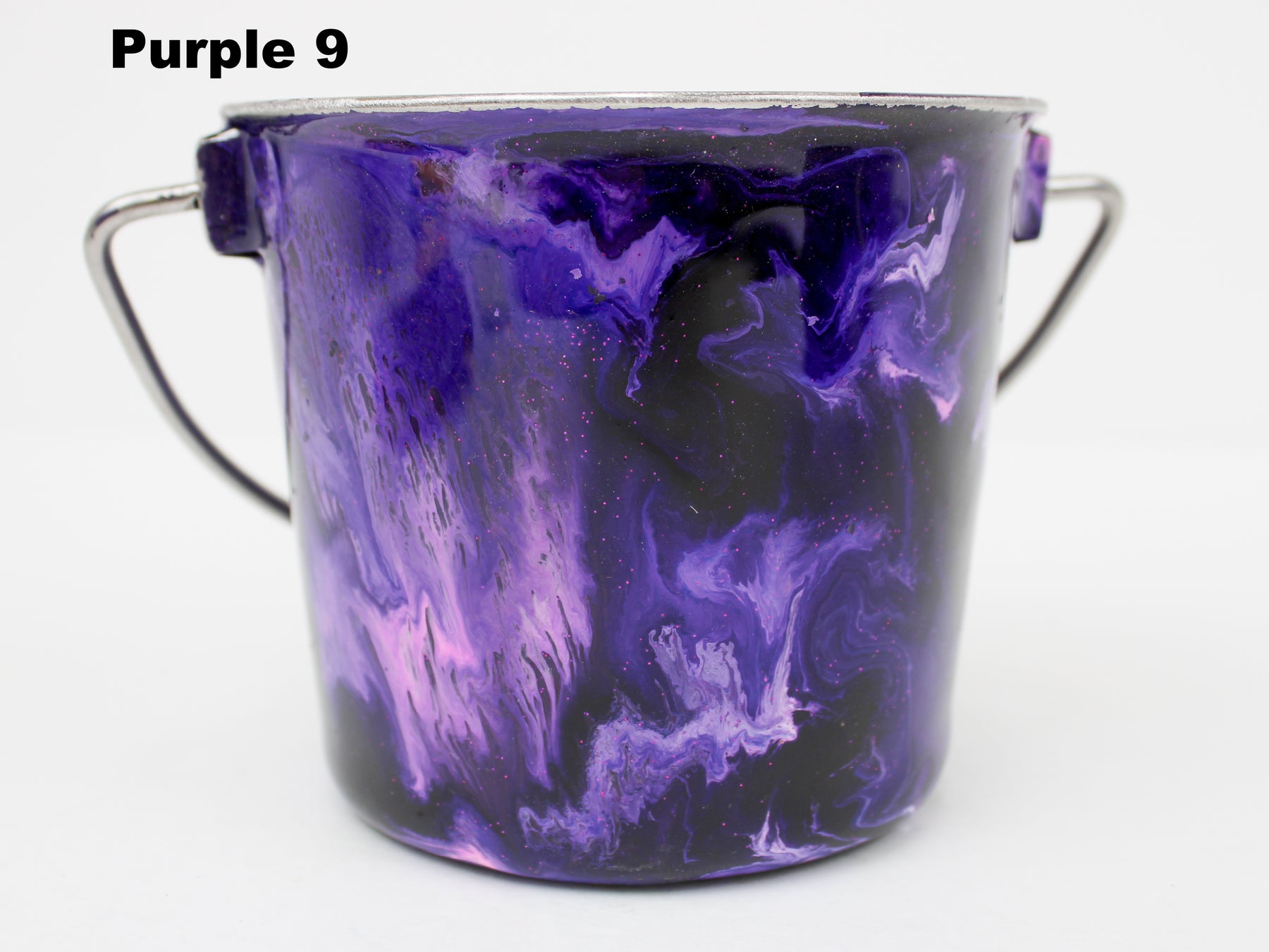 In stock Designer Water Buckets are handmade and each is truly a one of a kind design, crafted with a durable epoxy finish that’s built to last. Created in Wisconsin by a retired veterinary technician, every item reflects skill, attention to detail, and a commitment to quality. To preserve its shine and longevity, each piece should be hand washed only.