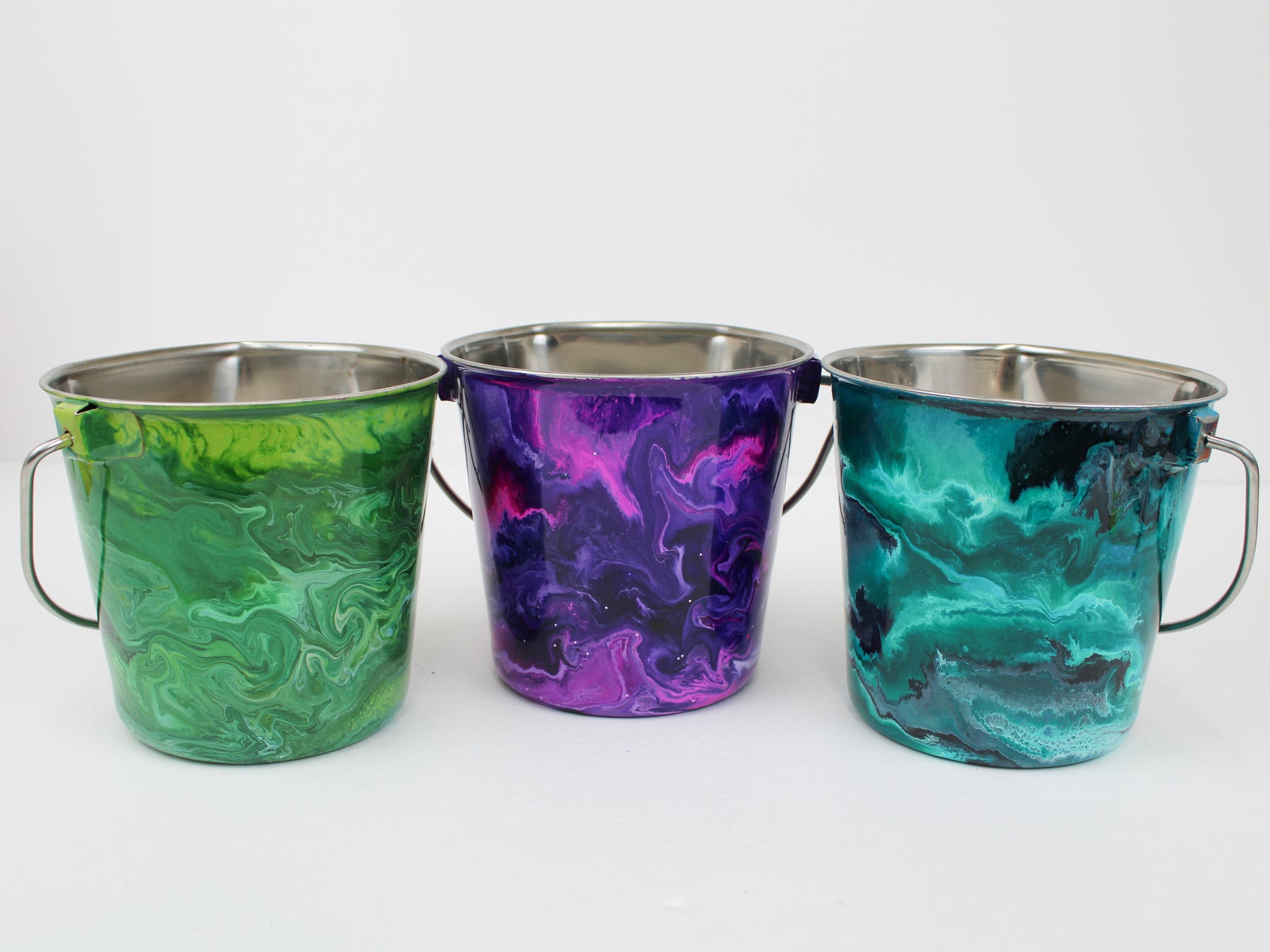 In stock Designer Water Buckets is handmade and truly one of a kind design, crafted with a durable epoxy finish that’s built to last. Created in Wisconsin by a retired veterinary technician, every item reflects skill, attention to detail, and a commitment to quality. To preserve its shine and longevity, each piece should be hand washed only.