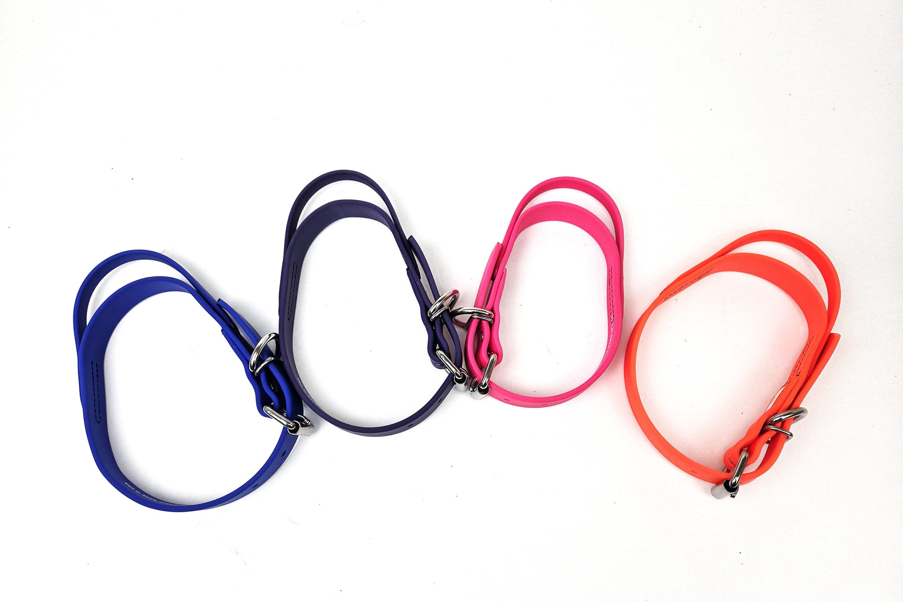 Our BioThane Buckle Collars are waterproof, odor proof, durable and will protect your dog's coat. These collars are handmade in our shop with material made in the USA. BioThane buckle collars are easy to clean and dry quickly