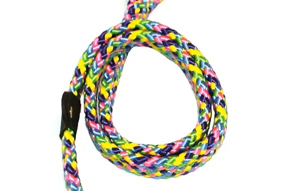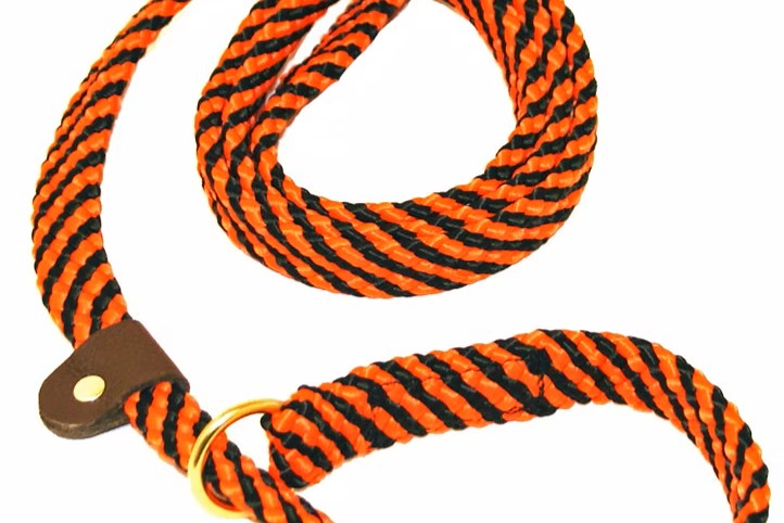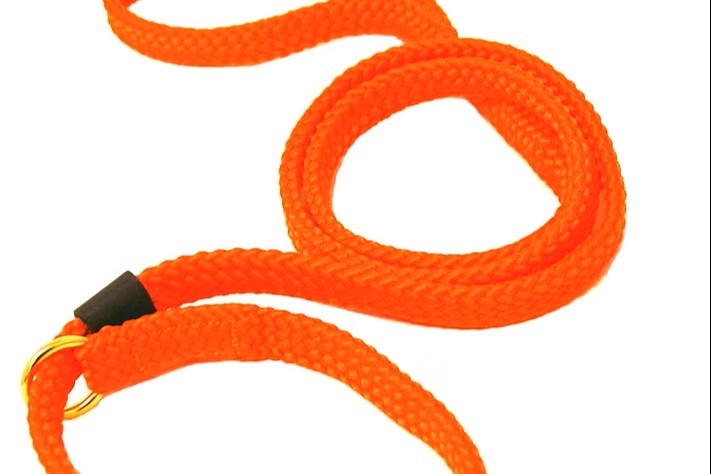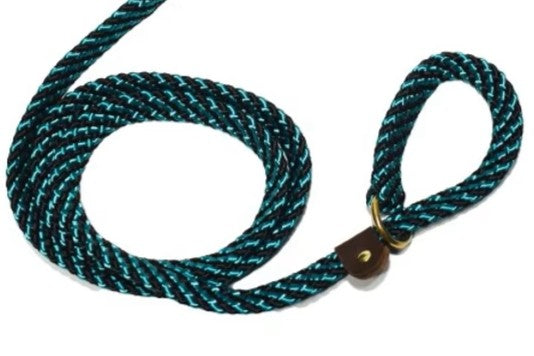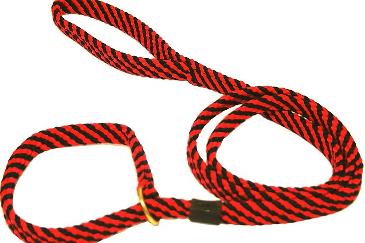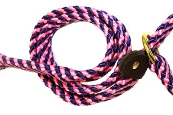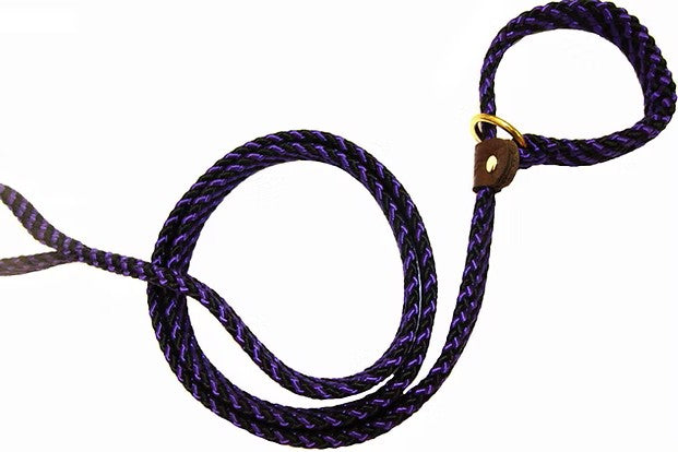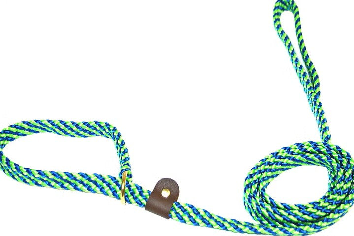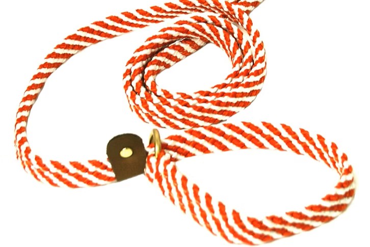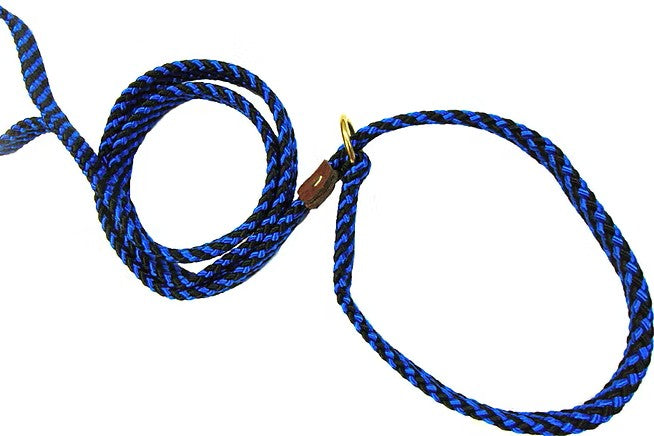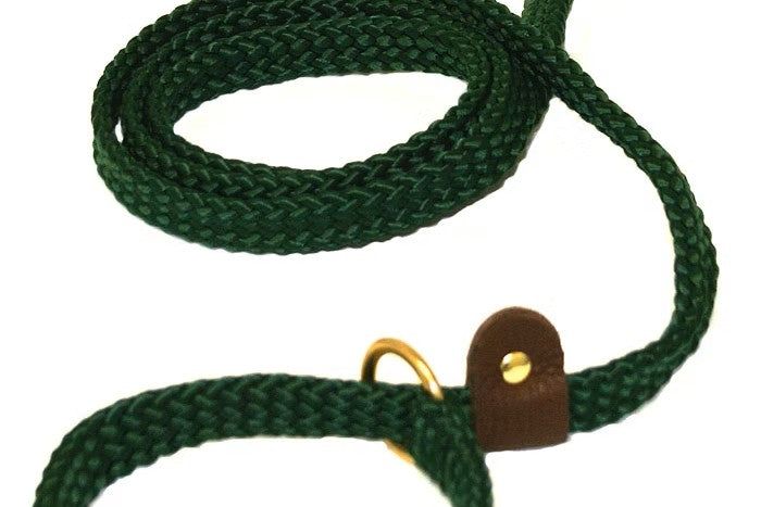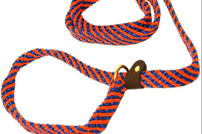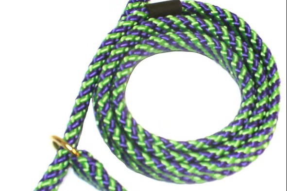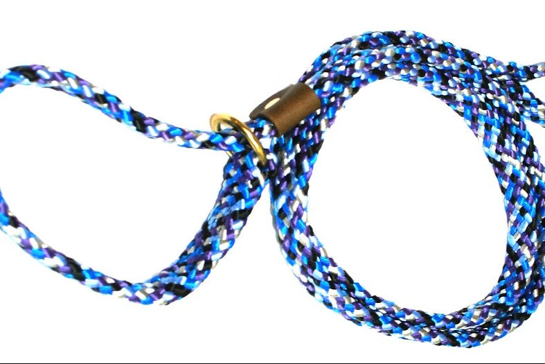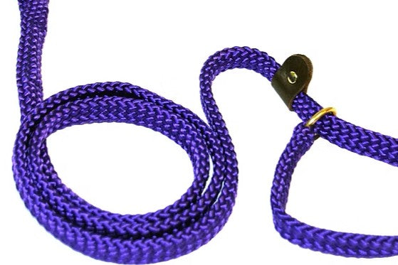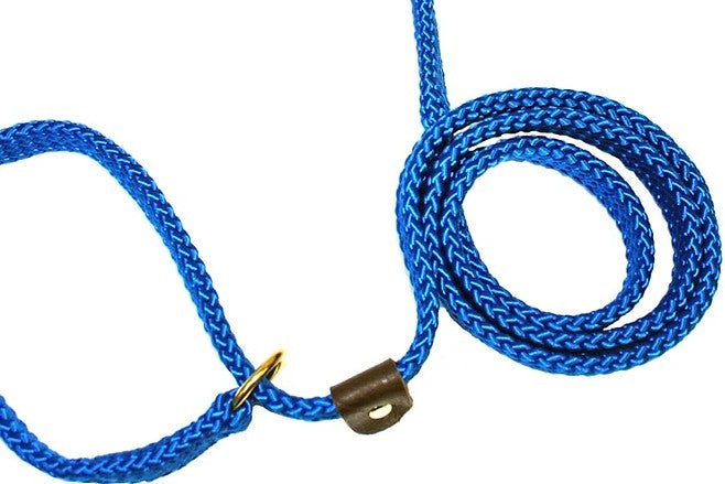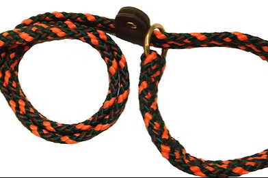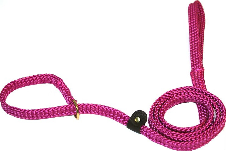 Lone Wolf 5/8" flat braided nylon leashes are available in many color combinations.  They have rolled edges to be easier on the dog's coat and more comfortable in your hands.  They offer gentle correction in a slip leash style